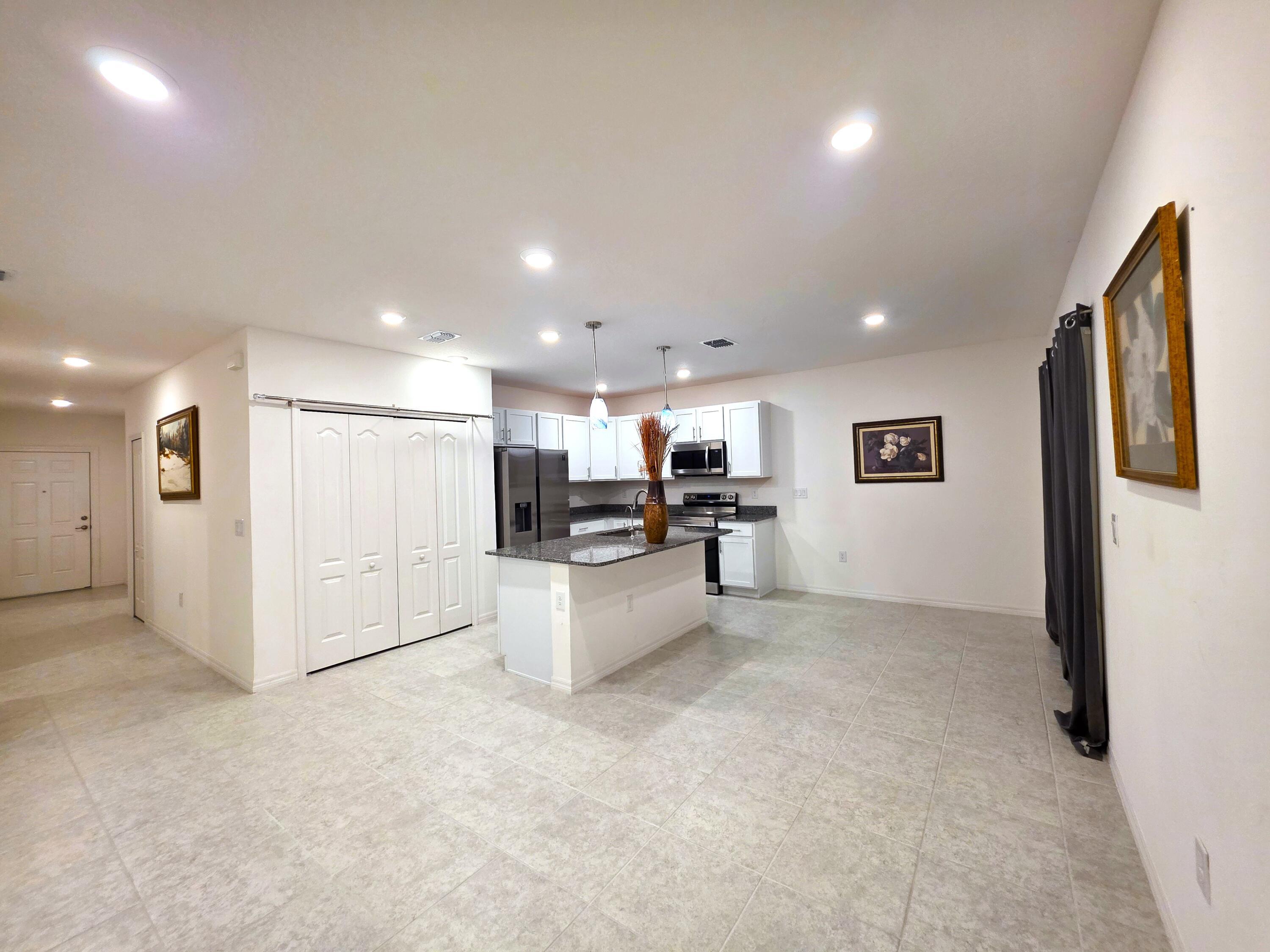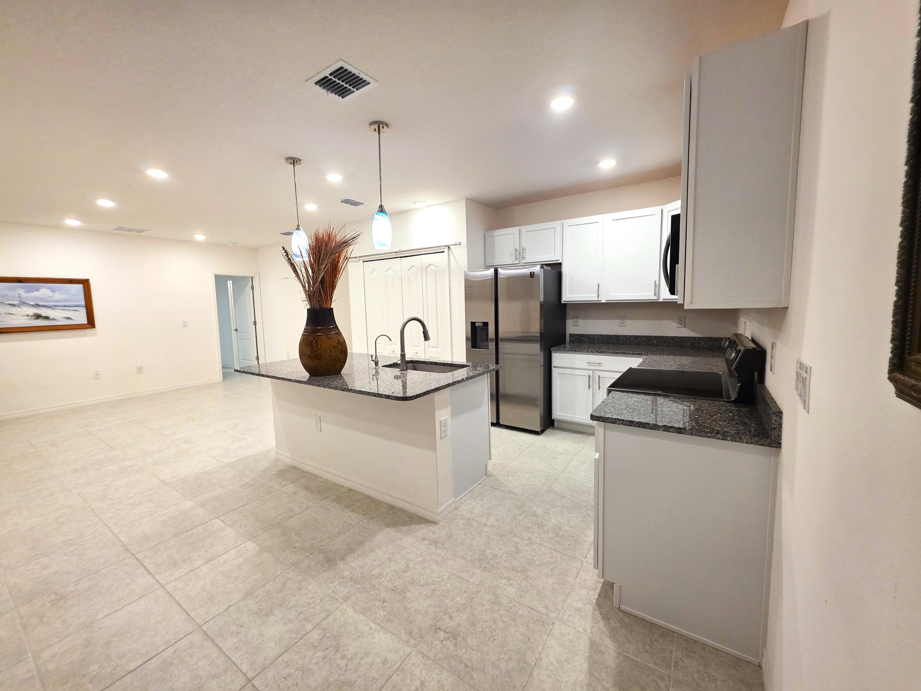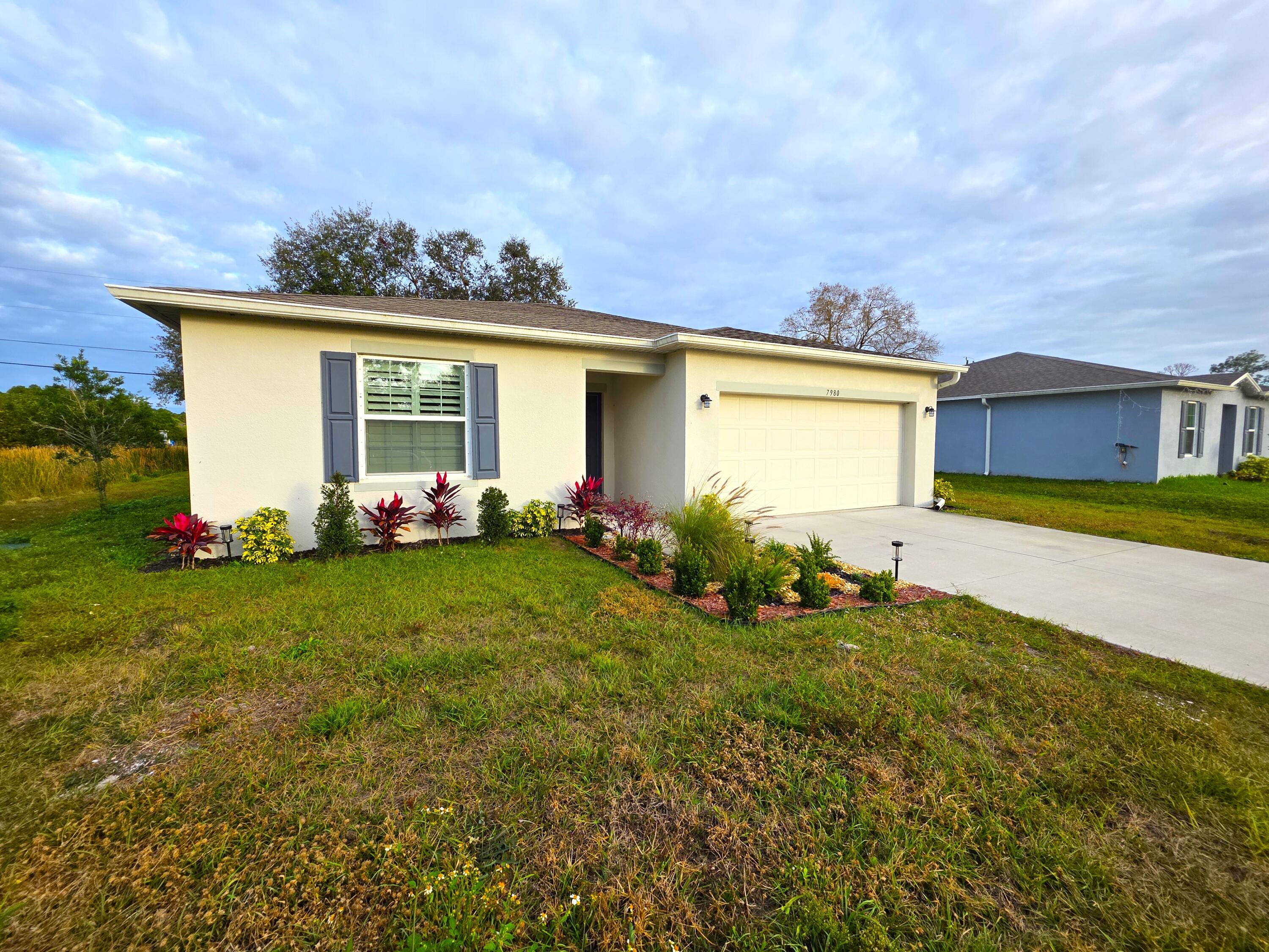 Annual unfurnished rental. Available NOW. Bright and Open single-family home with nice back yard in Vero Lake Estate. This home is comfortable and spacious, split and open floor plan. Living room, dining room and kitchen is a one huge room. Large kitchen island with large sink and breakfast bar. Lots of cabinet space in the kitchen, stainless appliances, granite countertop, large pantry. 1,425 Square feet, 3 bedrooms, 2 baths, 2 car garage and driveway for parking. Tile floors throughout, plantation shutters in all rooms. Large master bedroom with big walk in closet, master bath with two separate sinks and nice shower. Open patio, relax and grill on back yard, enjoy the Florida weather Monthly landscaping and pest control services are landlords' responsibility. Pets considered per owner'spermission only. Just short ride on unpaved road, about 5 homes from paved 79th Street. Great location within minutes to shopping, restaurants, medical, schools and beaches. NO HOA.