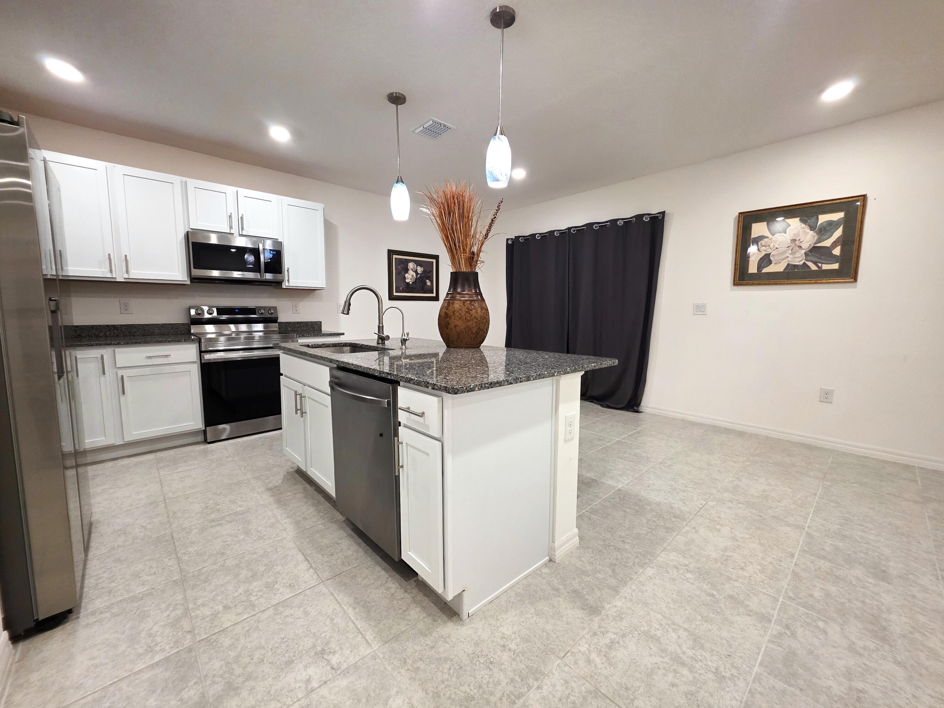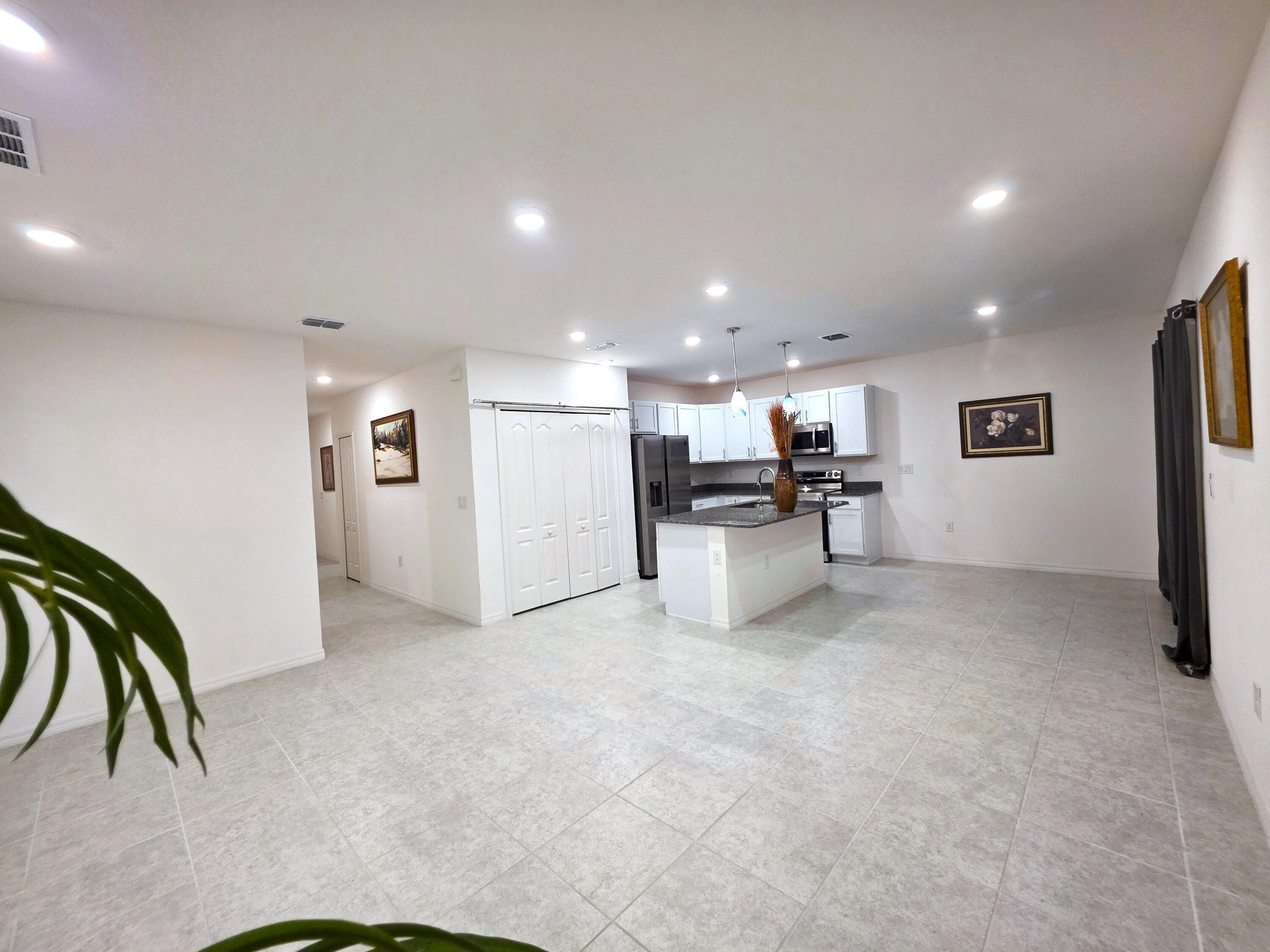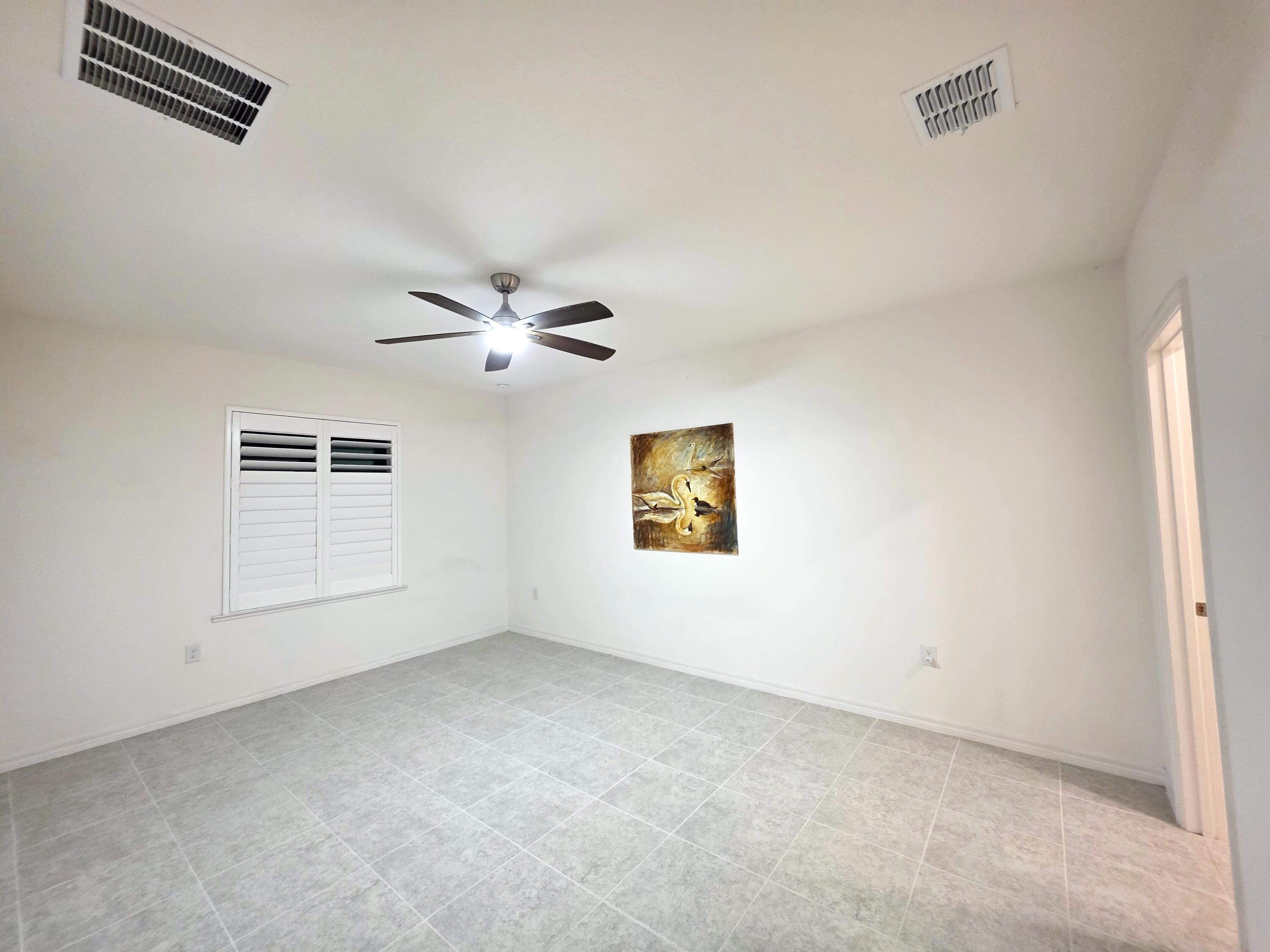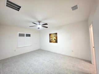 Annual unfurnished rental. Available NOW. Bright and Open single-family home with nice back yard in Vero Lake Estate. This home is comfortable and spacious, split and open floor plan. Living room, dining room and kitchen is a one huge room. Large kitchen island with large sink and breakfast bar. Lots of cabinet space in the kitchen, stainless appliances, granite countertop, large pantry. 1,425 Square feet, 3 bedrooms, 2 baths, 2 car garage and driveway for parking. Tile floors throughout, plantation shutters in all rooms. Large master bedroom with big walk in closet, master bath with two separate sinks and nice shower. Open patio, relax and grill on back yard, enjoy the Florida weather Monthly landscaping and pest control services are landlords' responsibility. Pets considered per owner'spermission only. Just short ride on unpaved road, about 5 homes from paved 79th Street. Great location within minutes to shopping, restaurants, medical, schools and beaches. NO HOA.