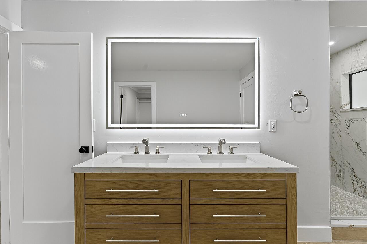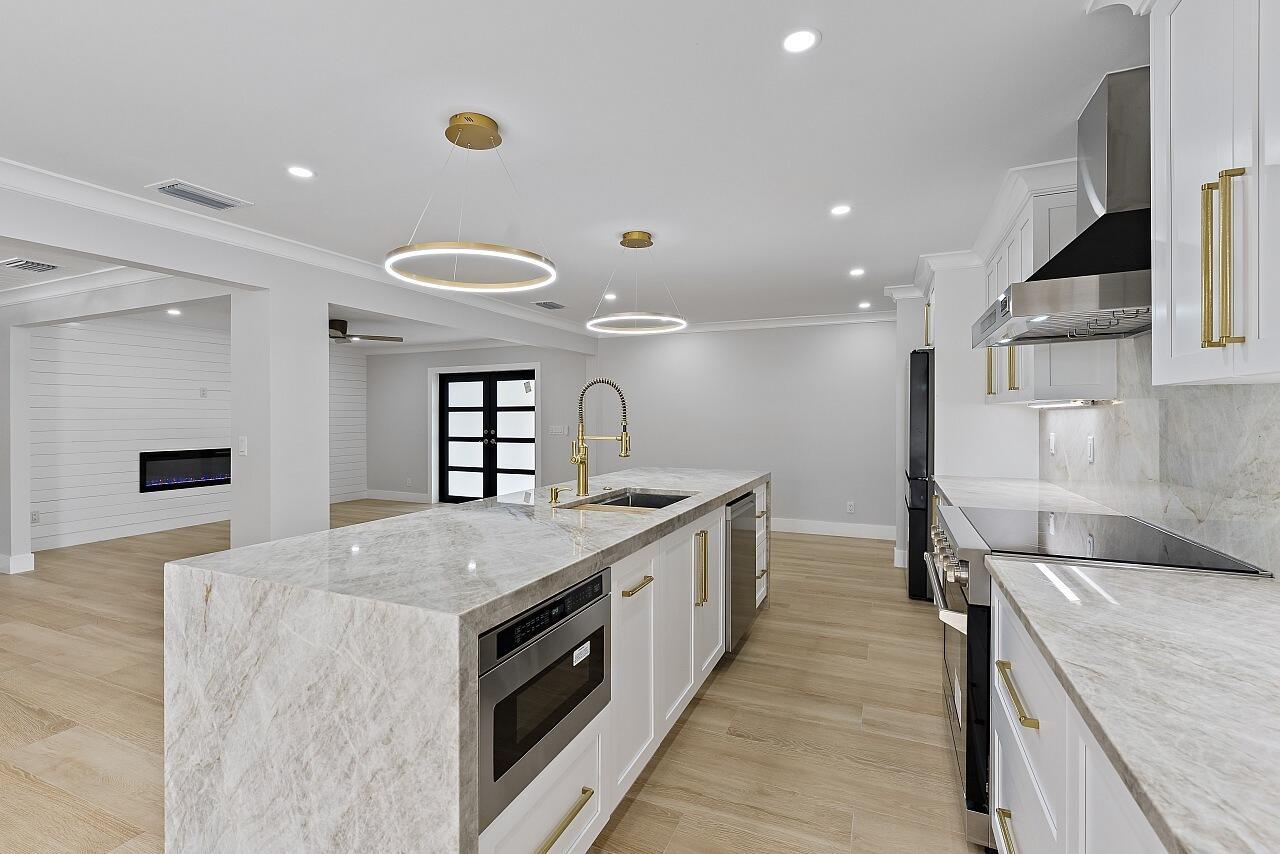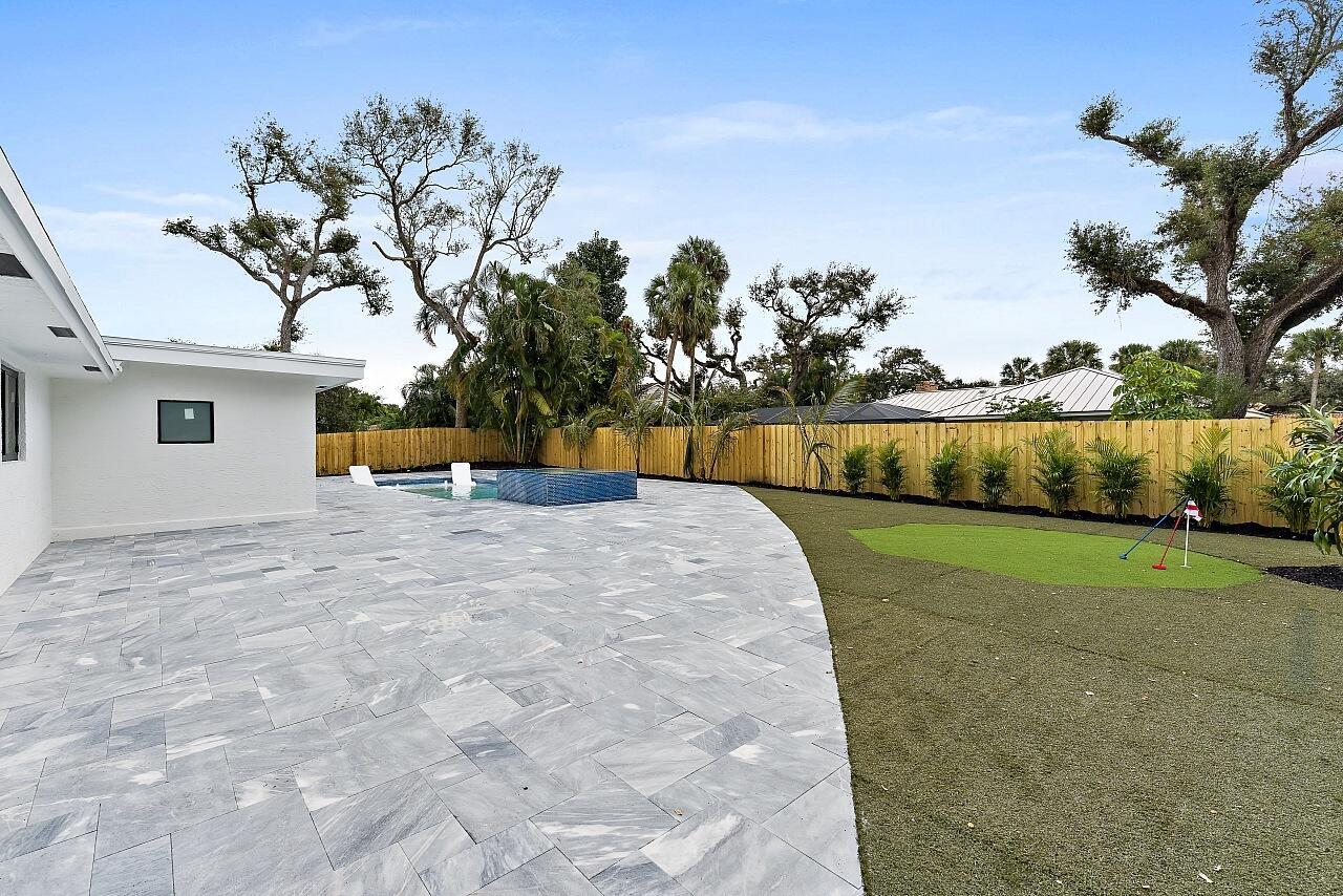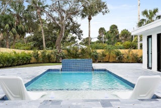WALK TO THE BEACH! No expense spared in reinventing this exquisite true 3-bedroom home w/den. Major improvements completed in 2026 include new roof, impact glass doors/sliders, full electrical rewire w/new panel, new plumbing and sewer lines, spray foam insulation, new ductwork, and new A/C unit and handler. The stunning brand-new pool with raised spa features a sundeck, pool heater, and saltwater system, creating a private resort-style oasis.The chef's kitchen showcases ALL-AMERICAN custom wood cabinetry, Taj Mahal quartzite countertops, full backsplash, and a grand waterfall island. Designer finishes abound throughout, including beach oak porcelain tile flooring, crown molding, upgraded baseboards, solid wood core doors, LED recessed lighting, and statement light fixtures and fansThe baths have been tastefully redesigned with new tile, vanities, and glass-enclosed shower/tub combinations. Additional highlights include an oversized laundry room with sink and upper and lower cabinetry, and a versatile denideal as a home office or gaming roomenclosed with a stylish barn door. The outdoor space impresses with a new fence, fresh landscaping, nearly 3,000 square feet of French-pattern marble decking, a putting green, and an outdoor shower. Modern conveniences include EV charging, epoxy garage floor, impact garage door, Ring doorbell, smart appliances, and a custom living room wall with electric fireplace. The primary suite is a true retreat, featuring a massive 8x14 custom closet and a spa-inspired 6x6 shower with bench, niche, six jets, double-door entry, rain head, standard head, and handheld feature. Natural light pours in from the moment you step off the brand-new driveway through the custom front door into the open, entertainer-friendly main living area.