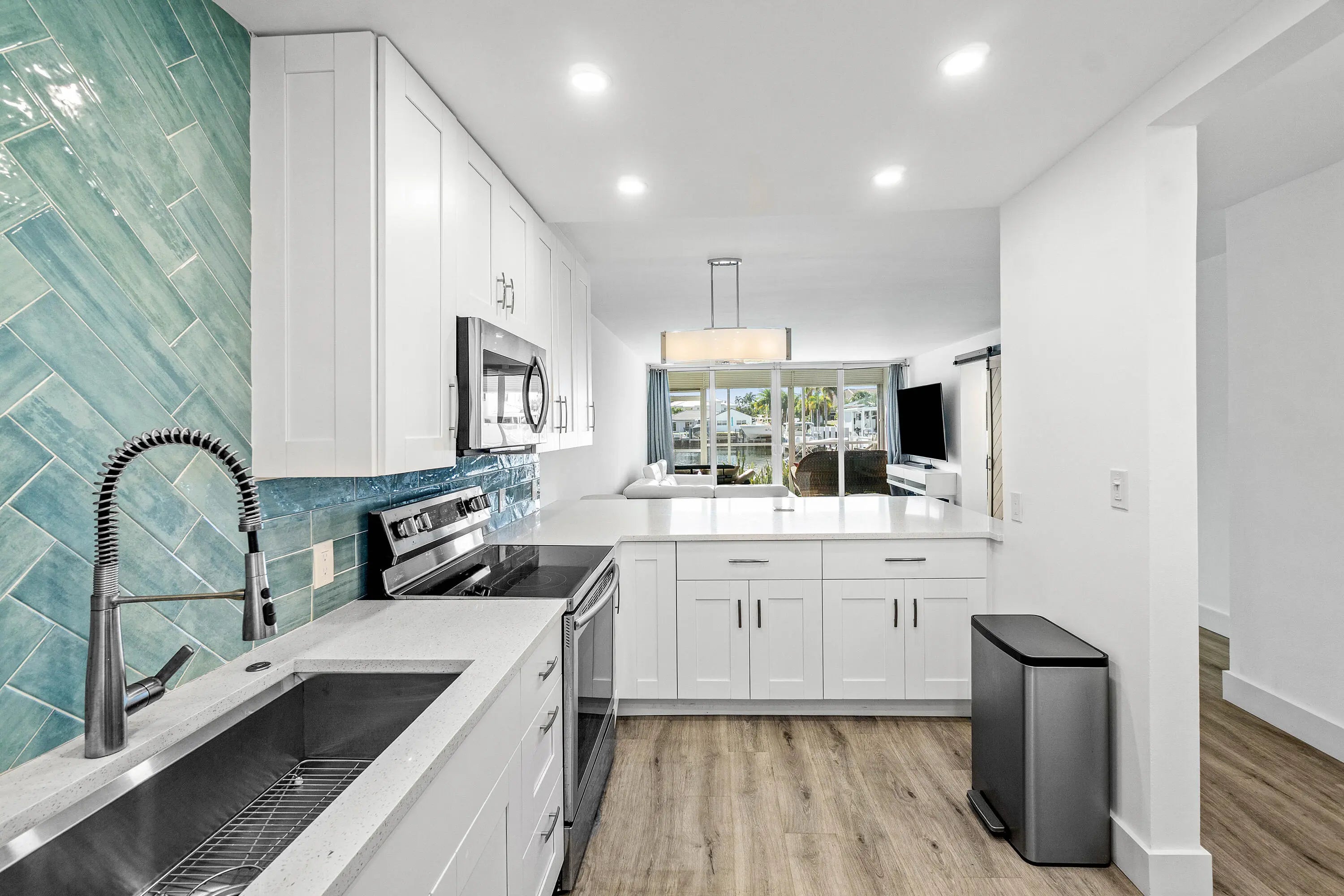 Your search ends here! This turnkey 1bed/1bath ground level waterfront condo is less than a half a mile from beautiful beaches of Boca Raton and has been completely renovated in 2021. Since being renovated, the unit has never been lived in and is ready for its proud new owner! Upgrades include vinyl flooring throughout, hurricane impact windows and sliders, completely redone bath, and new water heater & electrical panel. The kitchen has been beautifully remodeled with ample storage space, featuring quartz countertops, decorative tiled backsplash, soft close drawers and brand new stainless steel appliances!..Enjoy peaceful water views from your screened-in patio or open the sliders to create one large indoor/outdoor space...