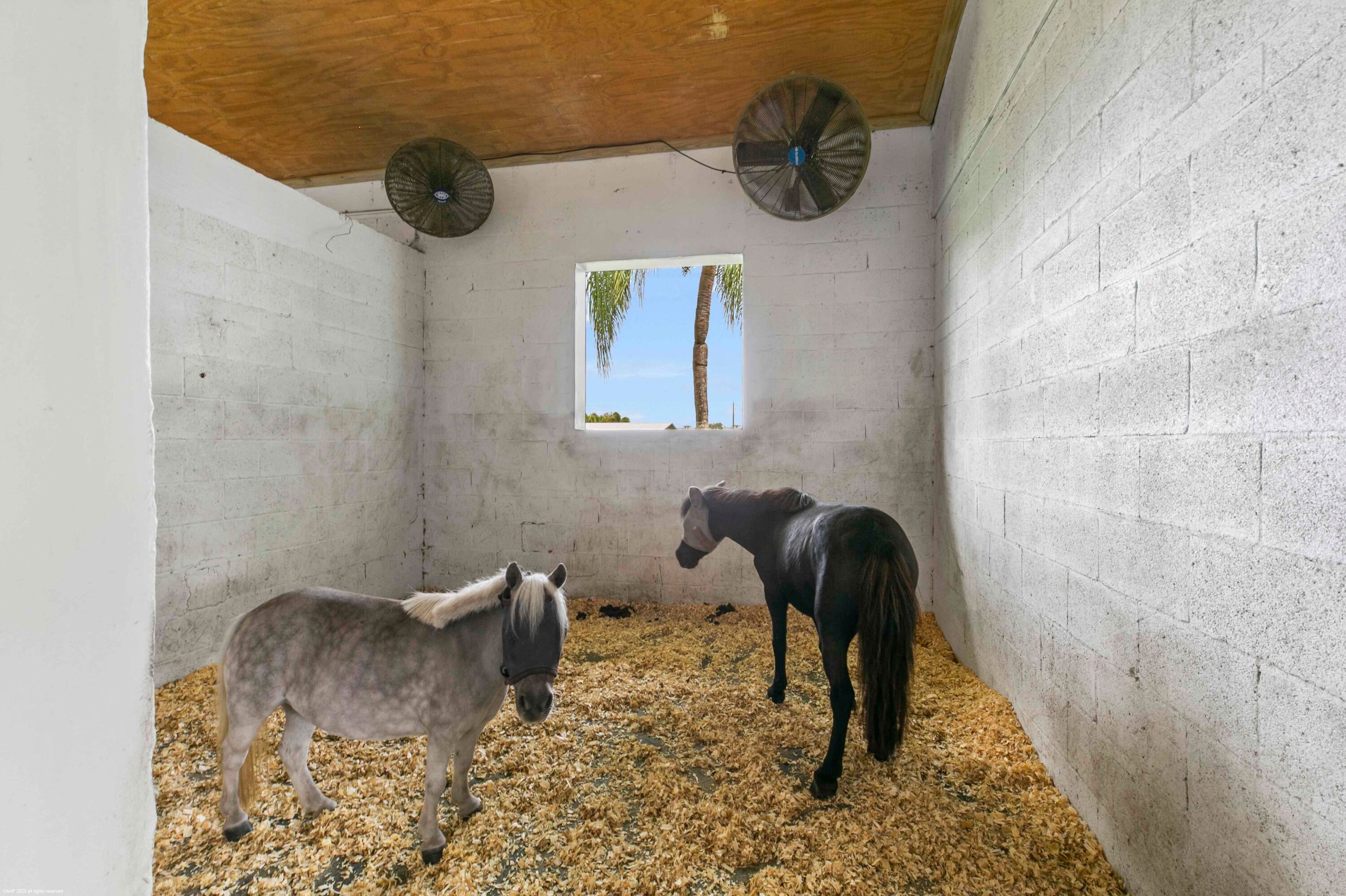 APPROVED SHORT SALE- Best opportunity in Wellington!! Live inside the Palm Beach Point gates, but without the same rules and regulations and to a much more affordable price! This ultra private, well-equipped farm just under 5 acres, is located at the end of the street in Sunglade, Wellington and has so much to offer. The property features 2 barns, one 9-stall center-aisle barn with rubber pavers, a 1 bed/1 bath apartment, A/C'd tack & feed rooms, fly spray system, a full barn bathroom and 4 covered wash stalls. The second barn has 6 stalls and 2 covered wash racks. There is water and fans to each of the stalls and they are all matted.The farm is set up with 2 RV hookups, 10 grassy paddocks and arena (approx 115x200) with a newly built viewing gazebo where you can relax and watch your horses go. Plans and permits are currently in place to extend the arena and add a round pen. The 2,000 sq ft main house has 3 bedrooms and 2 bathrooms and is newly painted/ refreshed inside, has a newer AC (2021) and Reverse Osmosis water system for clean, drinkable sink water. The lovely covered patio has tranquil views of the water and surrounding equestrian paradise. There is plenty of space to add a pool if desired.