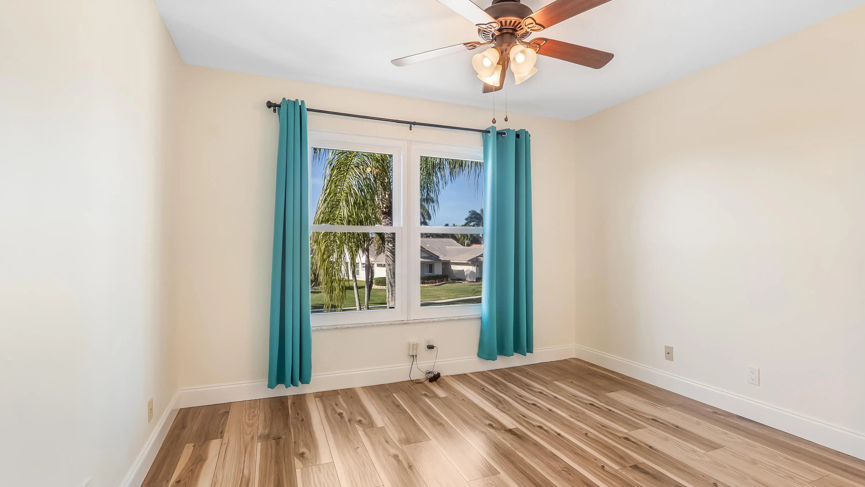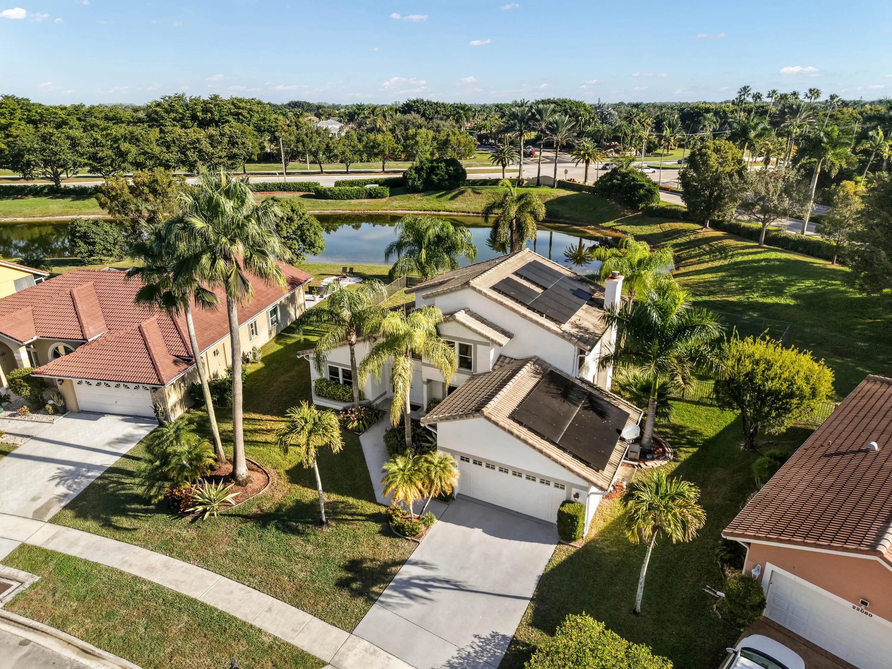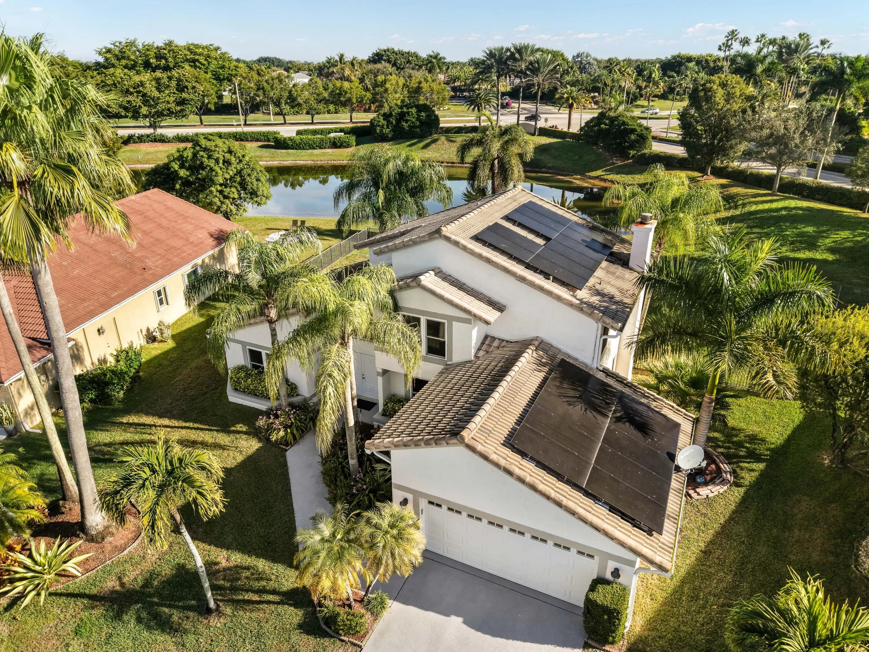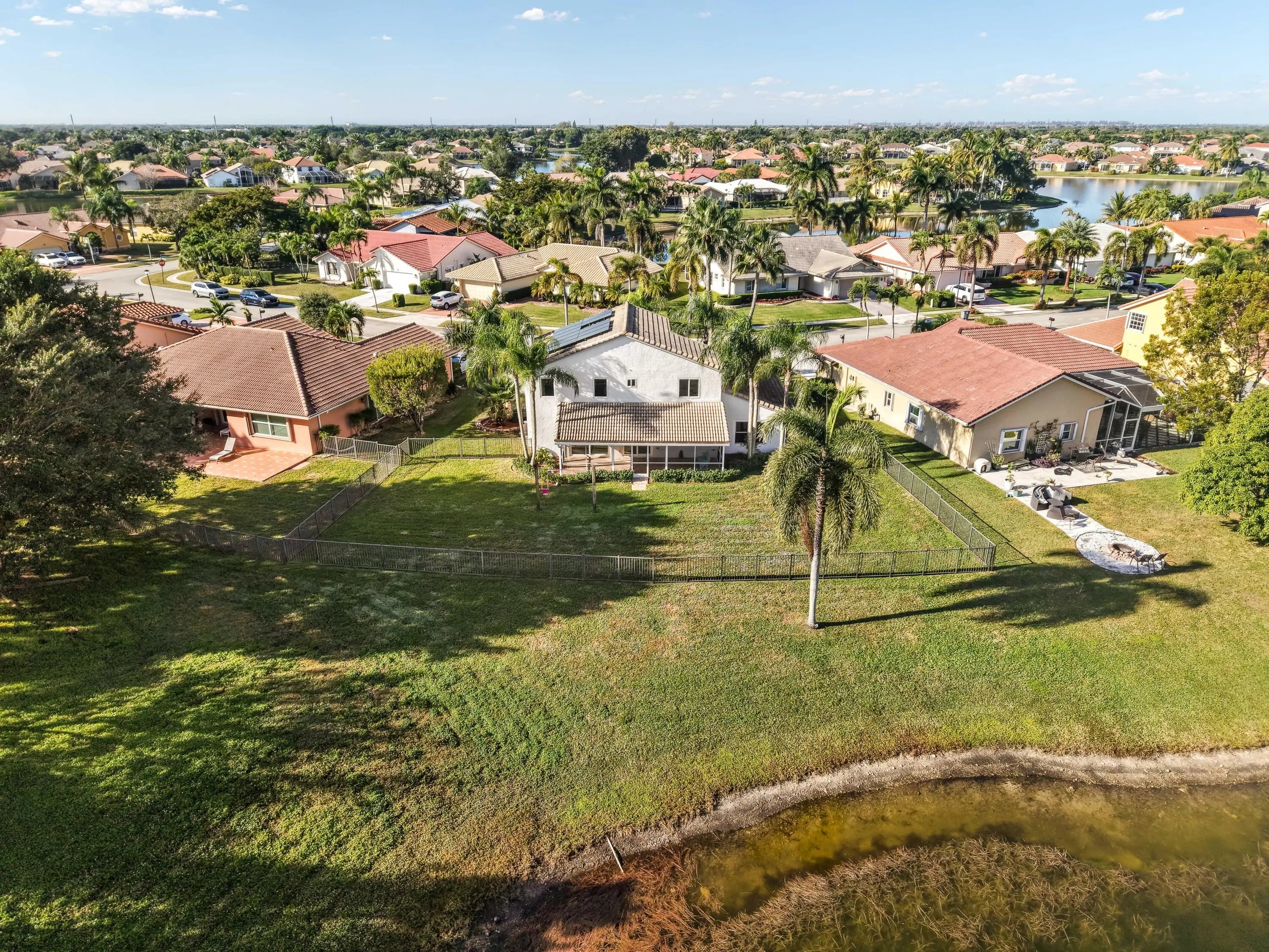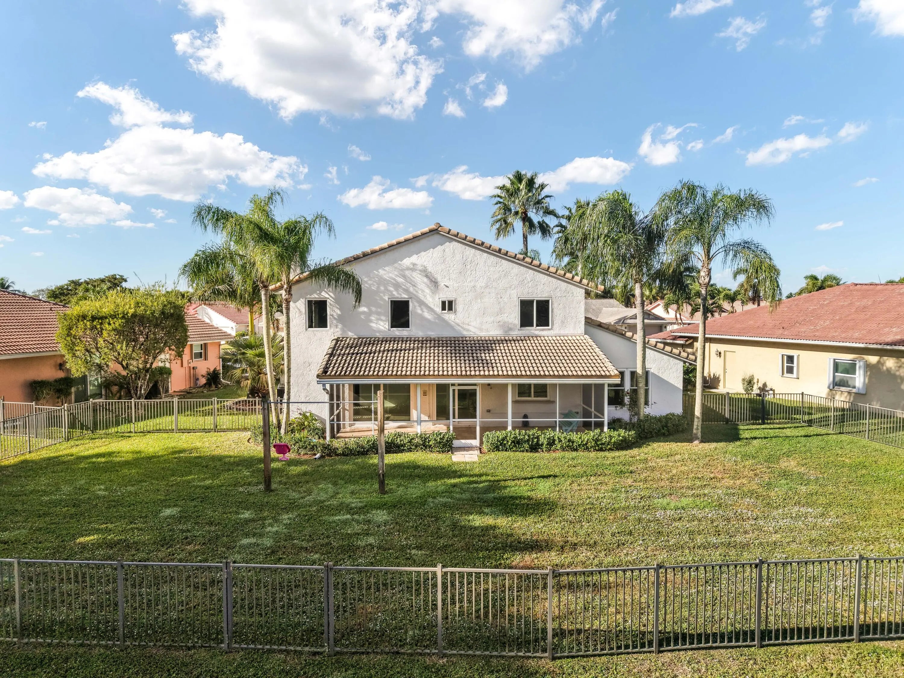 Excellent opportunity in sought-after Boca Winds! This spacious 4-bedroom, 3-bath home sits on a large lot with a fully fenced backyard offering plenty of room for a pool. Enjoy tranquil lake views from the covered, screened patio. The flexible floor plan features one bedroom and full bath downstairs, an indoor laundry room, and three additional bedrooms with two full baths upstairs. Highlights include hurricane impact windows, solar panels that significantly reduce monthly electric bills, two A/C units (2017), and a working fireplace. Located in an excellent A-rated school district. Boca Winds offers resort-style amenities including a pool, clubhouse, tennis, pickleball, and jogging trails. A wonderful opportunity to customize and make this home your own.