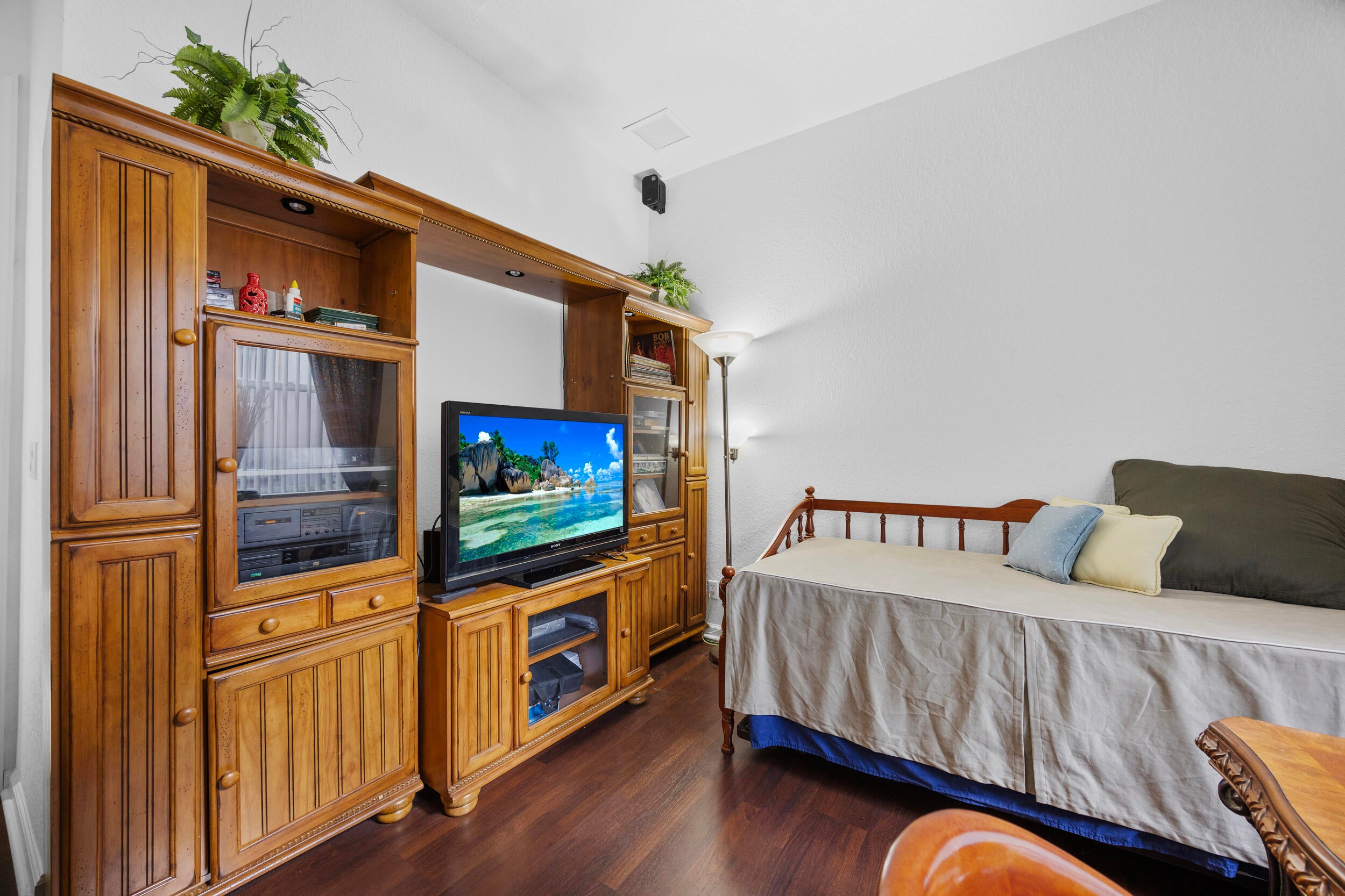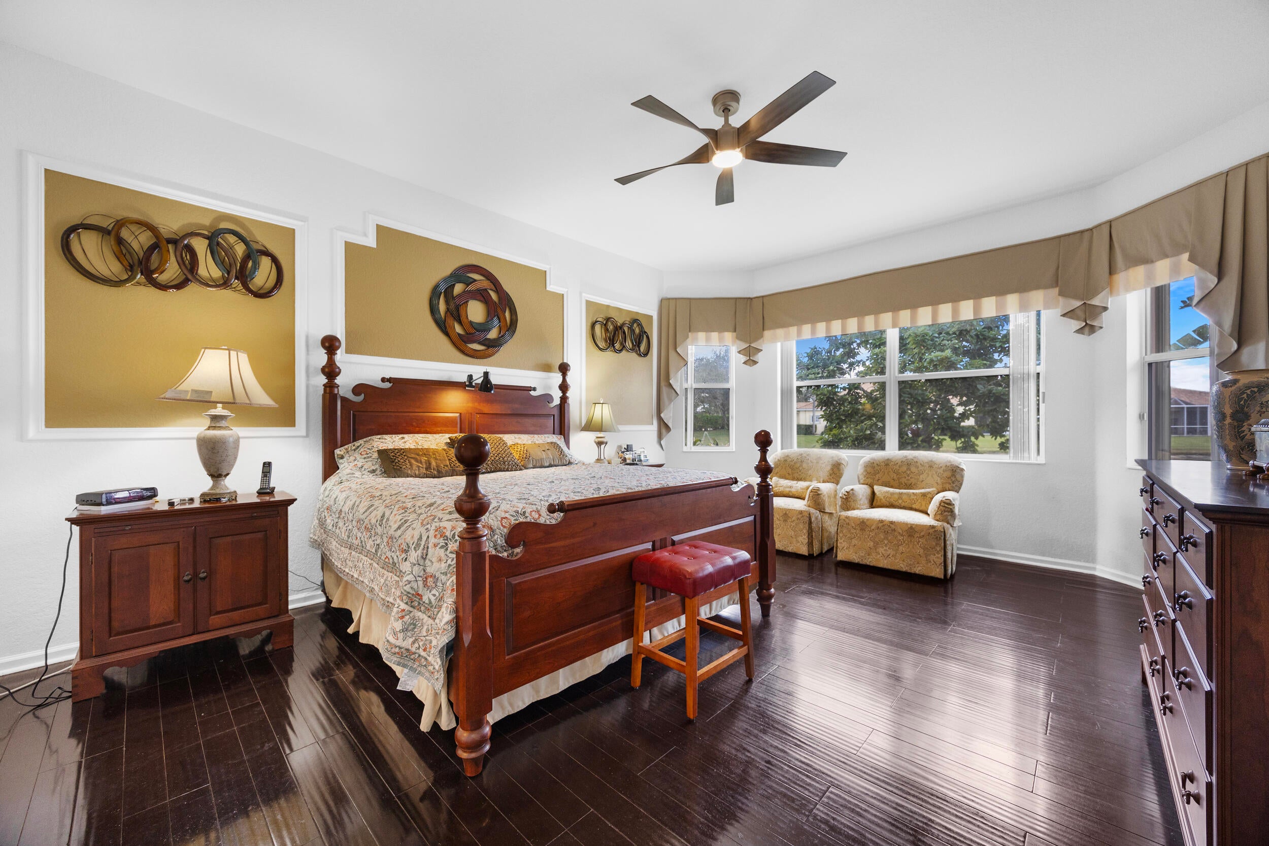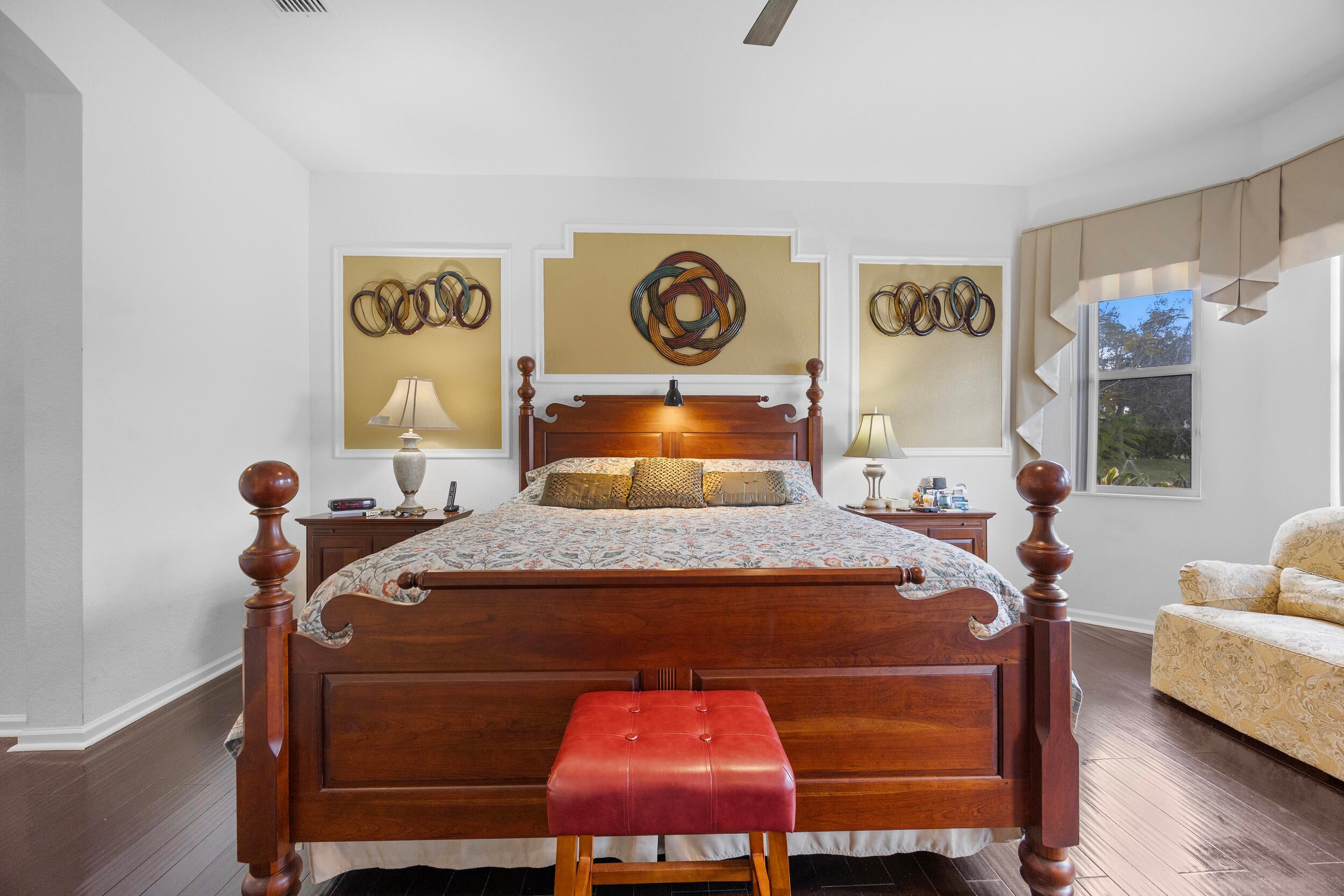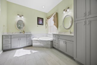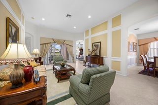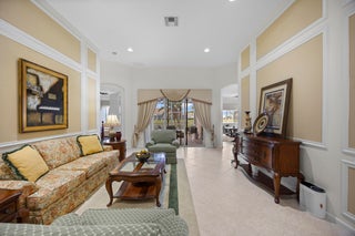 You'll love coming home to this vibrant active adult community in the highly desirable Sailfish Cove within the gated Baywinds community. Residents enjoy a fully staffed clubhouse with a grand lobby, fitness center, card rooms, ballroom, billiards, library, movie theater, craft room, and multiple pools--including a resistance walking pool--plus countless resort-style amenities.This home features elegant crown moldings, high ceilings, and warm, inviting tones throughout. Both the Primary Suite and a guest bedroom have ensuite bathrooms. The Primary includes dual vanities, a relaxing jacuzzi tub, glass-enclosed shower, private water closet, and a floor-to-ceiling linen closet.The spacious island kitchen opens to a generous family room, perfect for entertaining. For quiet moments, enjoy