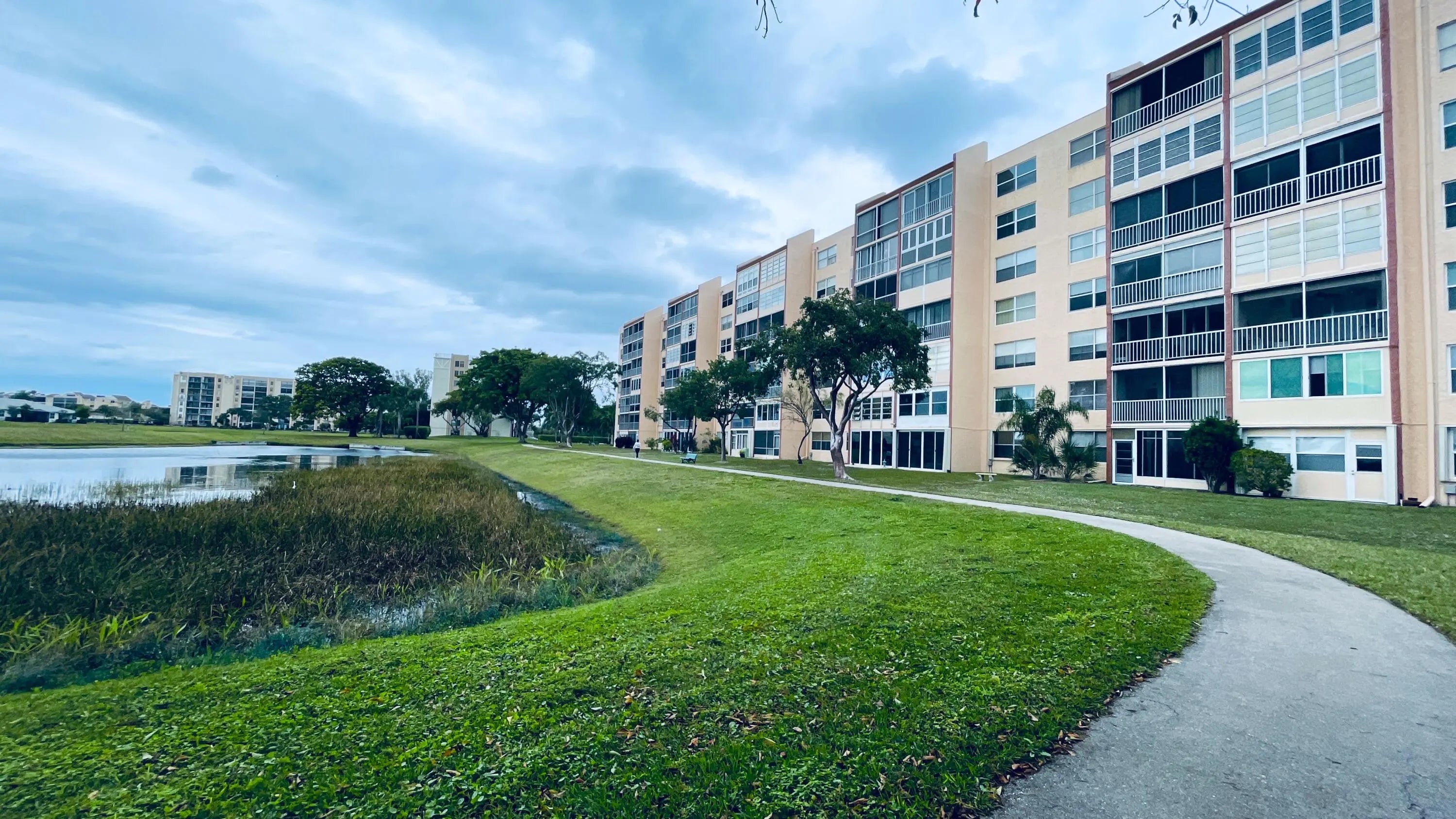 Discover the perfect 2-bedroom, 2-bathroom condo in the exclusive 55+ community of Bonaire, nestled in the charming Villages of Oriole. Perched on the top floor, you'll be treated to breathtaking panoramic views of serene lakes, setting the scene for tranquil living. The condo boasts an updated eat-in kitchen with stainless steel appliances, a washer/dryer, and 2 full bathrooms, one with a tub, the other with a shower. Cable TV, water, and internet all included in the HOA. The community clubhouse with a pool and gym is right across the street. On the city bus line.