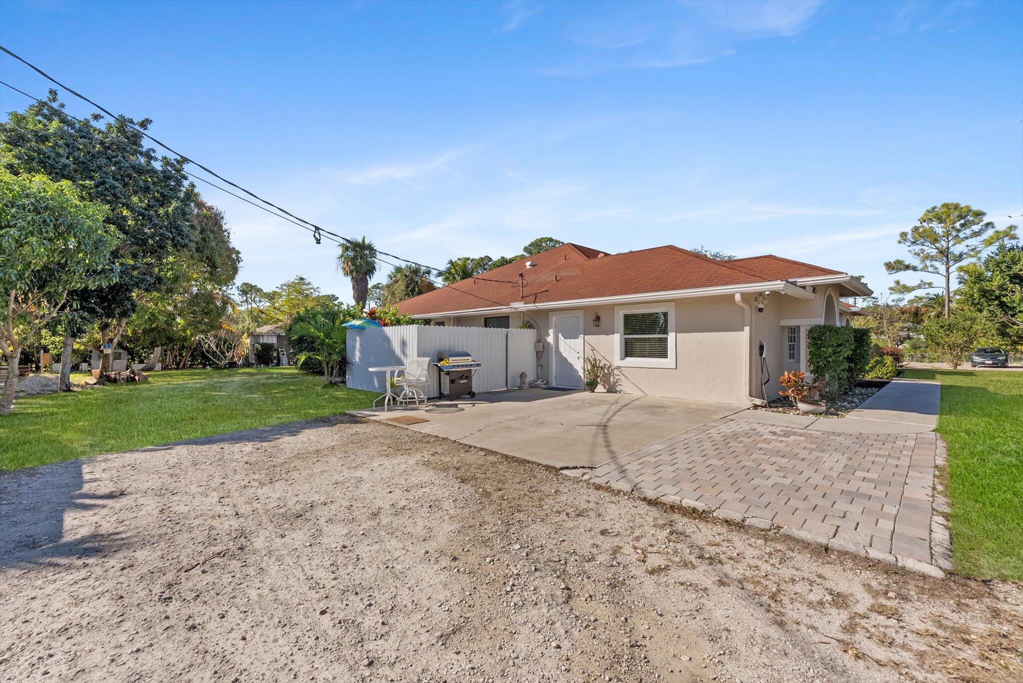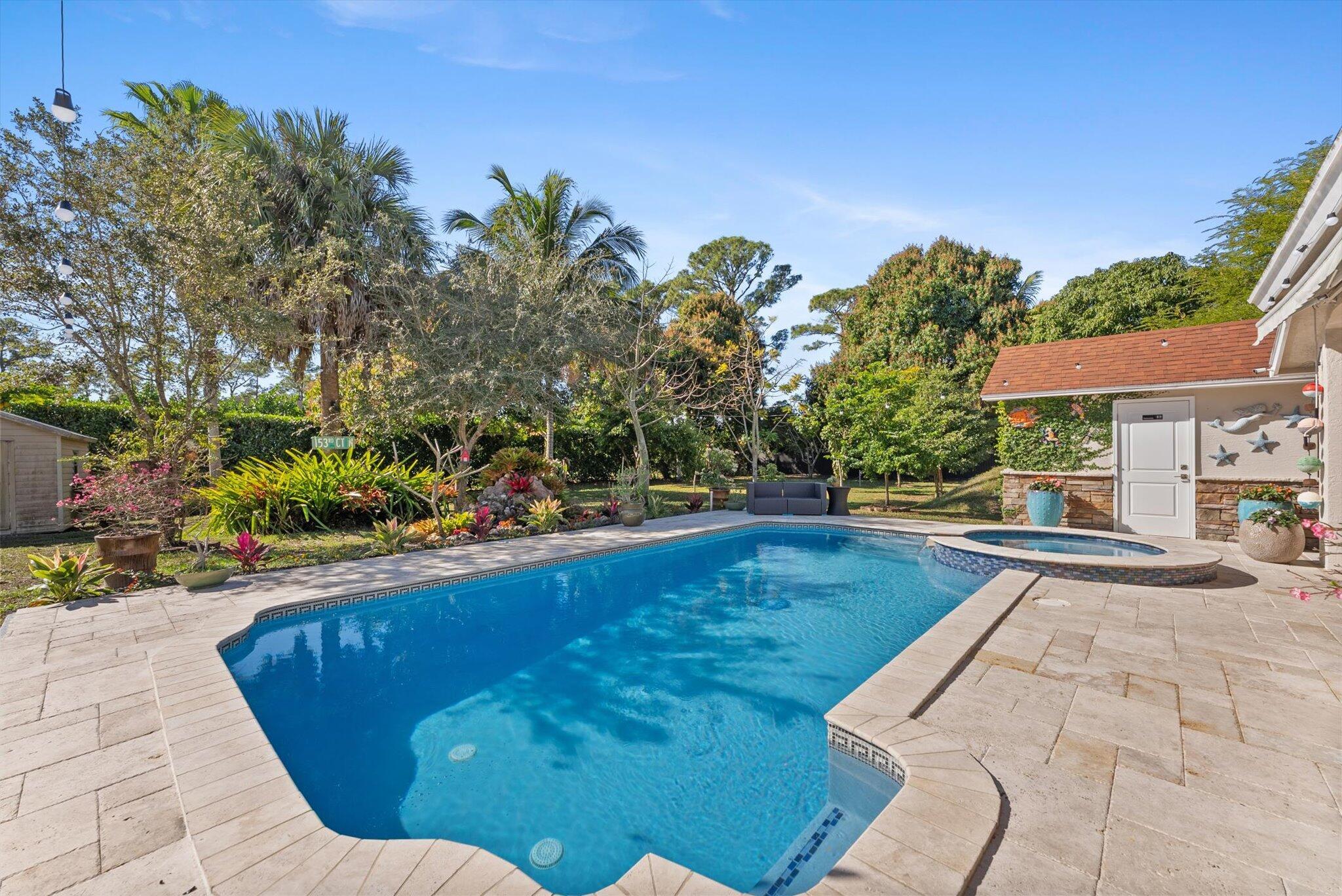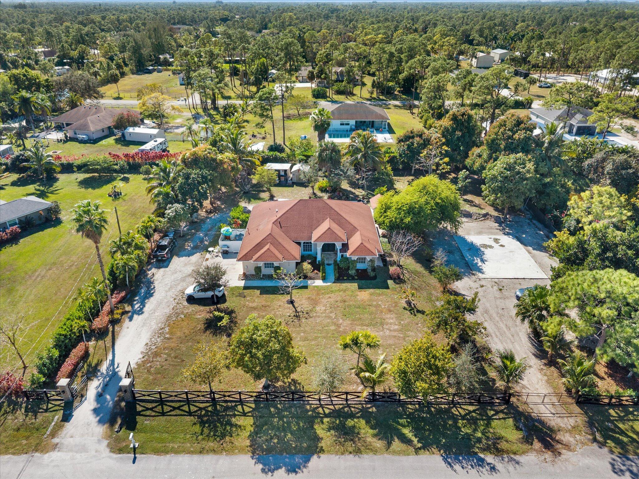 Fully renovated 3/4 home in the heart of Loxahatchee on a 1.15-acre lot. Features granite countertops, checkered wood cabinetry, updated bathrooms, and a garage-to-ADU conversion rented for $1,700/month (lease expires 7/31/2026). Property is fully fenced with motorized gate (remote controlled). Storm-ready with impact front doors, impact sliding door, impact front window, partial impact windows, and remaining windows protected by shutters. A/C 3 yrs, water softener 3 yrs, tank water heater 4 yrs, plus 2-yr tankless heater for one bath. Resort-style backyard with pool, pavers, covered patio, and fruit trees (mango, avocado, coconut, banana and more.. Paved road, A+ schools, slab with footing and plans for 30x40 garage. Truly unique opportunity, will not last, schedule your tour ASAP!