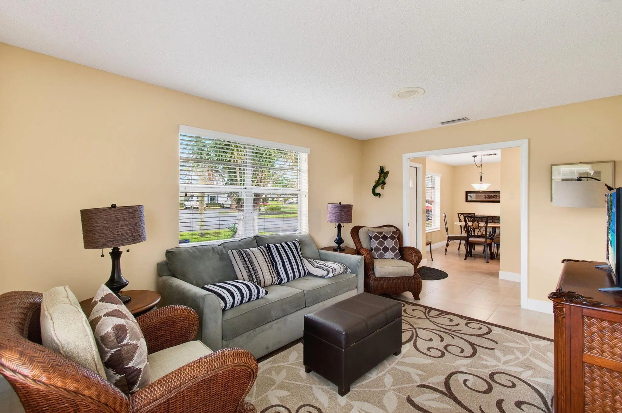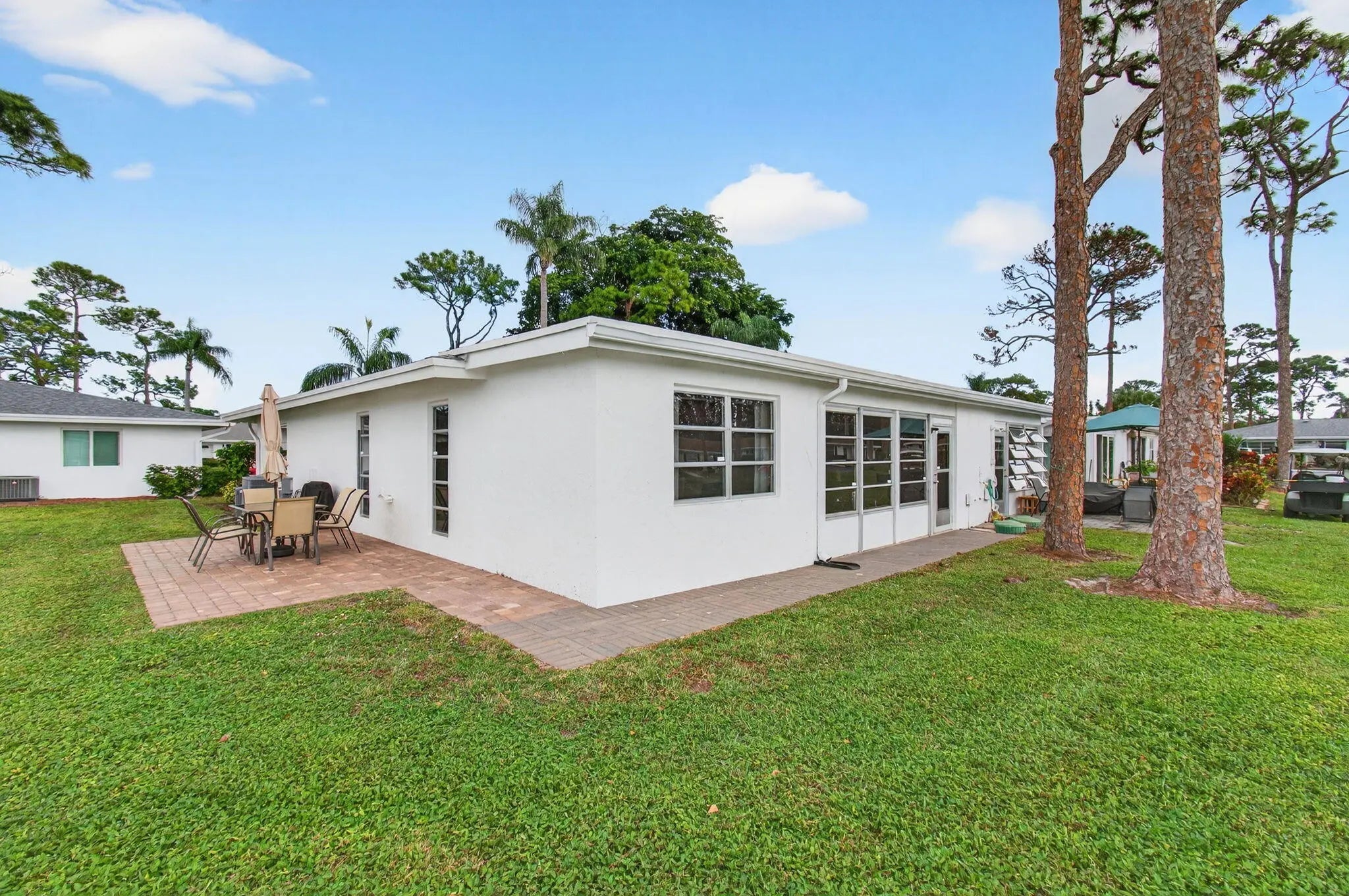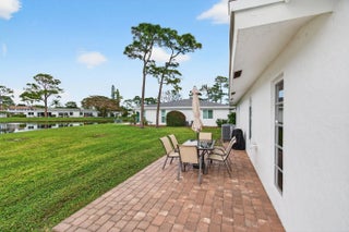 This villa boasts the best water-view lot in Bridgeview. Impeccably maintained w/ new hot water heater 2025, new A/C 2025, Owner's suite with sitting area and direct patio access, two walk-in closets and en suite bathroom. The kitchen has been completely remodeled(under mount lighting). Both bathrooms have been completely remodeled. Wraparound paver patio for lakeside living while viewing the dramatic wildlife in this bird-lovers paradise. Furnishings and all other contents of the unit are available for purchase. Seller prefers to sell the unit with all contents included. Bridgeview amenities including assigned parking, clubhouse, pool with spa, tennis courts, pickleball.