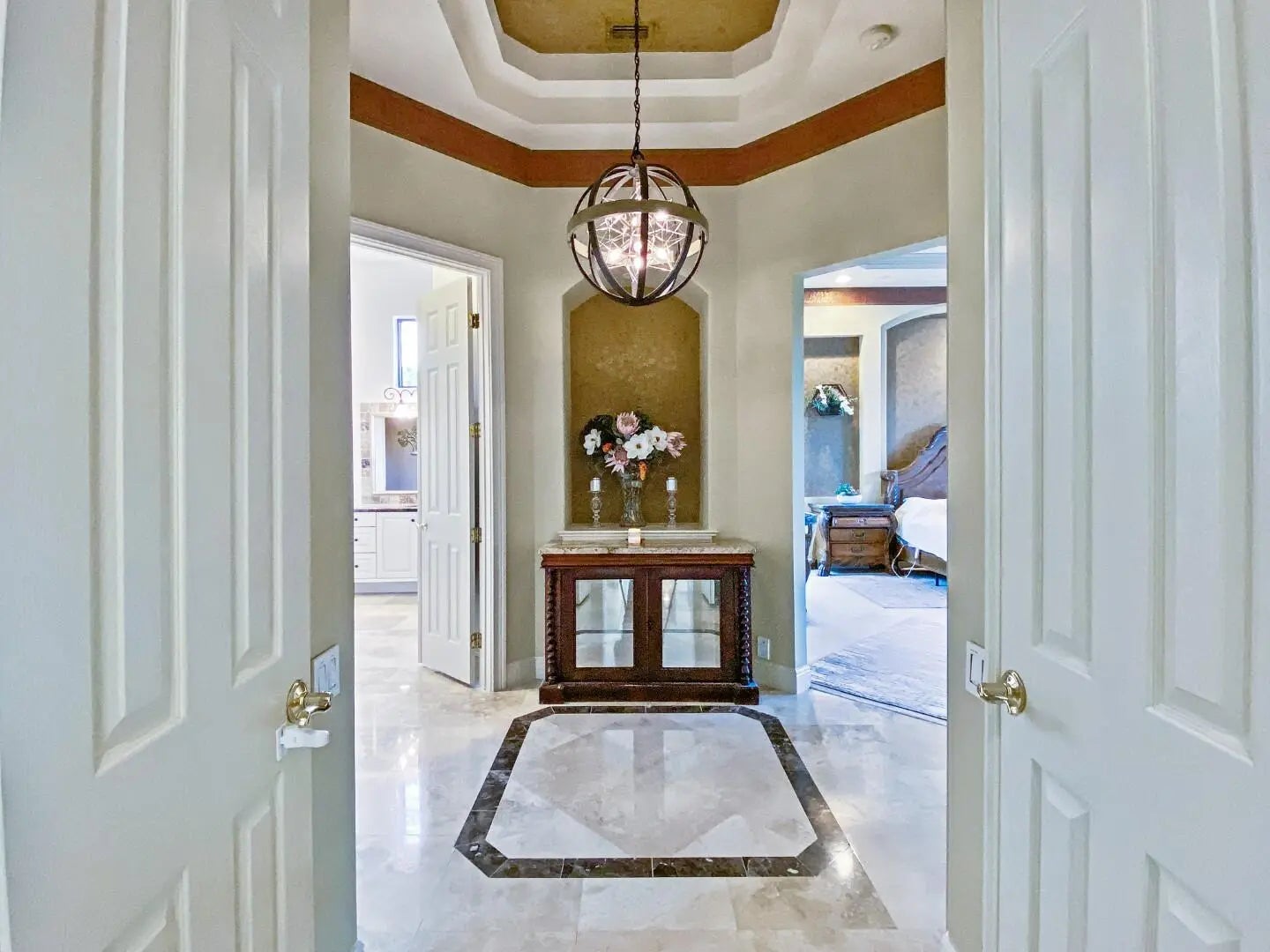 Bar, Fireplace(s), Foyer, Kitchen Island, Roman Tub, Split Bedroom, Volume Ceiling, Walk-in Closet, Wet Bar