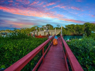 To mark the reef lying off the Jupiter Inlet, Congress in 1853 appropriated $35,000 to construct a lighthouse. At the top of the Jupiter Lighthouse, you can see the Loxahatchee River.