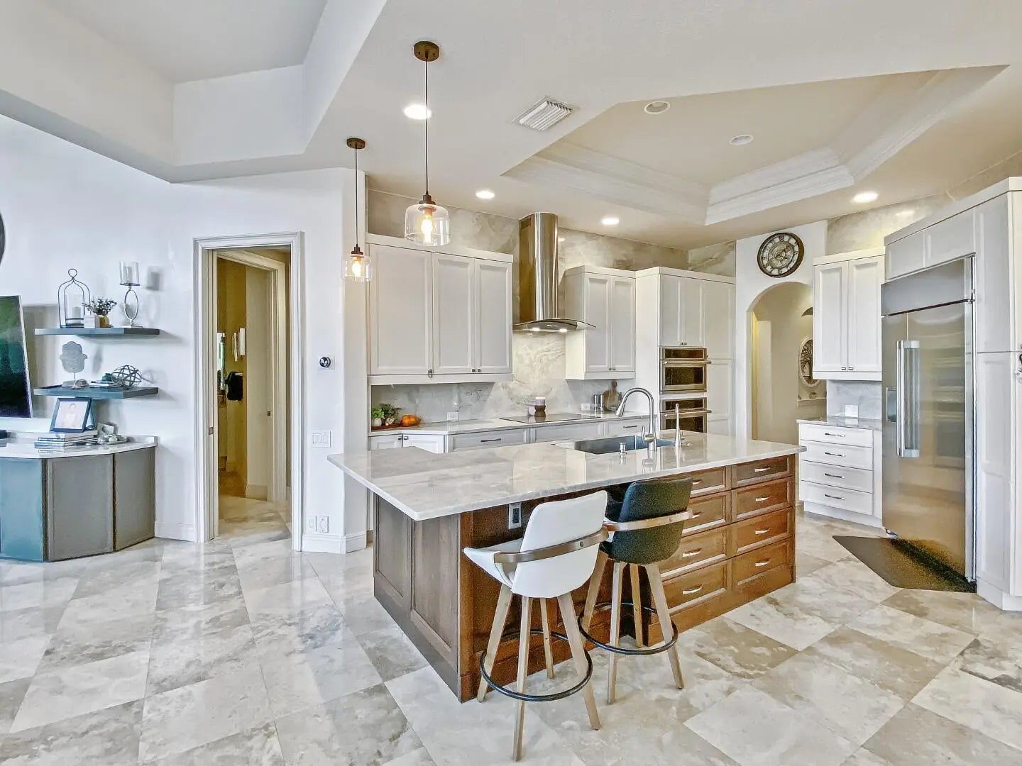 No Fixed Bridges, Ocean Access. The waterfront lifestyle in the prestigious Islands of Jupiter gated community. This 4,648 SF open split floor plan with 4 bedrooms and 5 en-suite baths, a bonus room, and two oversized 2-car garages. The main level features the primary suite and two guest rooms, plus an upstairs VIP suite with a sitting area, wet bar, and private balcony with river views. Enjoy 100' of waterfront, direct ocean access in ~10 minutes with no fixed bridges, and a private dock for 2-3 boats. Outdoor living includes a pool, spa, cabana bath, outdoor kitchen, and screened patio. Recent upgrades include a new roof, kitchen, paint, porcelain-paver driveway, and impact windows/doors. Secluded yard, full-house generator, and whole-home water system complete this move-in-ready retreat