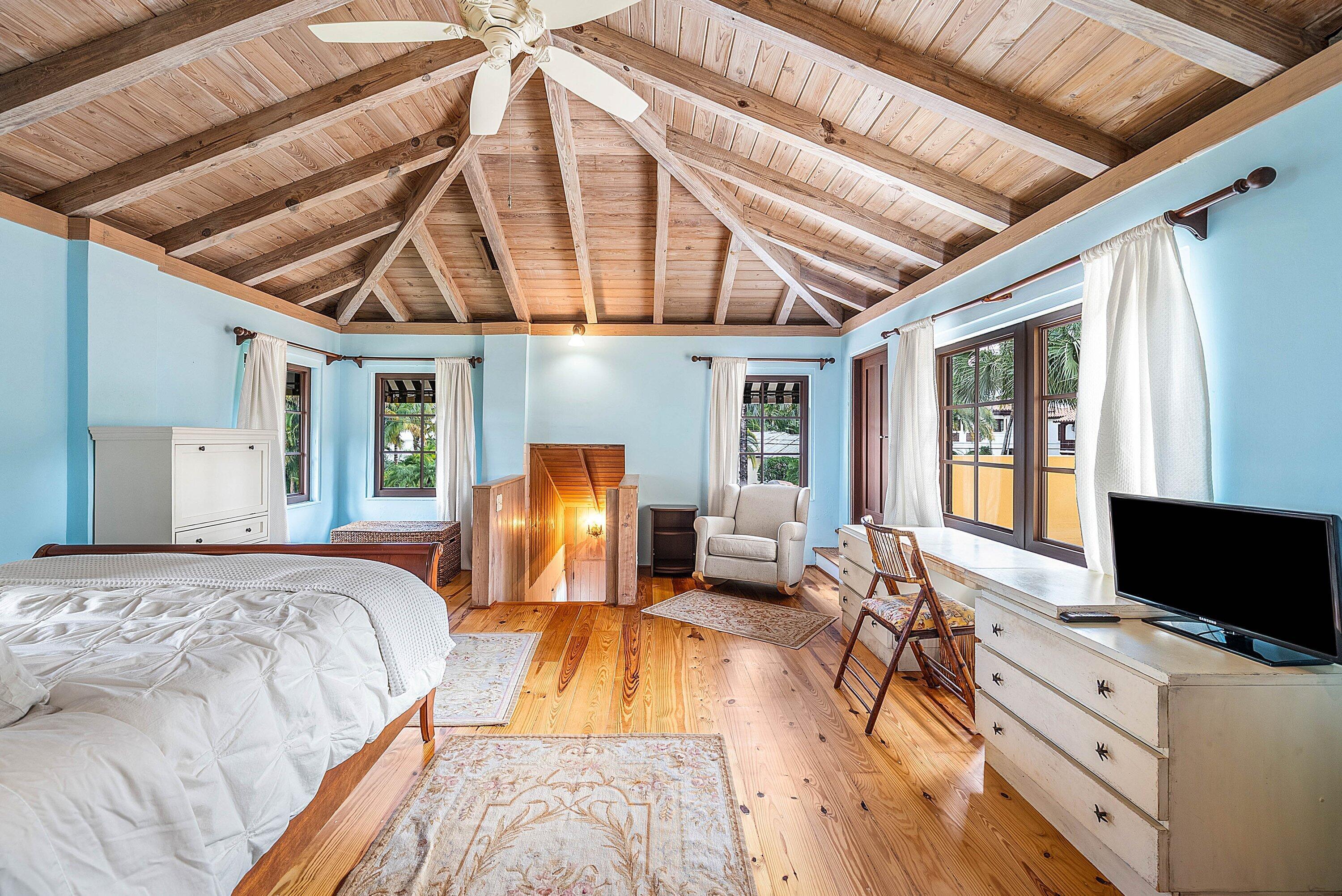 Available both annually and seasonally, this exceptional Palm Trail residence offers a rare rental opportunity in one of East Delray's most sought-after neighborhoods. Set on an expansive double lot, the property features a massive, fully fenced yard, lush mature landscaping, and a private pool--an uncommon level of space and privacy just three blocks from Atlantic Avenue and within walking distance to the beach, dining, and shopping. The home blends timeless 1950s architectural character with thoughtful updates, showcasing warm wood-beamed ceilings, rich natural materials, and seamless indoor-outdoor living. Natural gas appliances enhance everyday living, while generous outdoor areas and a prime location deliver an effortless Delray Beach lifestyle rarely available for lease.