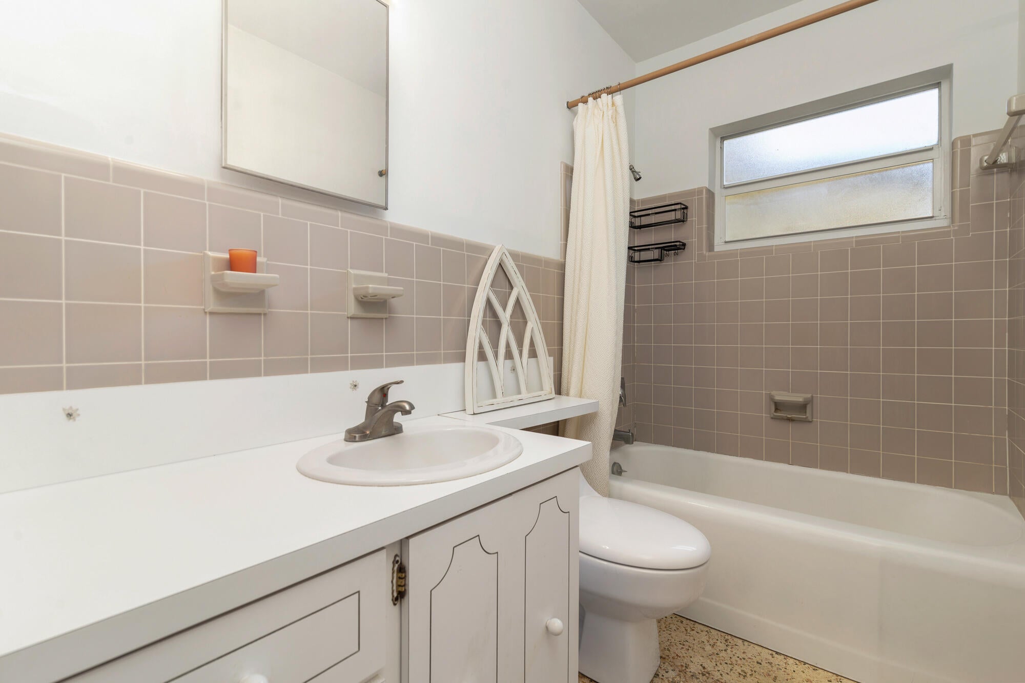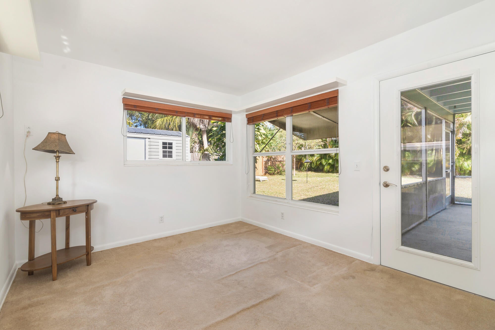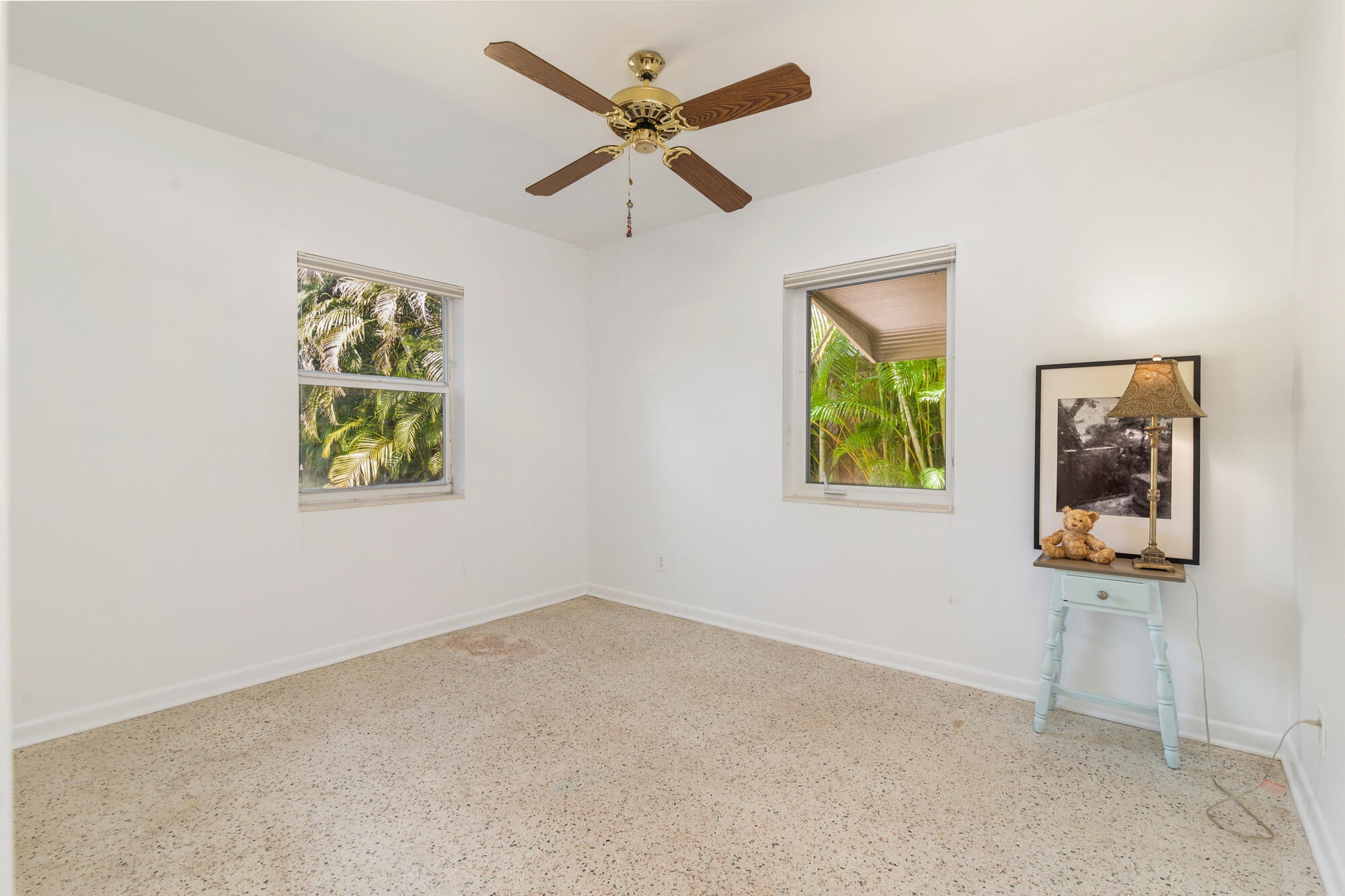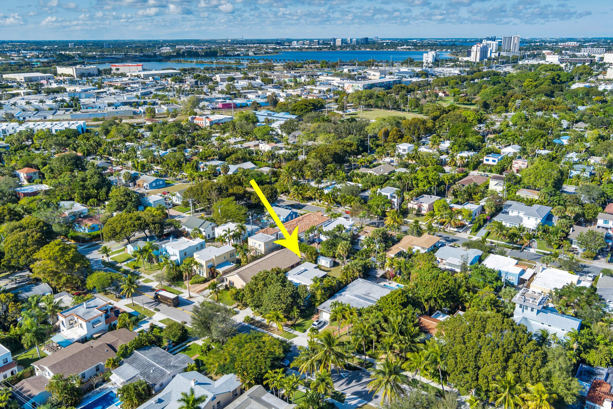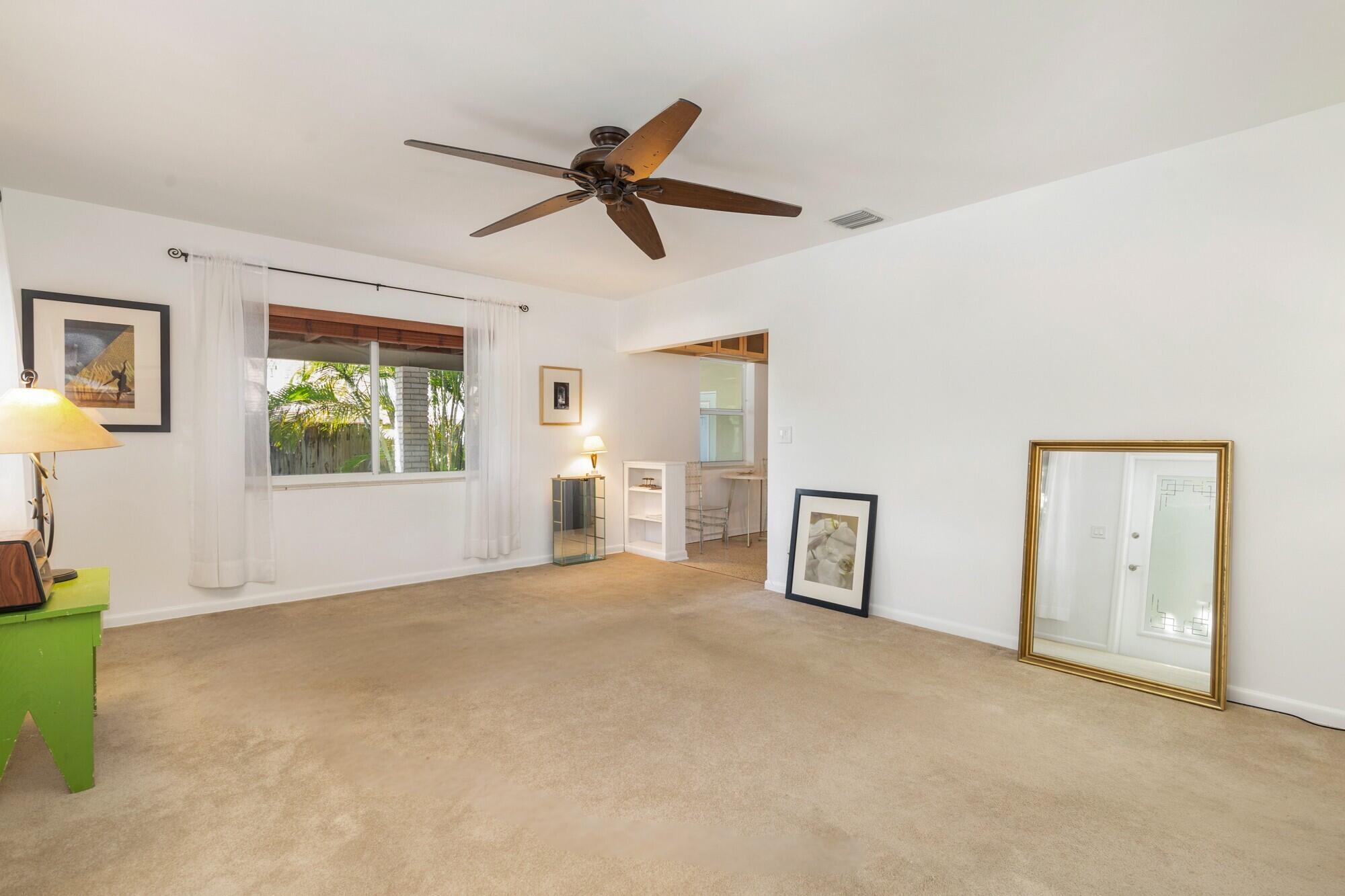 Splendid Mid-Century CBS home on the 'Hill Block' of Historic Flamingo Park! Two large mature Sea Grape trees frame the home and canopy the paved walkway leading up to the residence. Covered front porch greets guests. The home opens up to a bright & airy living room. The kitchen features stainless steel appliances and under cabinet lighting. Terrazzo floors and impact windows and doors throughout. Overlooking the backyard, the enclosed Florida room with exposed beams leads to the covered screened patio. The home has a split floor plan with 2BR/1BTH in the east wing and 1BR/1BTH in the north wing. The private backyard has a large detached shed and has room for a patio and a pool. Property features 2024 roof. Close proximity to Palm Beach Island, CityPlace, Antique Row, and PBIA.