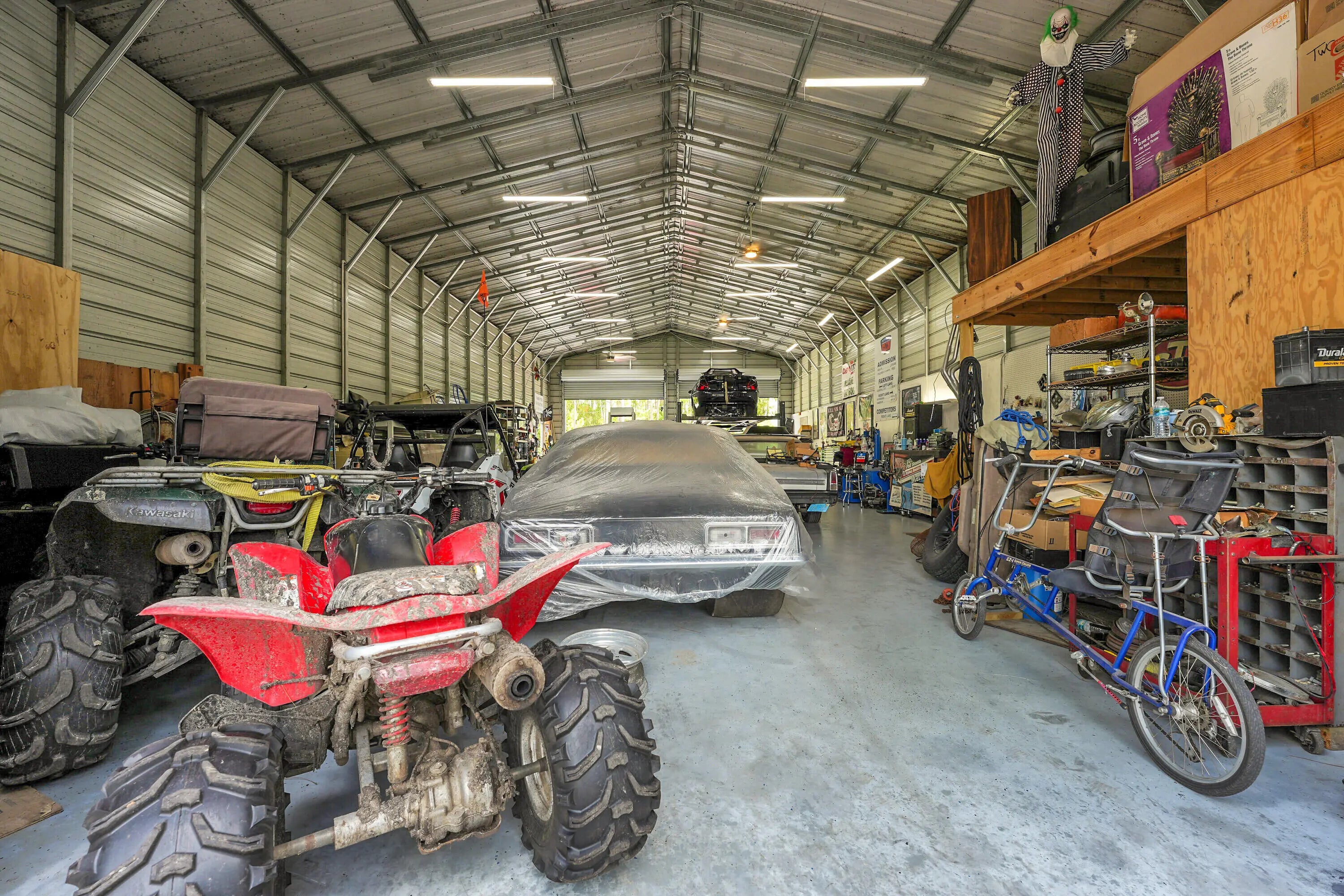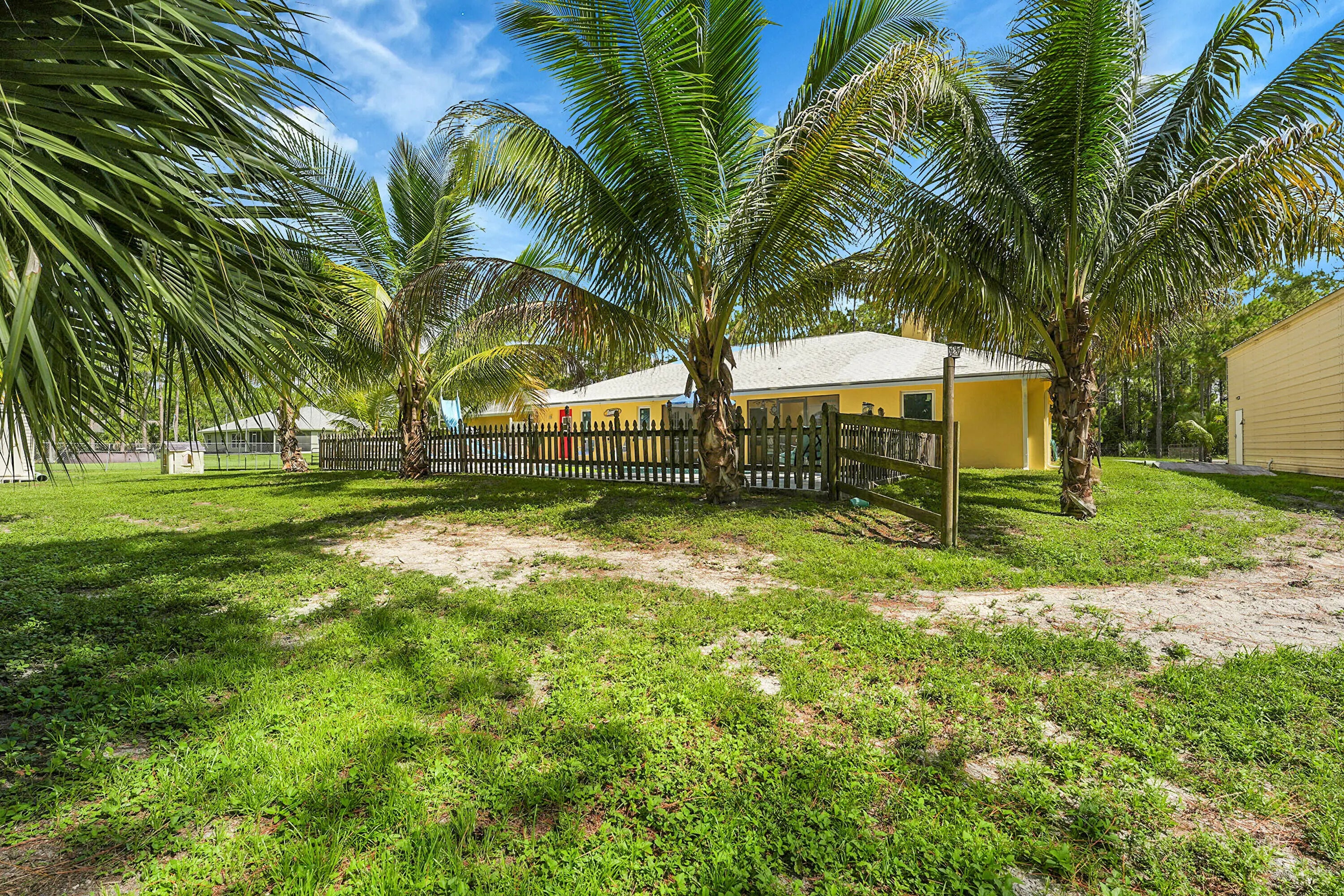 Beautiful paradise in the backyard, a pool surrounded with palm trees. NO HOA, bring the horses, goats, chickens. 4 bedroom, 2 bathroom home that includes a bonus room/office & 2 detached buildings. Nestled on 1.3 Acres this home has it all. Brand new hurricane impact windows, A split bedroom floor plan showcasing a primary bedroom retreat to enjoy your own peaceful space with a walk-in closet bigger than you can picture! The kitchen is completely redone with brand-new stainless steel appliances, cabinets and new floors throughout the house. Outside you'll find a screened in covered porch perfect for entertaining, 2 storage sheds and plenty of room for the animals. The massive detached shop is 30 x 65, has electric, a car lift with double roll up doors in front & one in the back.