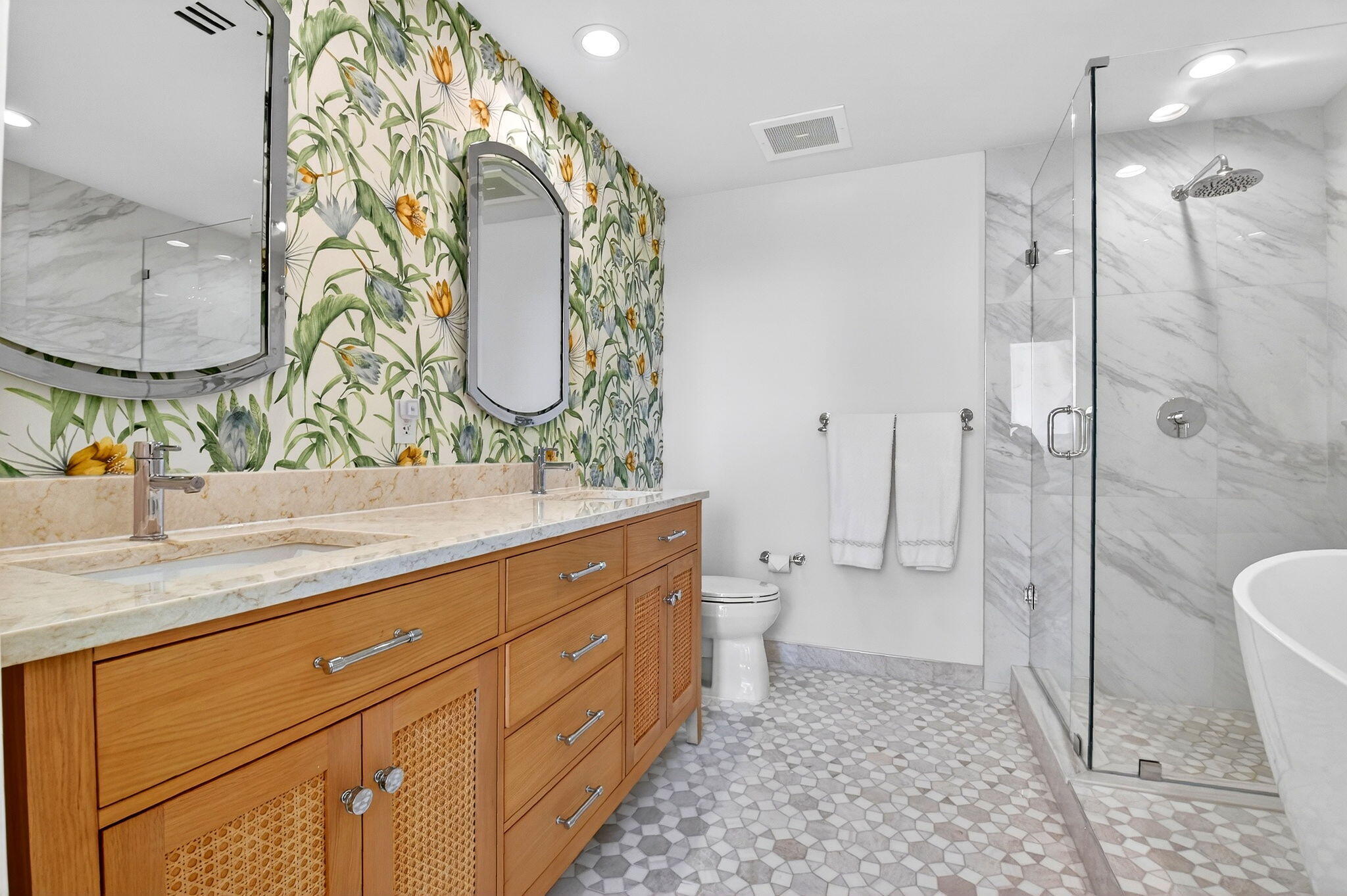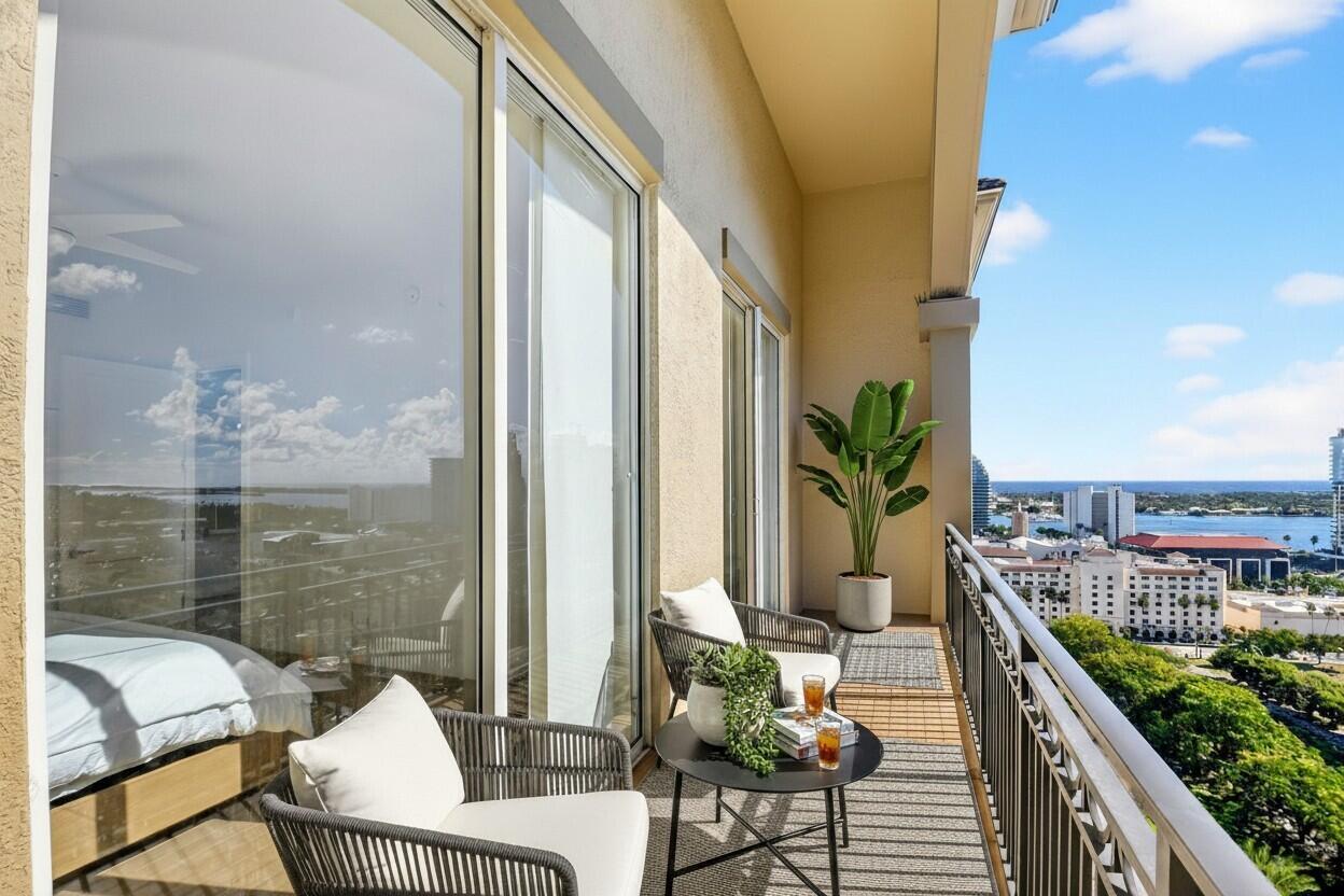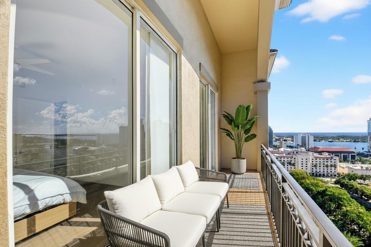 A showstopping Upper Penthouse offering soaring 11-foot ceilings, breathtaking coastal views, and a complete designer renovation, this is Downtown West Palm Beach living at its finest. Positioned on a coveted southeast exposure above the resort-style pool, the residence captures sweeping views of the Atlantic Ocean & Intracoastal Waterway, with sunlight streaming through every floor-to-ceiling window and sliding glass door. The home has been thoughtfully reimagined with timeless finishes, including custom kitchen cabinetry, brand-new white quartz countertops, ideal for entertaining. Additional upgrades include a stunning primary bathroom renovation, tile flooring throughout, fresh interior paint, new designer lighting, solid wood interior doors with updated hardwareand a newer washer and dryer. Hurricane-impact glass throughout offers peace of mind with showcasing the stunning views. The expansive open-concept living and dining areas are bathed in natural light and flow seamlessly into a fully equipped kitchen with top-of-the-line appliances and generous counter spaceperfect for both everyday living and hosting guests. The split-bedroom layout provides privacy and serenity, while the primary suite is a true sanctuary elevated by a stunning, completely reimagined bathroom renovation. Designed to feel like a luxury spa, the primary bath features refined finishes, a spacious layout, and a tranquil ambiance that instantly transports you into relaxation. Two walk-in closets and abundant storage complete the suite, along with elevated, bird's-eye views overlooking the pool deck below. Step outside onto the oversized, double-wide balcony perched above the resort-style poolyour own private escape where mornings begin with ocean breezes and evenings unwind in total tranquility. This penthouse truly offers the perfect blend of style, comfort, and resort living. Located in the heart of Downtown West Palm Beach at the iconic CityPlace South Tower, you're just steps from the city's best dining, nightlife, and cultural attractions. Enjoy immediate access to The Kravis Center, the Brightline, waterfront events, and the Norton Museum of Art, with Palm Beach's world-renowned beaches just minutes away. The building is also uniquely zoned for an A-rated elementary school district. West Palm Beach continues to emerge as one of South Florida's most exciting luxury destinations, and CityPlace South Tower stands as one of its most sought-after addresses. Residents enjoy 24/7 concierge service, valet parking, a state-of-the-art fitness center, a designer club room, summer kitchen pavilion, and a resort-style pool and spaensuring every day feels like a vacation. This is a rare opportunity to own a fully renovated penthouse that delivers lifestyle, location, and luxury in perfect harmony. Schedule your private showing today and experience elevated living in Downtown West Palm Beach.