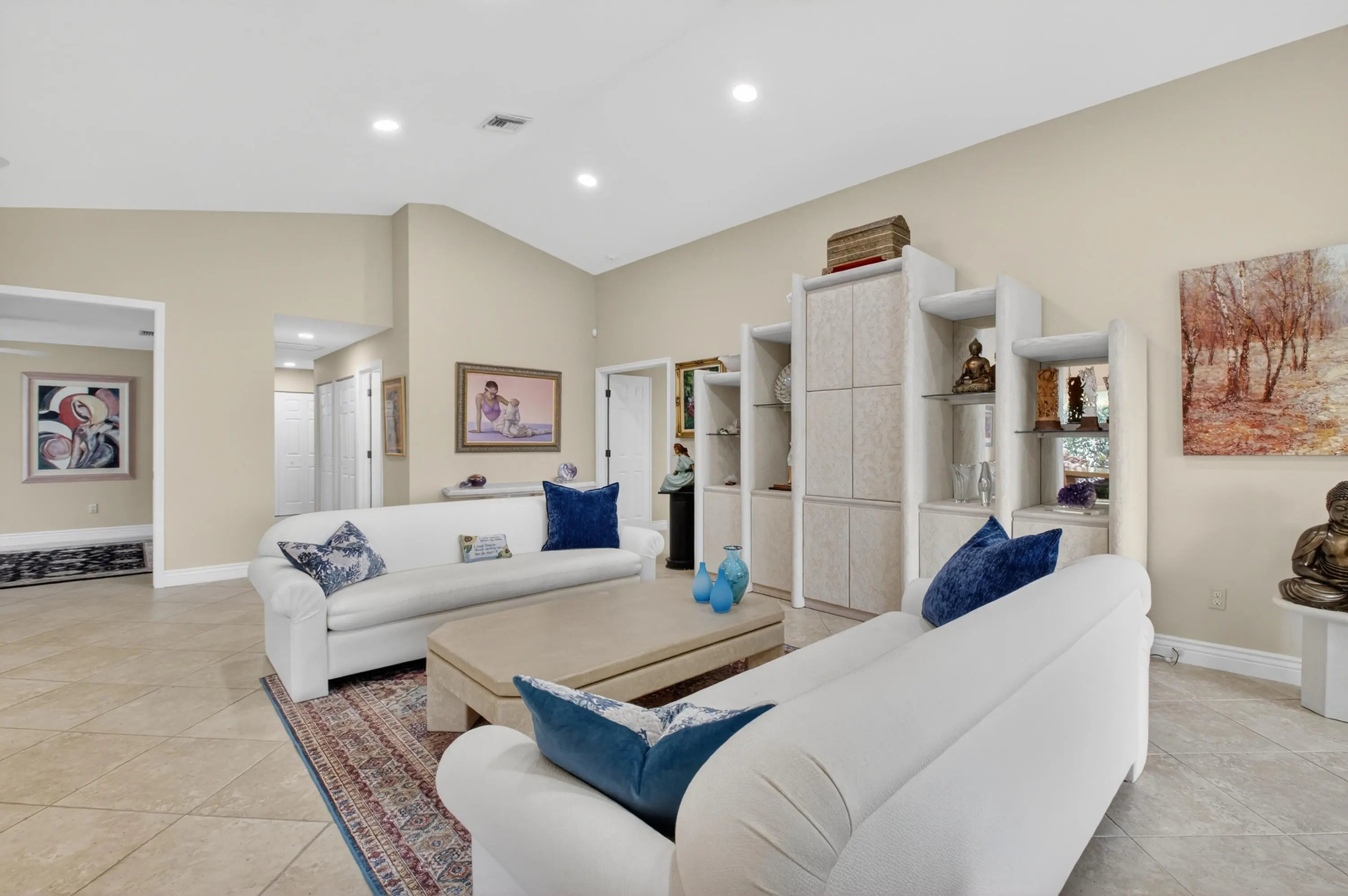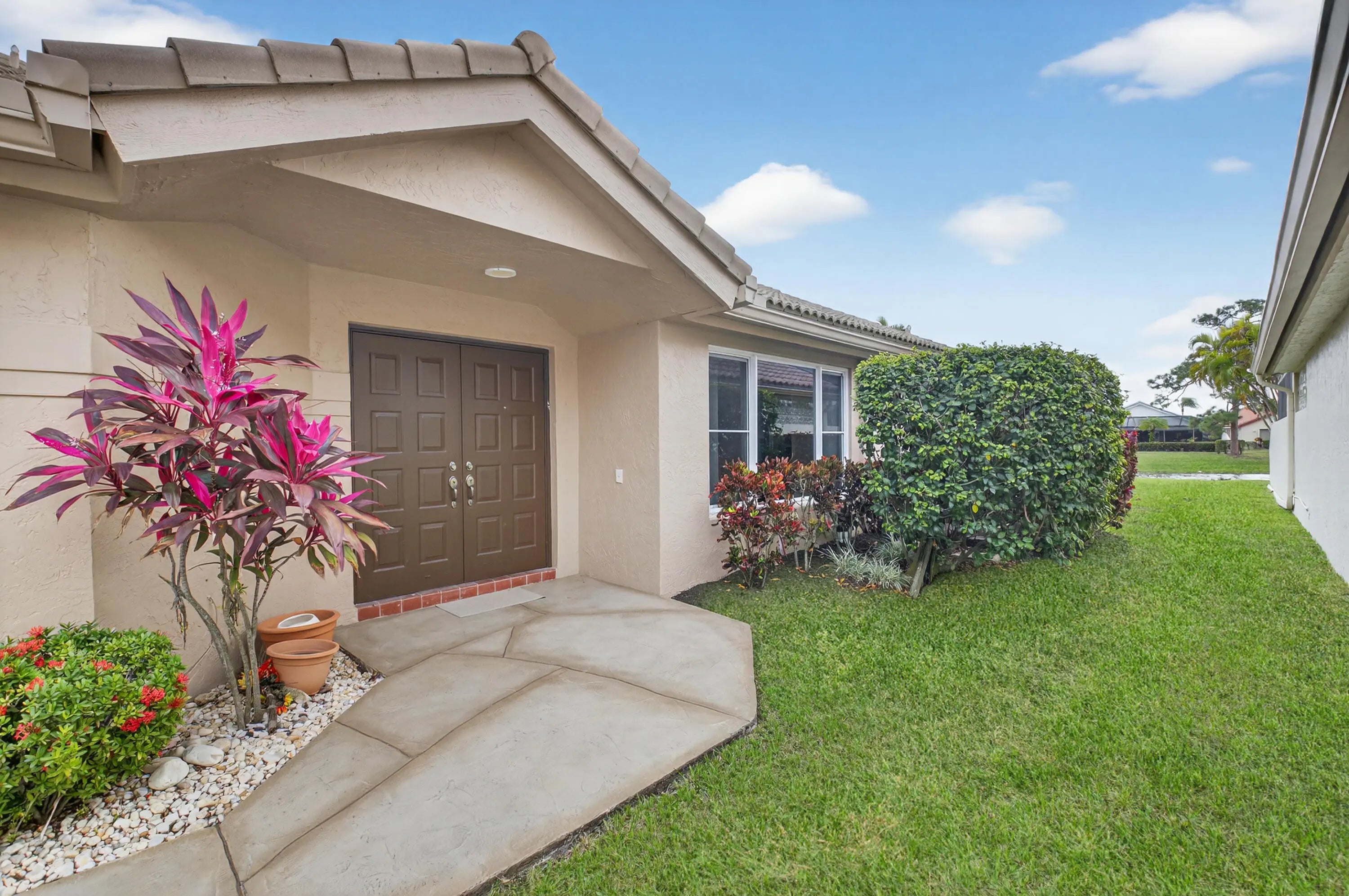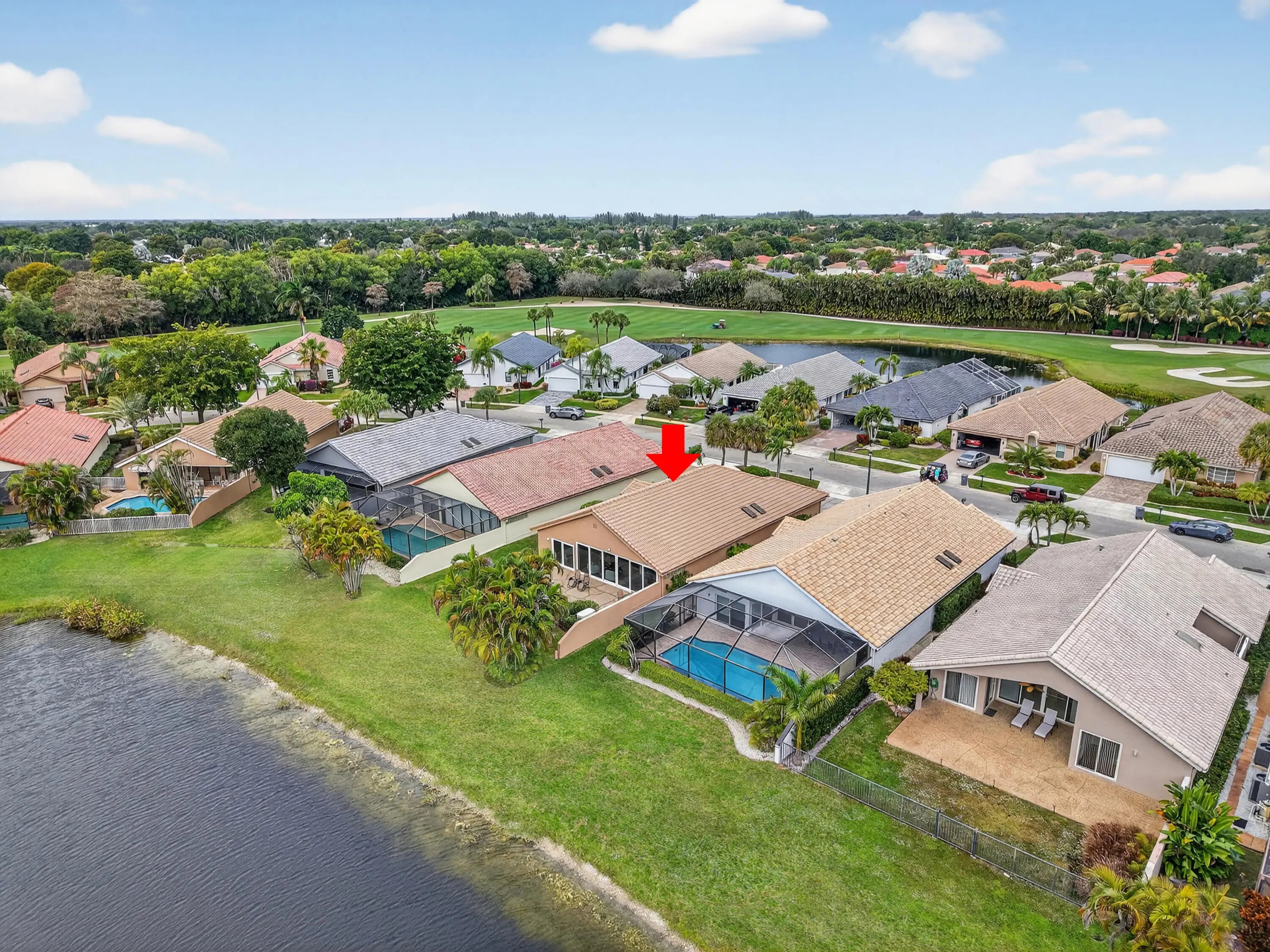 Enjoy all that Boca Woods Country Club has to offer from this tastefully appointed & updated 3 bed/ 2 / bath lakefront home. The open/ split floor plan with soaring ceilings offers direct lake views. Enter the large family room & formal dining area, that flows to the updated kitchen, breakfast area &fabulous glassed porch. Large primary suite has luxury bath & custom closets.There are 2 guest suites & bath. Neutral tile throughout living areas. Impact windows, full house generator, AC 2024. Boca Woods CC is an all ages mandatory membership golf community offering 2 championship golf courses, tennis, pickleball, state of the art fitness facilities, spa, resort style pool, renovated clubhouse, dining & extensive social activities. An exceptional opportunity and value.