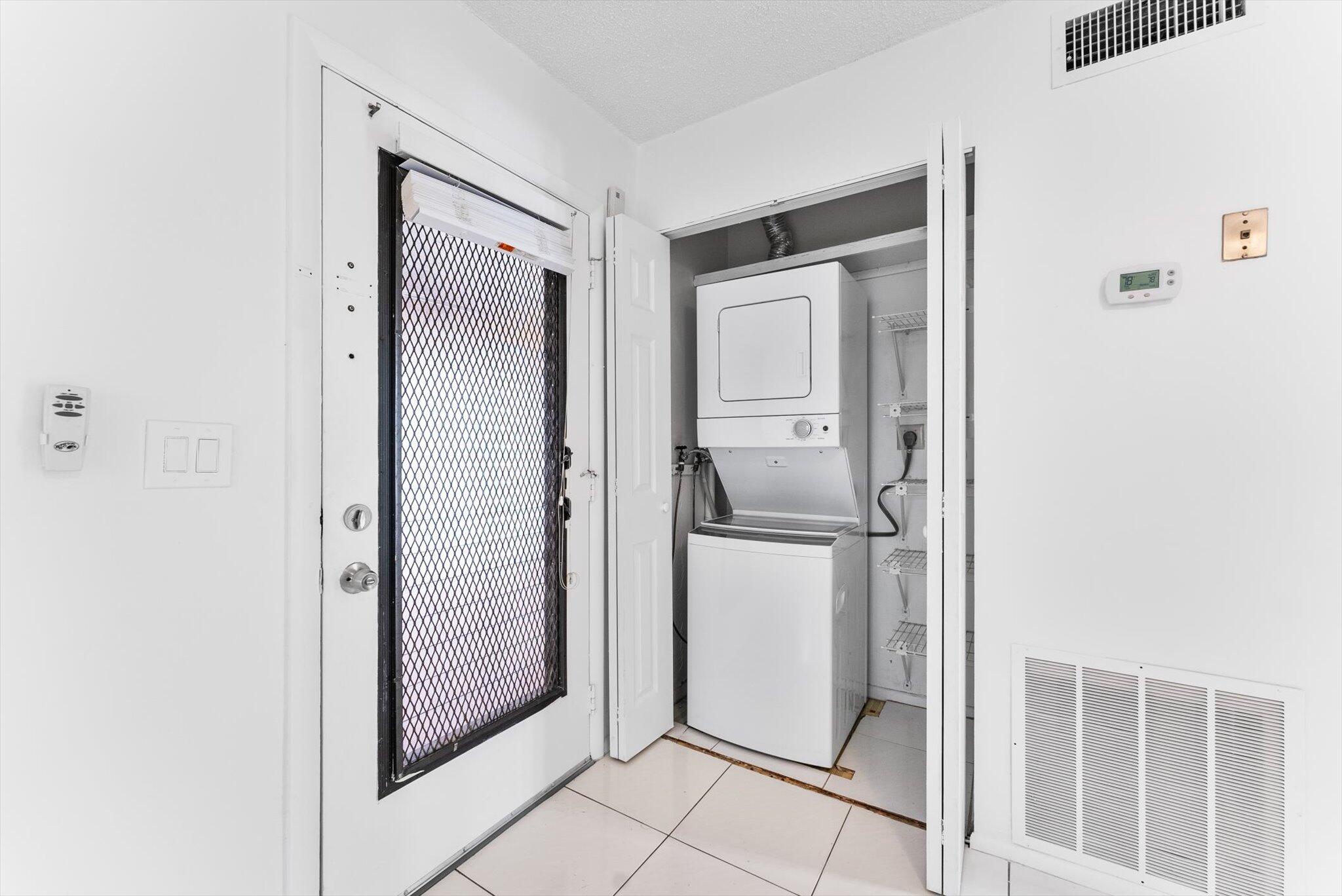 Charming corner first-floor condo in Golden Lakes, a gated 55+ community with many amenities. This 1 bedroom, 1 bath residence offers easy first-floor living with no stairs. The home features a spacious bedroom with a huge walk-in closet, a kitchen with a fun retro red stove, and the convenience of an in-unit stackable washer and dryer. Ideal for relaxed, low-maintenance living in an active, amenity-rich community.