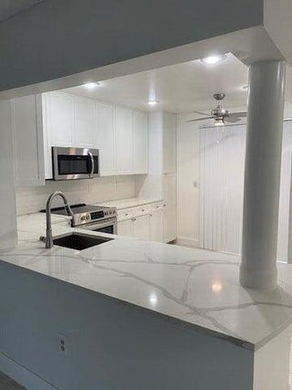 Beautiful 3-bedroom residence in the heart of Wellington, ideally located on the first floor. This home features a gorgeous newer kitchen, fresh paint throughout, no carpet, and beautifully remodeled bathrooms. Enjoy a relaxing screened patio off the primary bedroom overlooking a peaceful canal view. One pet is welcome (up to 20 lbs). Located in an area known for excellent Wellington schools.