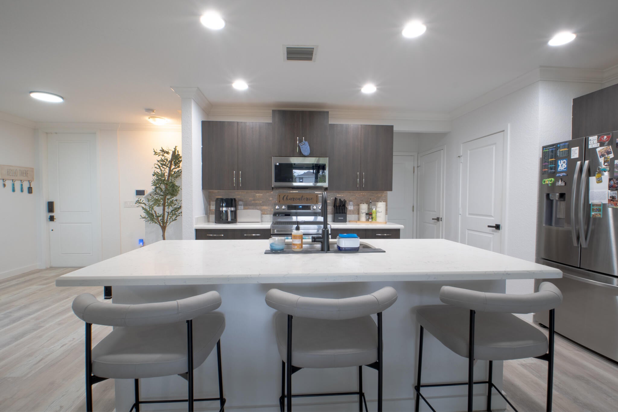Don't miss out on this beautiful remodeled waterfront single-family residence offering an open-concept floorplan and lake views. This 4-bedroom, 2.5-bath home features brand-new flooring throughout and a fully renovated master bathroom completed in the last year. All new appliances purchased in 2025, including refrigerator, washer, dryer, stove, microwave, and dishwasher. Enjoy outdoor living in the fenced backyard overlooking the lake, complete with a covered patio ideal for relaxing or entertaining. Located in a quiet neighborhood with a small number of single-family homes, offering privacy and a peaceful setting. The two-car garage includes an FPL electric vehicle charger ready to go. Truly move-in ready with modern upgrades and desirable waterfront living.