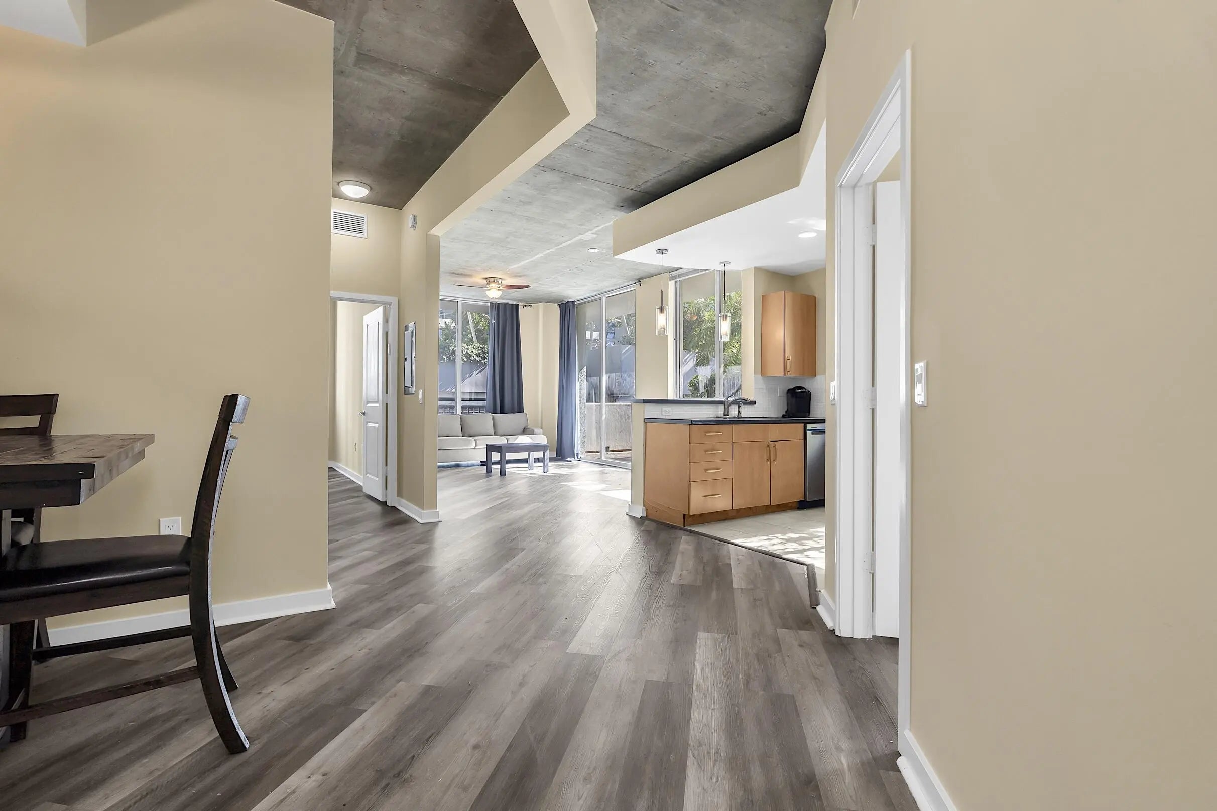 First time luxury buyers & investors welcome! Two bedroom two bath condo with ALL new appliances located at THE EDGE where modern downtown meets South Beach industrial. Loft-style open layout and 10 foot ceilings with exposed concrete and big windows. RARE FIND- this unit is located on the same level as the pool and clubhouse so no elevators! And unlike most balconies, this one is wrapped in greenery and palm trees so it feels private and more like a garden terrace than a condo balcony. Luxury amenities include 24 hour attended lobby and security, heated pool, cabanas, Clubhouse with fitness center/gym, business center, billiard room and media/lounge areas. Walkable living: Downtown shops, restaurants, nightlife and CityPlace. Beach access 10-12 minutes away. Pet Friendly too!