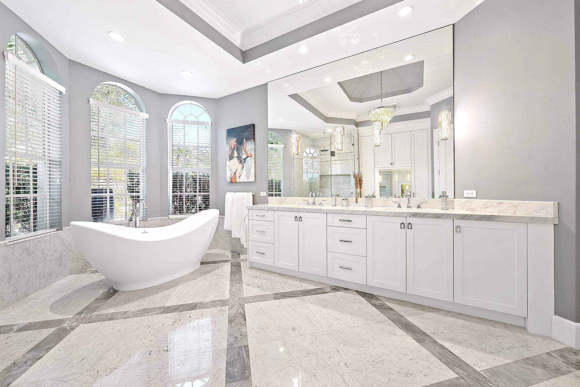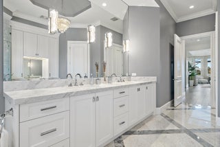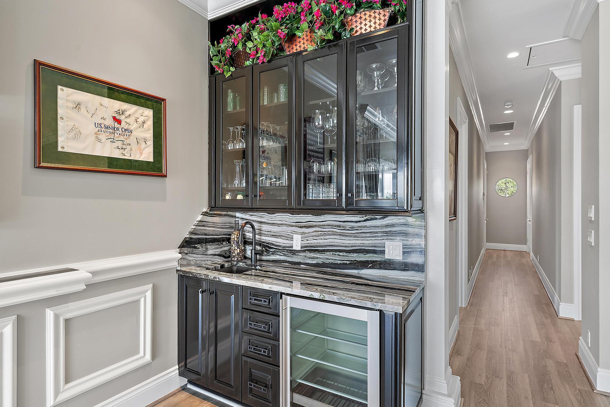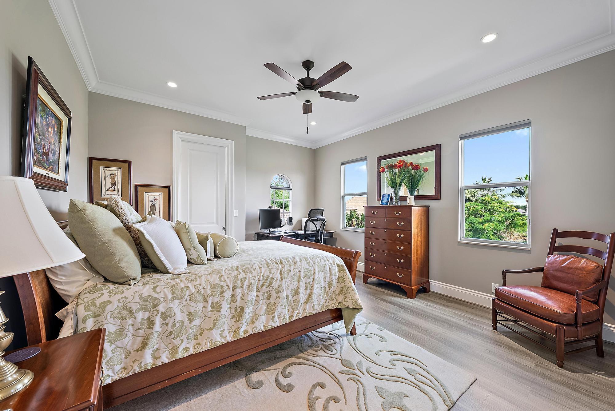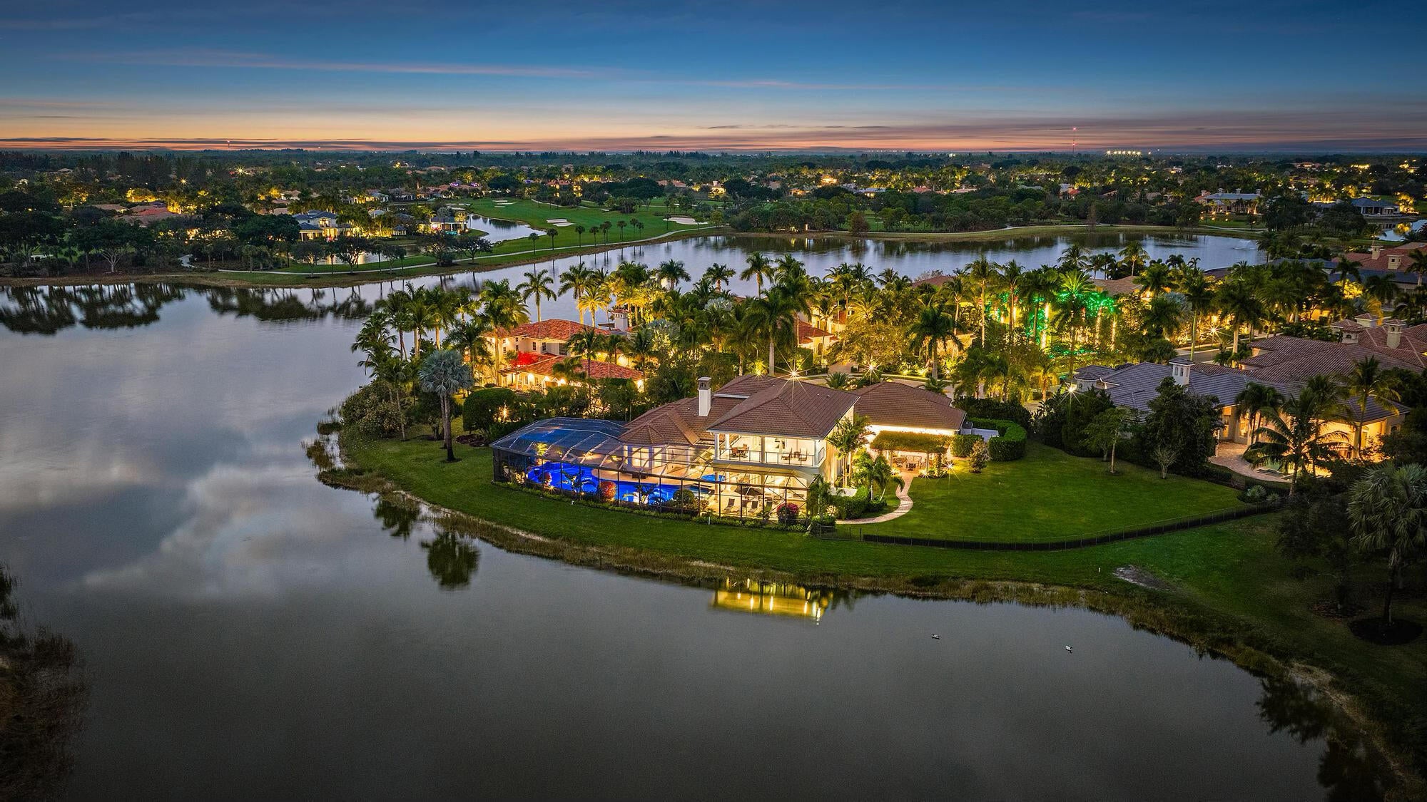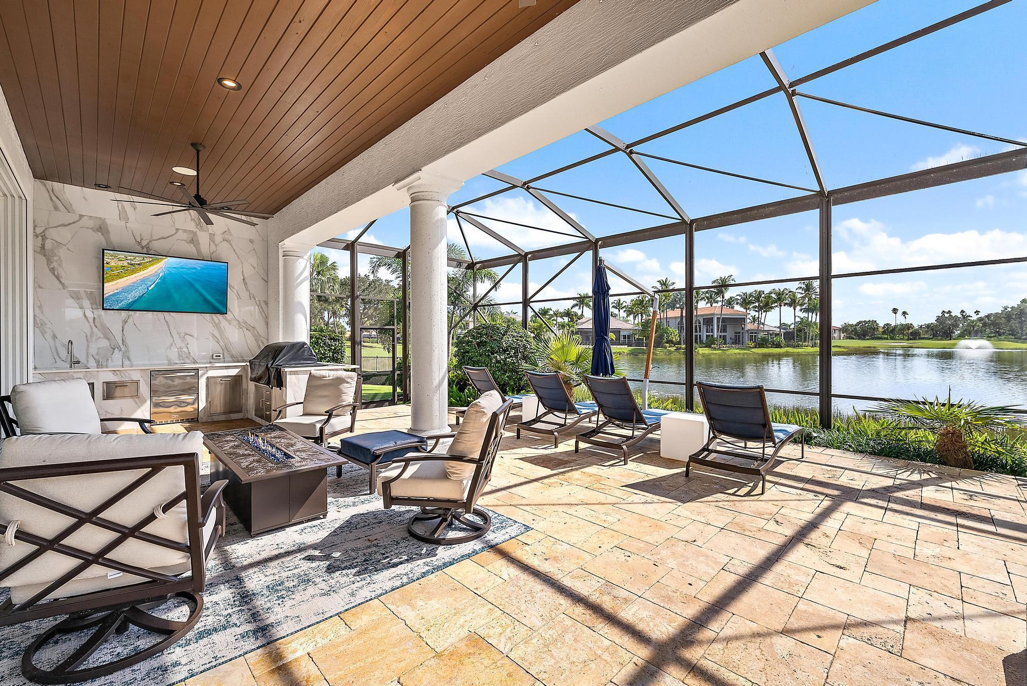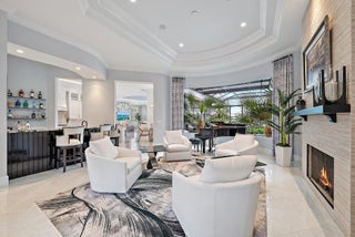 IMMEDIATE PREMIER GOLF MEMBERSHIP AVAILABLE WITH THE PURCHASE OF THIS HOME. Never before in The Club at Ibis has an estate of this scale and on a lot of this magnitude been completely reimagined at such an extraordinary level. Set on a rare 0.82-acre cul-de-sac waterfront lot with more than 300 feet of wraparound water frontage, this fully modernized grand estate enjoys prime southern exposure and and breathtaking panoramic lake and golf views overlooking multiple holes of the Tradition Course. The current owners undertook an extraordinary $2M renovation completed in 2023, transforming the residence into a virtually new, design-forward estate built to today's highest standards of construction, material selection, and craftsmanship.Every major system, surface, and finish has been thoughtfully replaced or enhanced, creating a home that is both visually stunning and technically superior. Spanning five bedrooms and six baths, plus a generously sized office, the interior showcases custom cabinetry throughout by Grand Cabinet Company, large-format Montclair Blanco polished porcelain flooring, bespoke millwork, all-new crown molding and baseboards, and curated designer lighting. The reimagined kitchen is a true centerpiece, featuring a Sub-Zero refrigerator (and a matching Sub Zero in the nearby laundry room), a full suite of Thermador Professional appliances, custom hood design, and marble countertops, seamlessly blending form and function. Baths have been elevated with Italian Bianco Carrara marble, Opustone selections, and TOTO toilets and Washlet, paired with Kohler fixtures sourced through Ferguson. Two exceptional primary suites offer rare flexibility for multi-generational living or elevated guest accommodations. The upstairs primary suite is thoughtfully positioned near an additional bedroom suite and an expansive upstairs living and entertaining lounge with a bar, and features floor-to-ceiling "invisible" sliders that open to a sleek modern balconyframing some of the most breathtaking panoramic views in all of Ibis. The downstairs primary suite is a private sanctuary, opening directly to the screened outdoor oasis and resort-style pool area and showcasing dual oversized closets and a truly magazine-worthy spa-inspired bath. Indoor living flows effortlessly outdoors to a resort-caliber environment, highlighted by a newly renovated 64-foot saltwater pool with spa, and an expansive screened living area. The completely redesigned summer kitchen by Fischman Custom Kitchens features a Lynx 42" built-in rotisserie grill, Lynx outdoor burners, Blaze refrigeration, stainless cabinetry, UV-stabilized quartz countertops, and every detail required for large-scale entertaining. Beyond the pool, an unprecedented 12,000-square-foot side yard offers possibilities rarely found in Ibis. An additional outdoor retreat awaits beneath a jasmine-covered trellis, offering firepit seating and tranquil golf course vistas. Safety, resilience, and infrastructure were addressed without compromise. The home features a new roof (Gustafson), four HVAC systems, three of which are new, IMPACT GLASS throughout, and a whole-home 80KW natural gas generator, ensuring uninterrupted comfort and security. Additional infrastructure enhancements include a whole-home water softening and filtration systembringing everyday luxury to the details that matter most. Completing the estate is a one-of-a-kind 5-car garage/workshop, spanning over 1,240 square feet with 10-foot ceilings, commercial-grade epoxy flooring, a custom wall system, and an extended bay with a 10-foot-wide door and 12-foot ceiling height, ideal for car lifts, specialty vehicles, or marine storagean exceptionally rare offering in this market. This is not simply a renovated homeit is a comprehensive reinvention of one of Ibis's most significant properties, where scale, lot size, views, infrastructure, and design converge at a level that cannot be replicated today. Located in the Bay Pointe enclave at The Club at Ibis, a Platinum Club of America, this home provides access to one of South Florida's most celebrated amenity-rich environments: a 90,000-square-foot clubhouse, three championship Nicklaus-family golf courses, five exceptional restaurants, a world-class fitness complex and spa, and premier tennis and pickleball facilities.