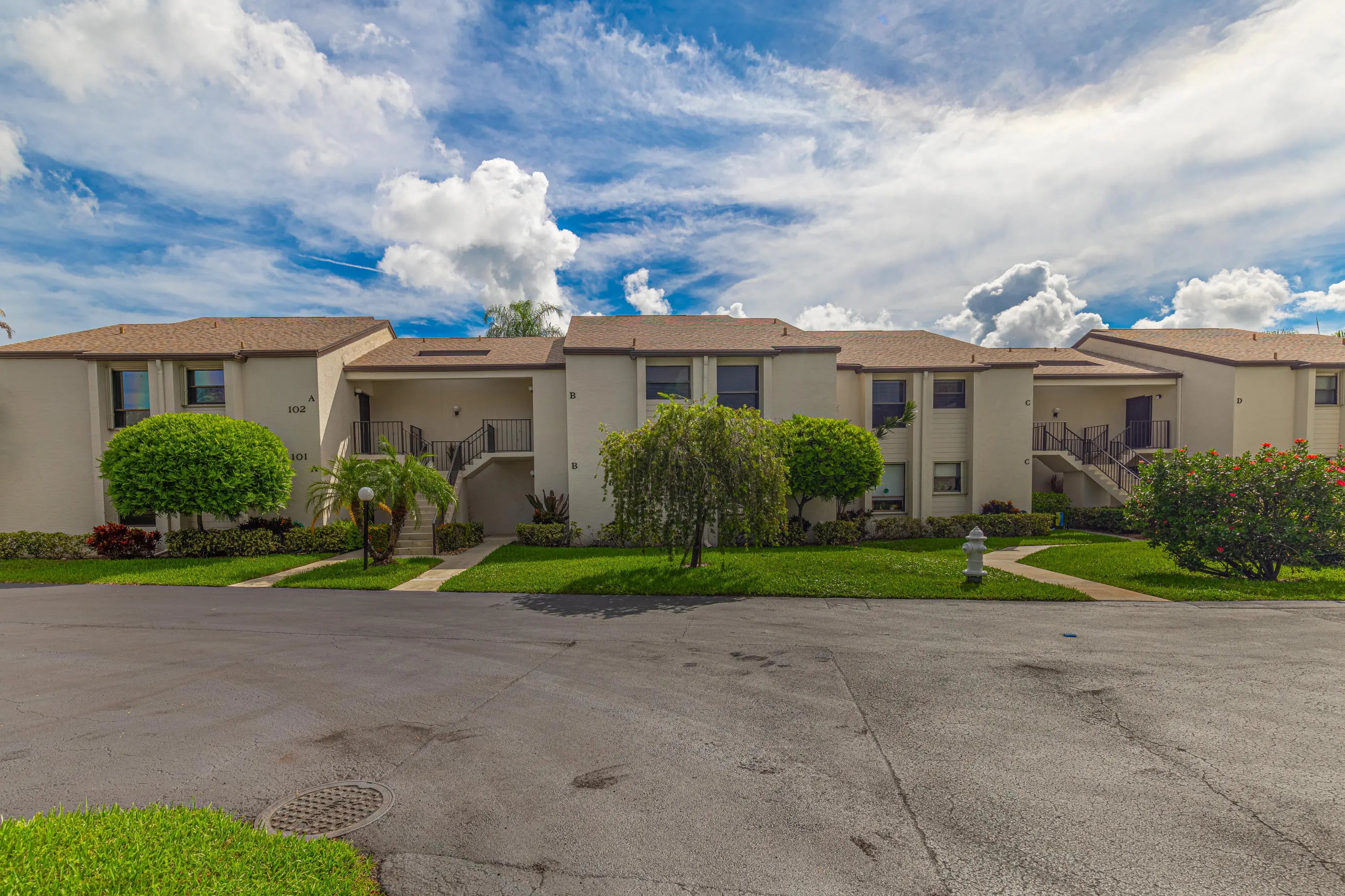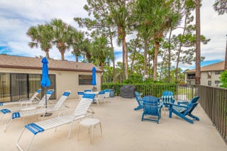 Wingfoot is a vibrant 55+ adult community conveniently located near I-95 in Jupiter. This move-in-ready, furnished second-floor condo offers comfortable living right next to The Golf Club of Jupiter. Situated across from a park with a children's playground, residents enjoy a lovely view from the balcony overlooking Central Blvd. The condo features a spacious kitchen with space for an additional table, a split-bedroom layout, and each bedroom includes its own bathroom and a large walk-in closet. Community amenities include a pool and a lounge room, perfect for relaxing or entertaining. It's an ideal place to embrace the Florida lifestyle beside the golf course