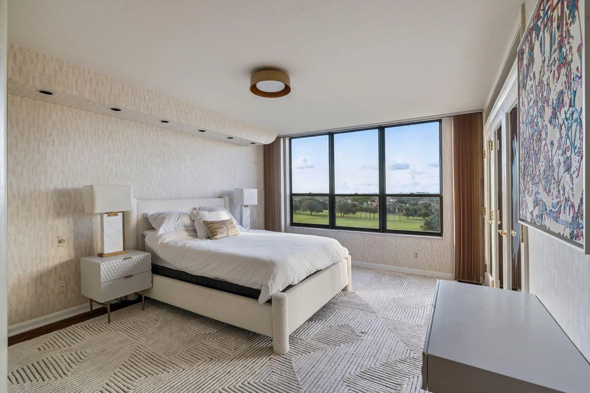 Penthouse perfection in the heart of Boca Raton. This one-of-a-kind 3-bedroom, 2-bath residence occupies the entire floor, offering total privacy and panoramic views in every direction. With no shared walls and direct elevator access, this exclusive unit includes an expansive 1,800+/- square foot private rooftop terrace -- ideal for entertaining, sunbathing, or enjoying the sunrise and sunset with unobstructed views to the east, north, south, and west. Inside, the home is rich with character and elevated finishes, including elegant custom built-ins, curved architectural walls, and a classic built-in bar. Hardwood, marble, and laminate flooring flow throughout the living spaces, blending warmth and sophistication. The updated kitchen features a brand-new refrigerator and modern touches,