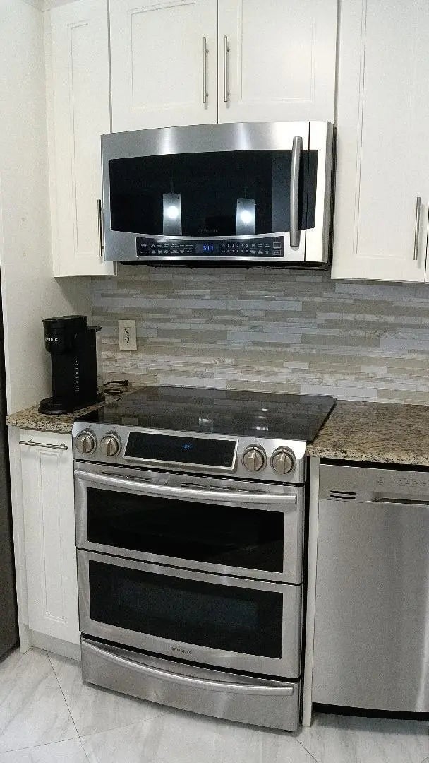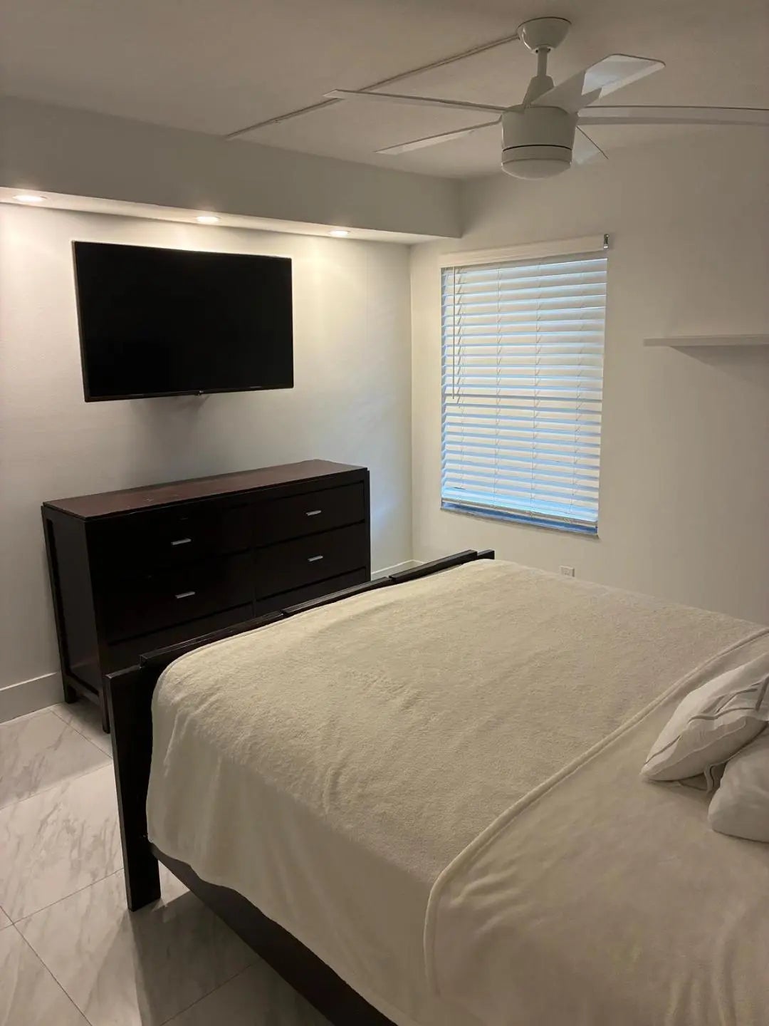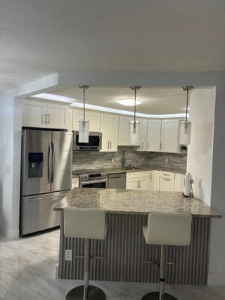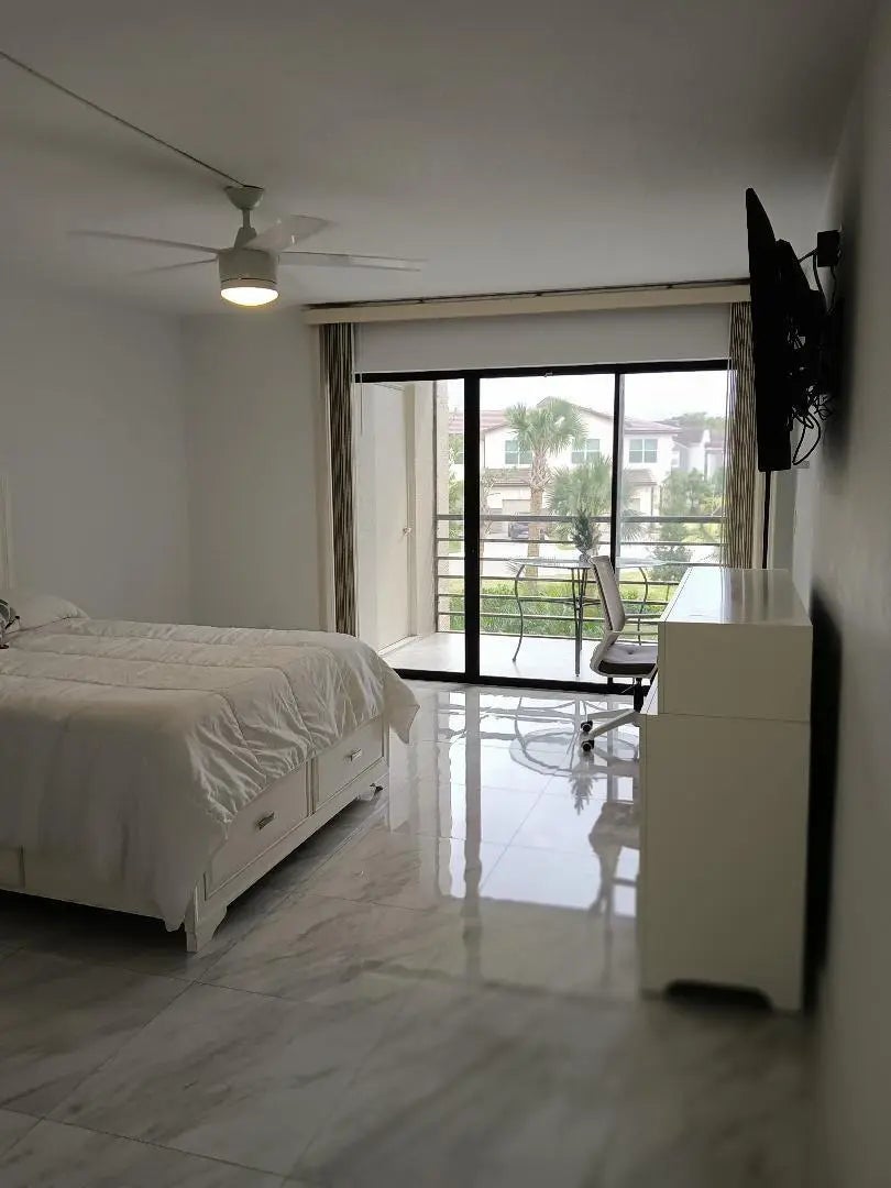 FULLY FURNISHED annual rental, ALL AGES, 24 hour manned gate in central Boca Raton, 2 b.r. 2 bath. 2nd floor w/elevator. Beautifully renovated, modern,1,550 s.f. incl. the large screened-in patio. Great view. Custom kitchen, granite counters, stainless appliances, full size washer/dryer in unit. Sofa bed for guests. Tile floors throughout. Large master bedroom, walk-in closet, walk-in shower. Relax in the soaking tub in the master suite. 3 tv's. Rent includes water, Comcast internet, cable tv, trash, 4 heated pools, saunas, 2 tennis courts, pickleball, gym rooms, BBQ grills, walking areas. Friendly community. 5 miles to the beach, close to shopping, restaurants, I95, turnpike. Great schools. 700 credit score and good income to qualify. Assigned parking/guest spaces.