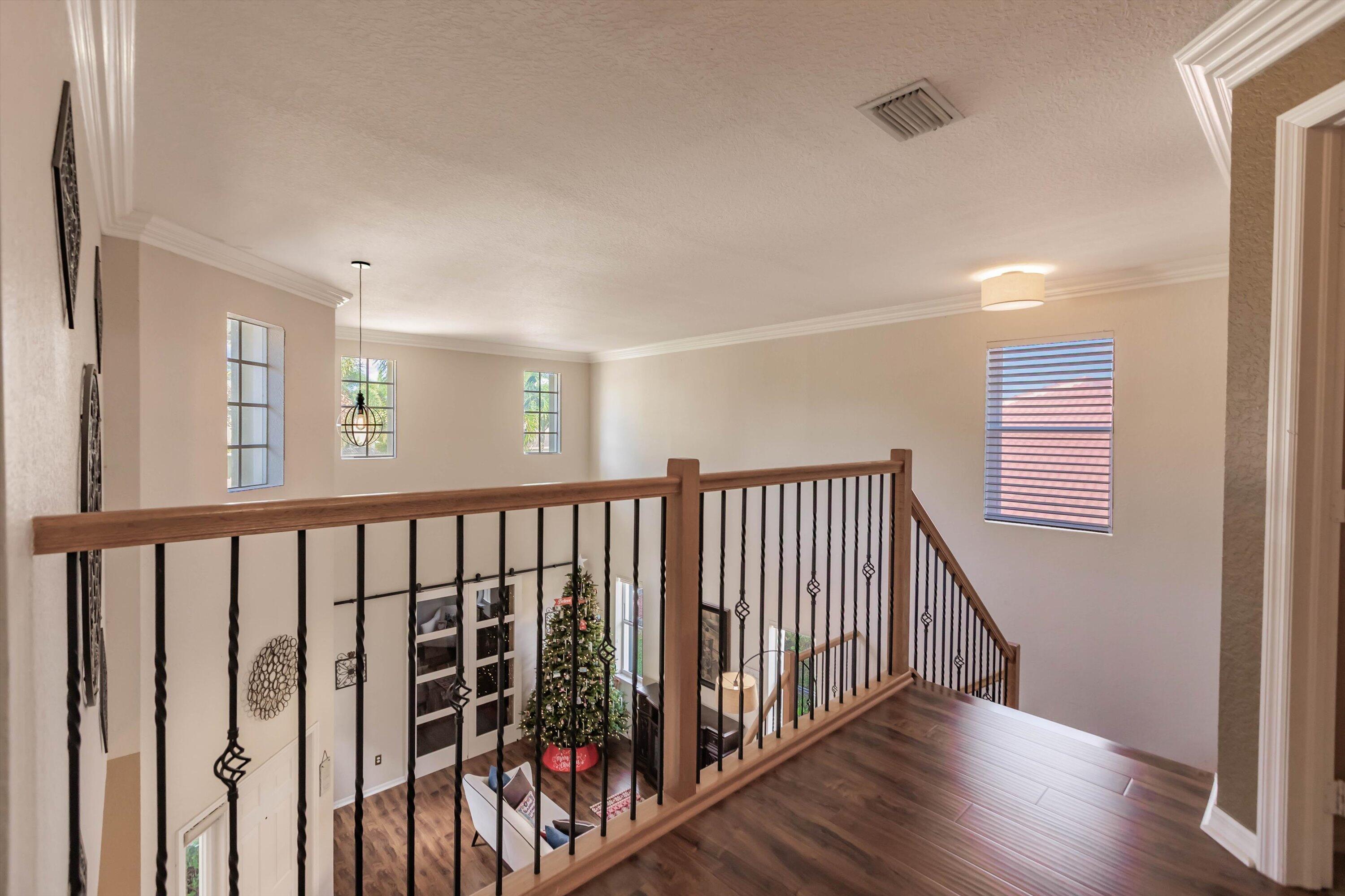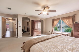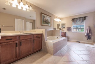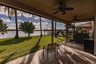 Welcome to this beautifully designed two-story home, offering 5 spacious bedrooms and 3 full bathrooms in a serene, gated community of only 200 homes. The 5th bedroom was opened up to create a large master suite, but can be converted to 5th bedroom again. Nestled on a premium waterfront lot, this property boasts breathtaking lake views that can be enjoyed from the comfort of your living spaces and backyard with fruits trees. The thoughtfully designed floor plan includes a downstairs bedroom with its own bathroom--perfect for guests or multi-generational living. Upstairs, you'll find four additional bedrooms, including a luxurious primary suite with panoramic lake views. 3rd car garage workshop was converted to an extra room in the home, (SEE MORE for ADDT'L DESC.)6 inch crown moldings throughout the house, except bedrooms and upstairs bathrooms. New A/C installed 1/24/20. The kitchen opens seamlessly into the living and dining areas, creating an inviting space for entertaining. Outside, the backyard offers a tranquil setting to relax and soak in the serene waterfront ambiance. Sunrises and sunsets are breathtaking. The way the property sits, from the backyard, you get the sunrise to your left and the sunset to your right. The back terrace has a convenient roll-down screen to keep the mosquitos out, and maintain a comfortable temperature. A spacious three-car garage provides ample storage, and the community amenities ensure a secure and upscale lifestyle. This home combines elegance, comfort, and a prime location, making it a rare gem in the much sought after Stonehaven community. Life here is unique. Neighbors are welcoming. Golf carts allowed. Property also has a built-in pest control that provides extermination through an exterior wall port on both sides of the property. Extra large walk-in pantry which can be converted into a great Chef's Pantry. HOA includes alarm monitoring, cable tv with 500 + channels, high speed internet, manned guard gate, pool, clubhouse, fitness room, and pickleball and tennis courts. Garages use a wireless garage opener app, and also 2 remotes. A/C is from January of 2020, and it gets maintenance every 6 months. Owner has hard copies of all original plans (interior and exterior), plus pictures from original build, and also flash drive with photos. Don't miss the opportunity to make this stunning Florida lakefront property your new home!