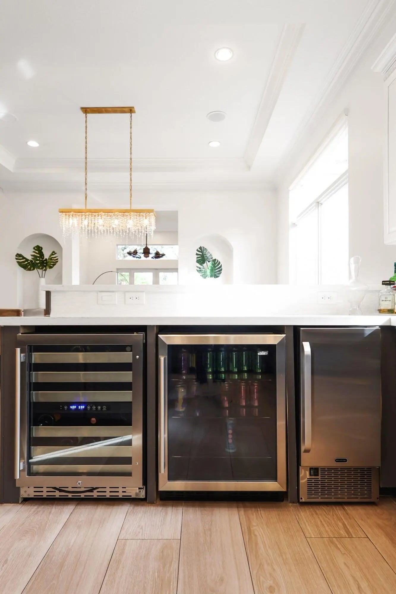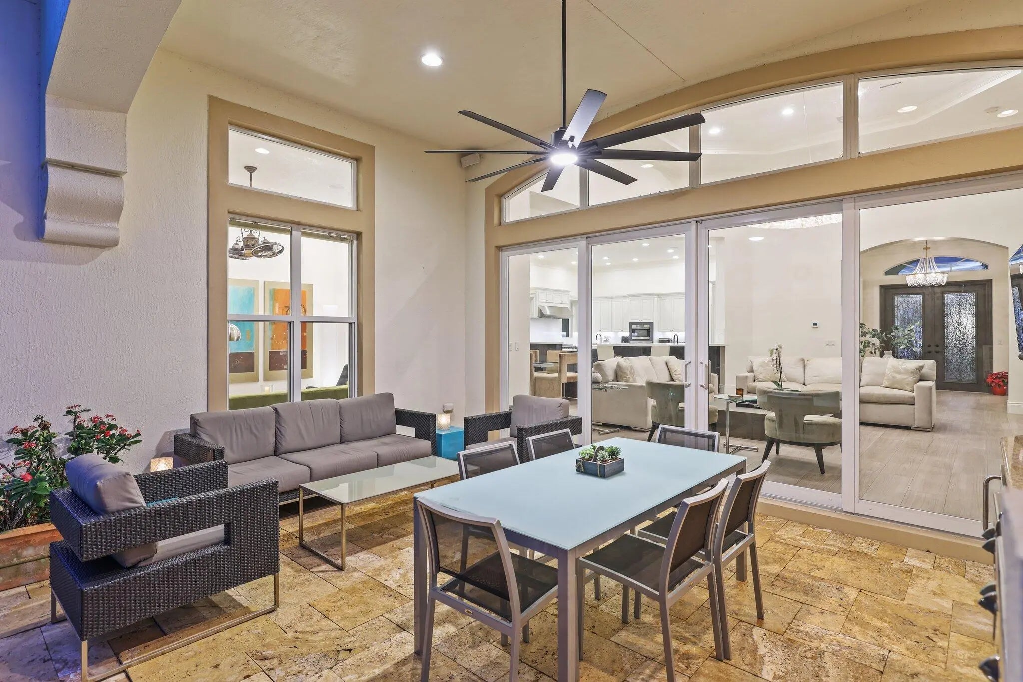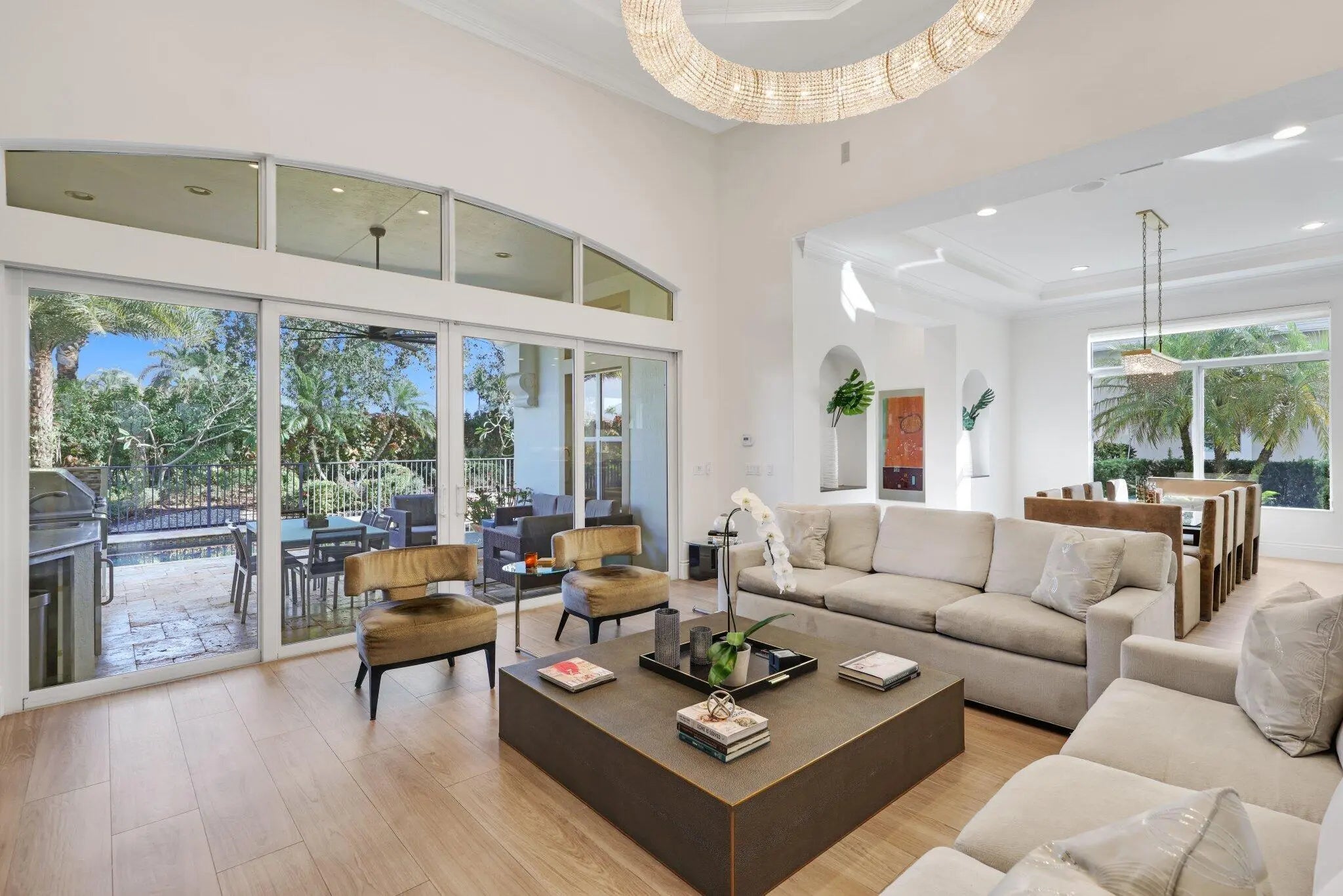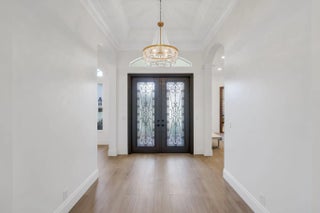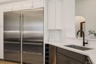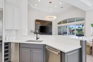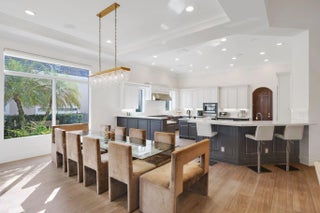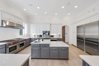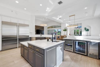 Situated within the gated enclave of Azura, 17334 Pavaroso Street delivers refined design, thoughtful upgrades, and resort-style living in one exceptional residence. Spanning over 5,200 square feet, this five-bedroom estate offers a bright, open layout highlighted by custom finishes, statement lighting, and elegant porcelain flooring throughout the main level as well as a beautifully designed chef's kitchen that anchors the home with both style and performance. Recently redesigned, it showcases contrasting custom cabinetry, a multi-level island encapsulated with sleek Bianco quartz surfaces which offers generous prep and seating space. The appliance collection is truly top-tier, highlighted by a 60'' Wolf gas range with six burners, a 24'' griddle, double ovens, and a custom hood.