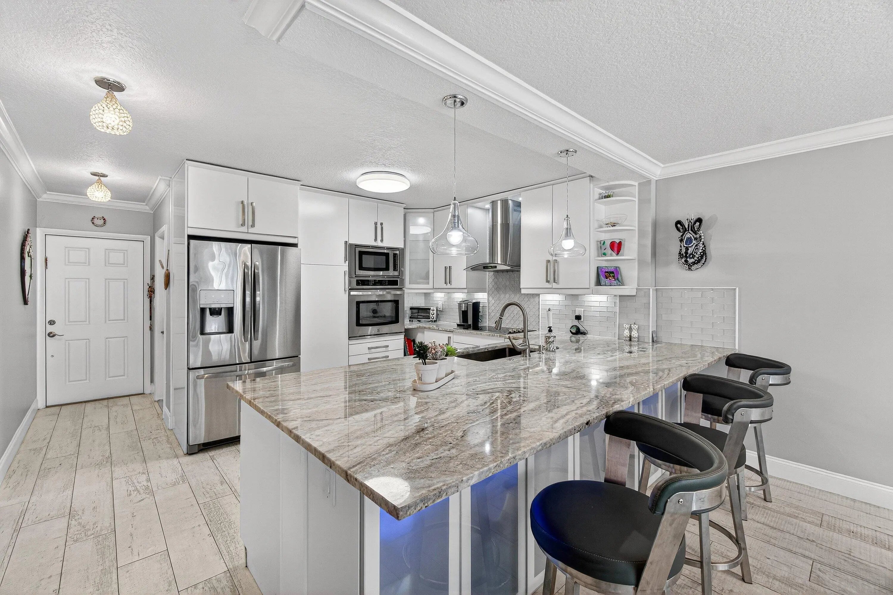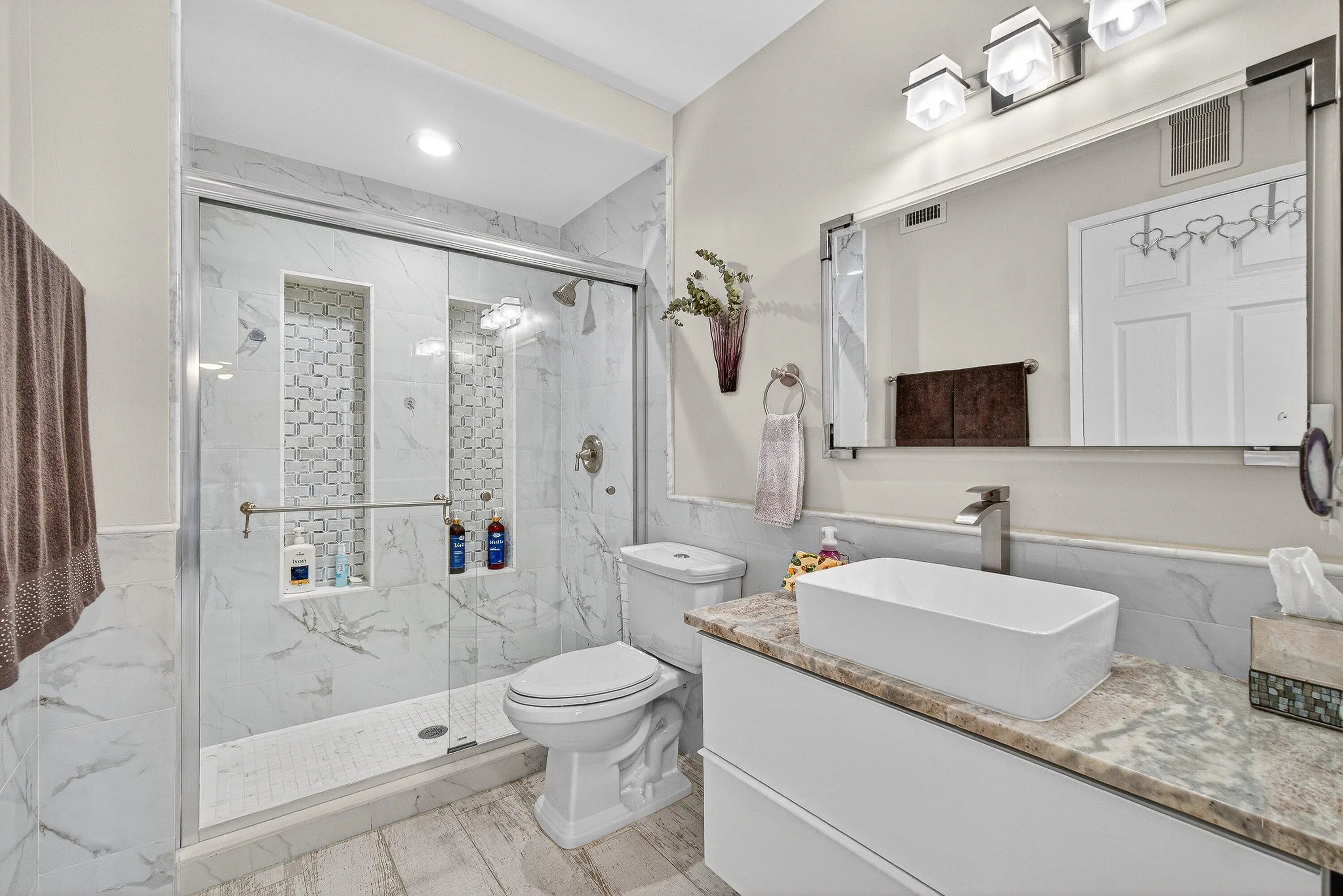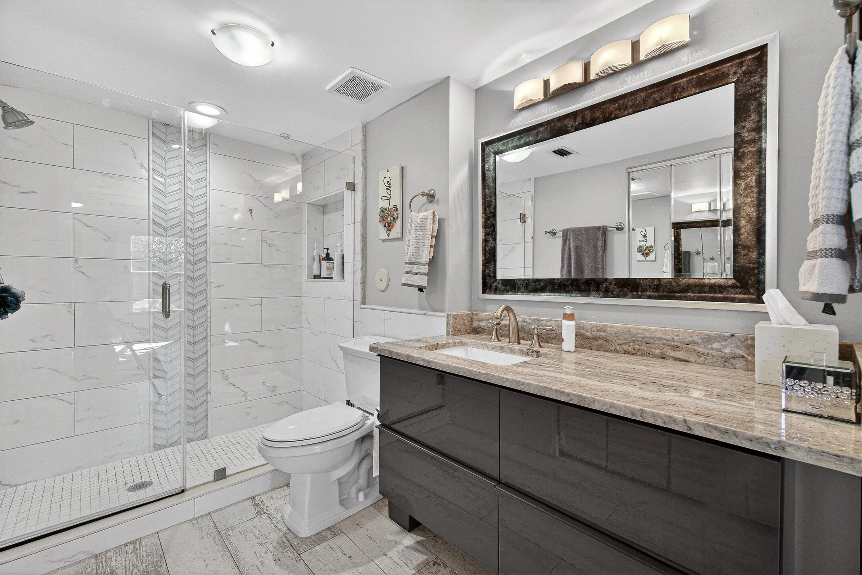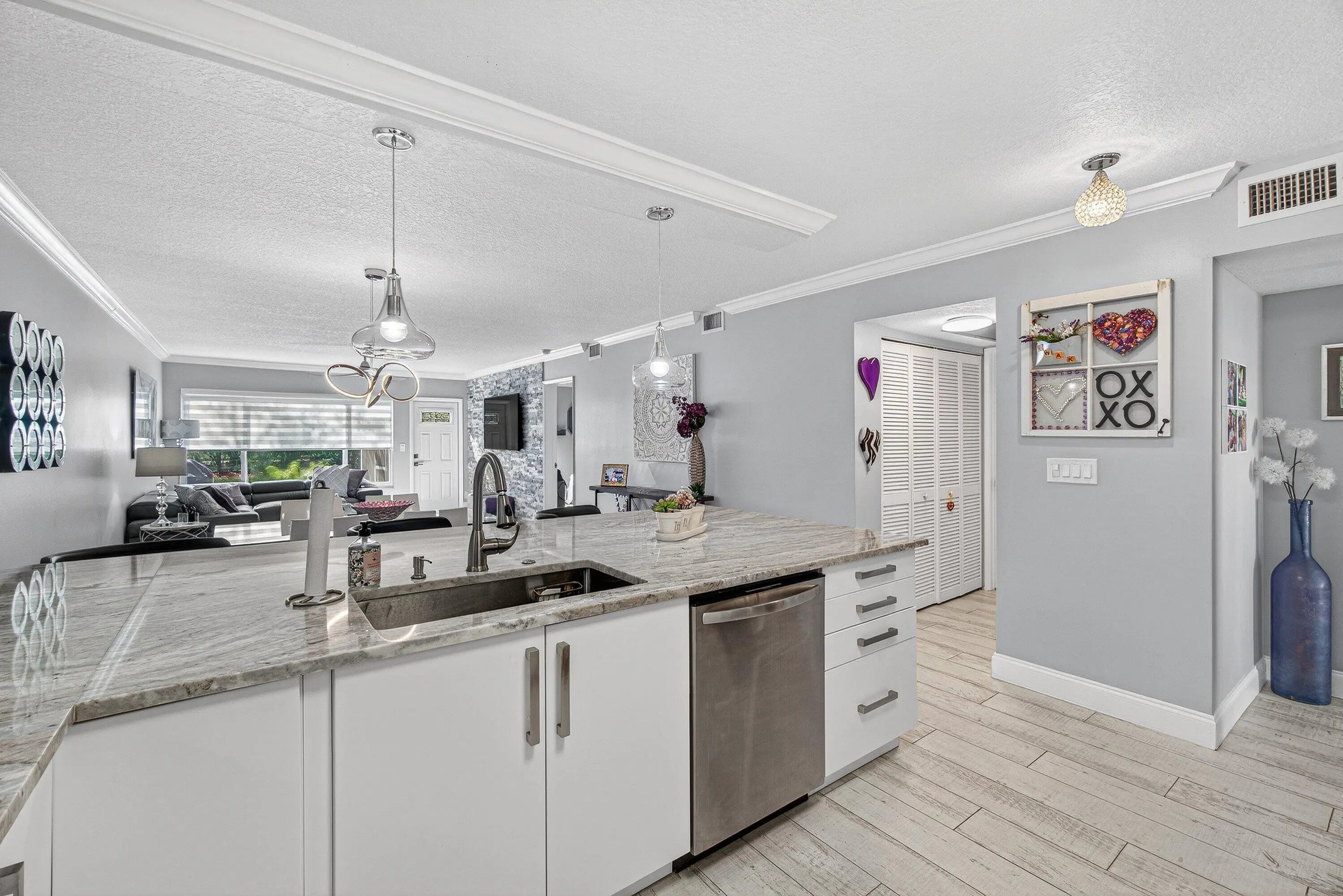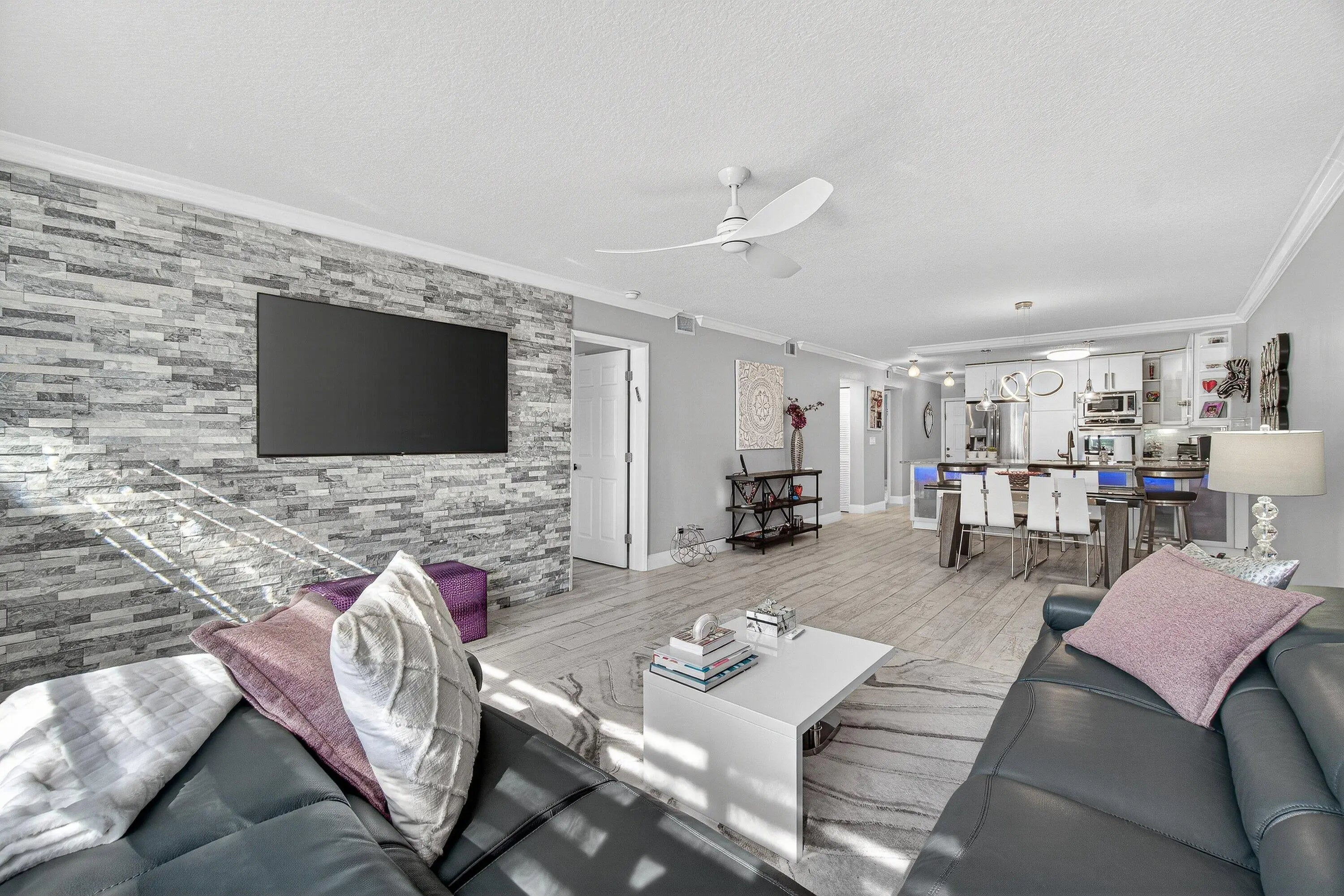 Recently renovated 2/2/1 end unit Villa embodies the best of clean, modern living. Step inside this spacious home in Town Villas and immediately feel the warmth of abundant natural light streaming through brand-new hurricane-impact windows--offering both style and peace of mind. Open-concept living area flows effortlessly into a chef-inspired kitchen, where cooking becomes a pleasure with newer appliances, sleek countertops, and contemporary cabinetry designed to impress. Both bedrooms serve as serene retreats, complemented by beautifully renovated bathrooms with modern finishes throughout.Screened-in terrace and a one car garage with EV charger complete the property. Just a short walk away, resort-style living at its finest with clubhouse amenities...