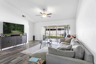 Nestled on a quiet street, this turnkey CBS townhouse has been thoughtfully updated with everyday comfort in mind. The open-concept layout features vaulted ceilings and clear sightlines from the kitchen, creating an airy sense of space throughout. The screened-in entryway and covered patio invite the gentle cross-breeze, while extending the home's usable square footage for entertaining and everyday enjoyment. New impact windows provide added comfort, and protection for peace of mind. Extra added-value: split floor plan, spacious primary suite with walk-in closet, new water heater and washer, and new kitchen appliances. Located in the dog-friendly Indian Creek community, residents enjoy low HOA dues (lawn care, cable & common areas) and a prime location - close to everything including