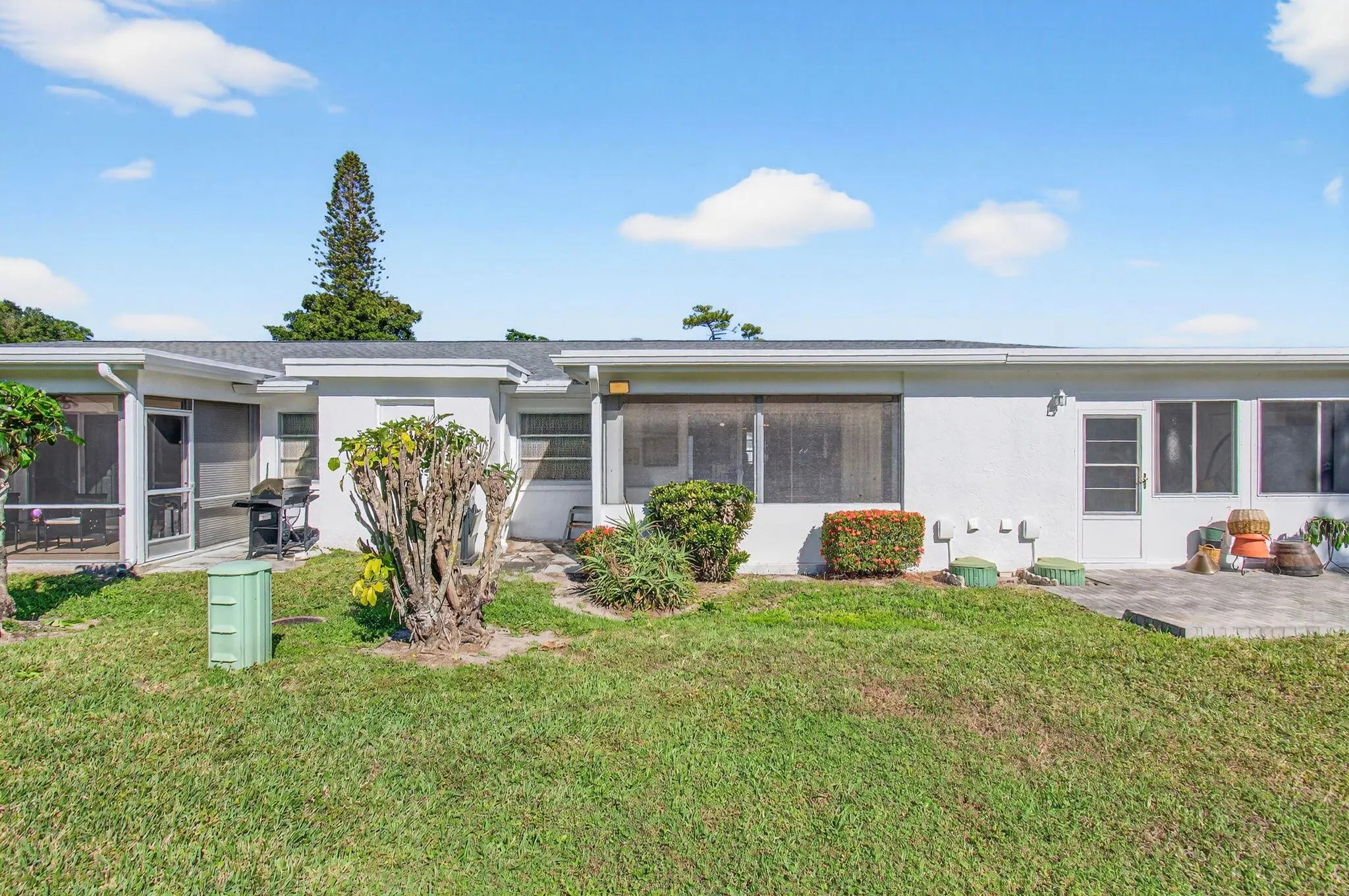 Welcome to this beautiful fully furnished 2-bedroom, 2-bath condo offering approximately 1050 square feet of comfortable living space,plus a covered patio overlooking a private,peaceful backyard--perfect for relaxing or entertaining.This inviting home features a washer and dryer inside the unit,a functional layout, and a wonderful sense of privacy rarely found.Enjoy the convenience of grills allowed, making outdoor gatherings easy and enjoyable.Bridgeview is a vibrant 55+ villa community offering fantastic amenities including a clubhouse,tennis,pickleball,and shuffleboard.The low-maintenance lifestyle includes roof coverage,water, building insurance,and lawn care--giving you more time to enjoy South Florida living.Whether you're seeking a full-time residence or a seasonal retreat this is it