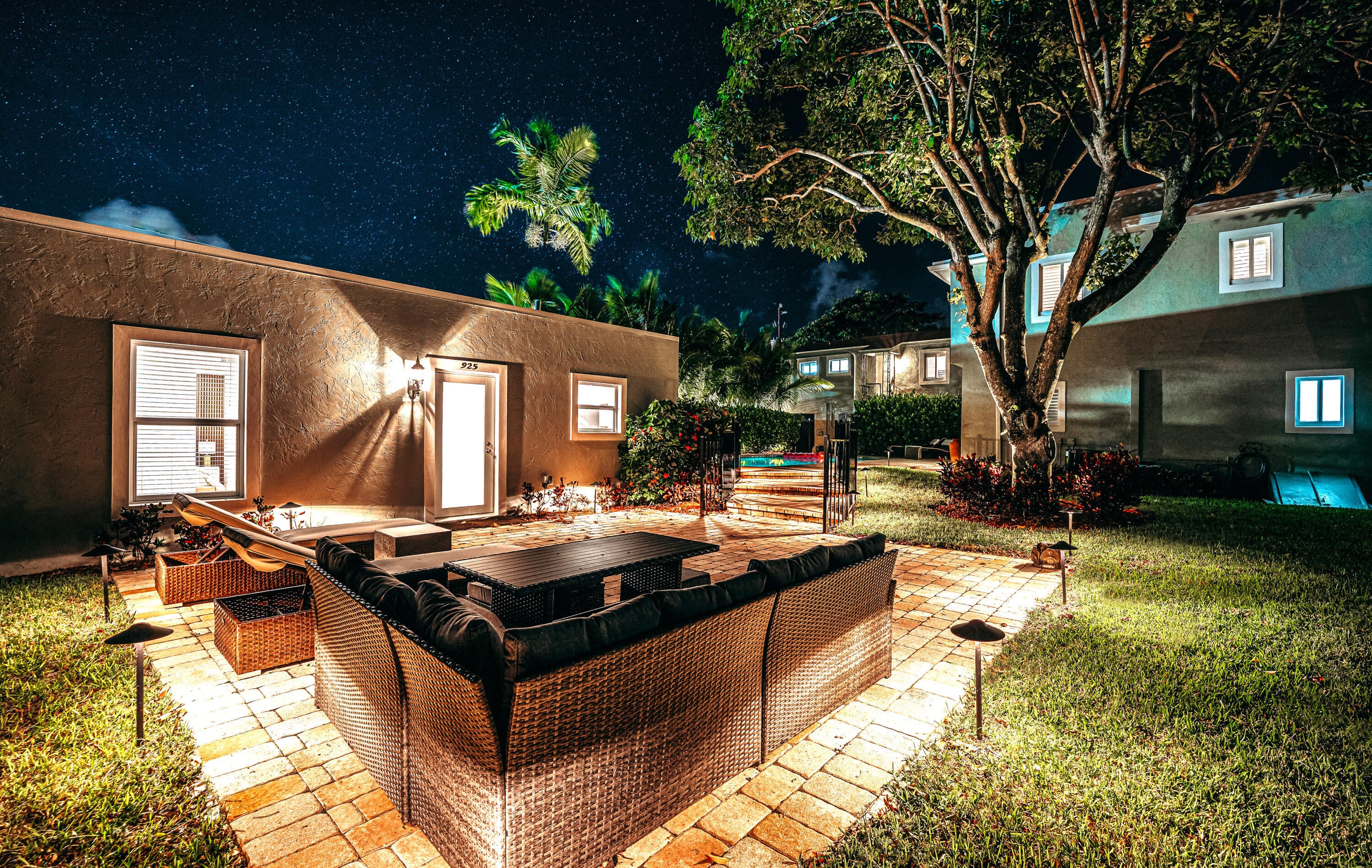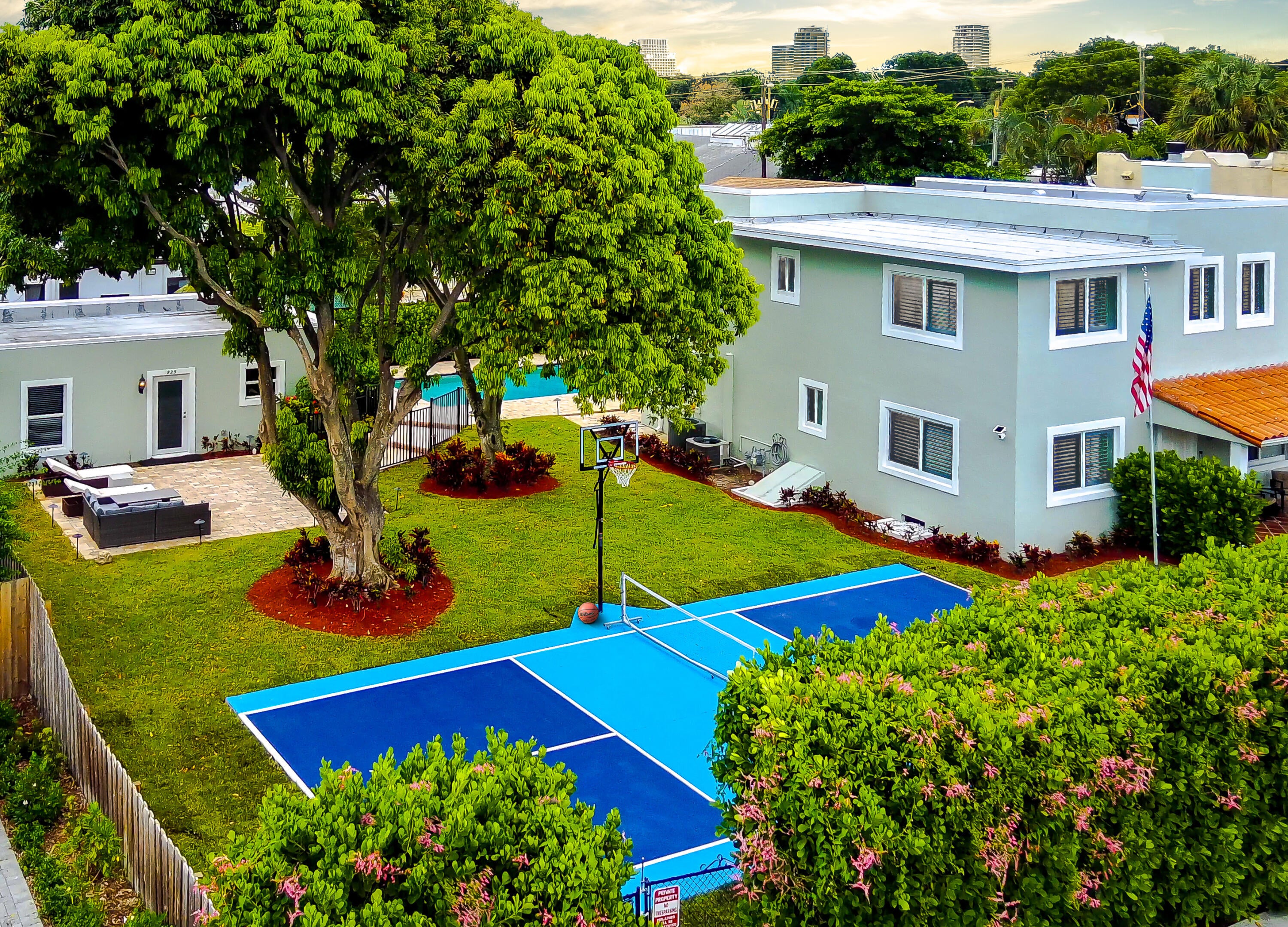 Exceptional 8-bedroom, 5-bath compound on a rare double lot featuring a resort-style pool and private pickleball court. Extensively renovated with a 2022 roof, hurricane impact windows, updated electrical and plumbing, spa, pool heater, new flooring throughout, and fully renovated kitchens and bathrooms. The property offers 3,048 square feet of interior living space with an additional 800 square feet of covered space, including a two-car garage. Three separate living spaces include a 5-bedroom main residence with a new gourmet kitchen and quartz waterfall countertops, an upstairs 1-bedroom/1-bath apartment, and a brand-new 2-bedroom/1-bath pool house. Spacious, light-filled rooms and central air in each building provide modern comfort, with multiple washer and dryer setups.Currently a top-producing short-term rental with stellar reviews, generating nearly $275,000 in its first year of operation. Impeccably located within five minutes of downtown West Palm Beach, this versatile compound is ideal as a private family estate, income-producing investment, or both. Offered fully furnished and completely turnkey- future bookings transferrable!
