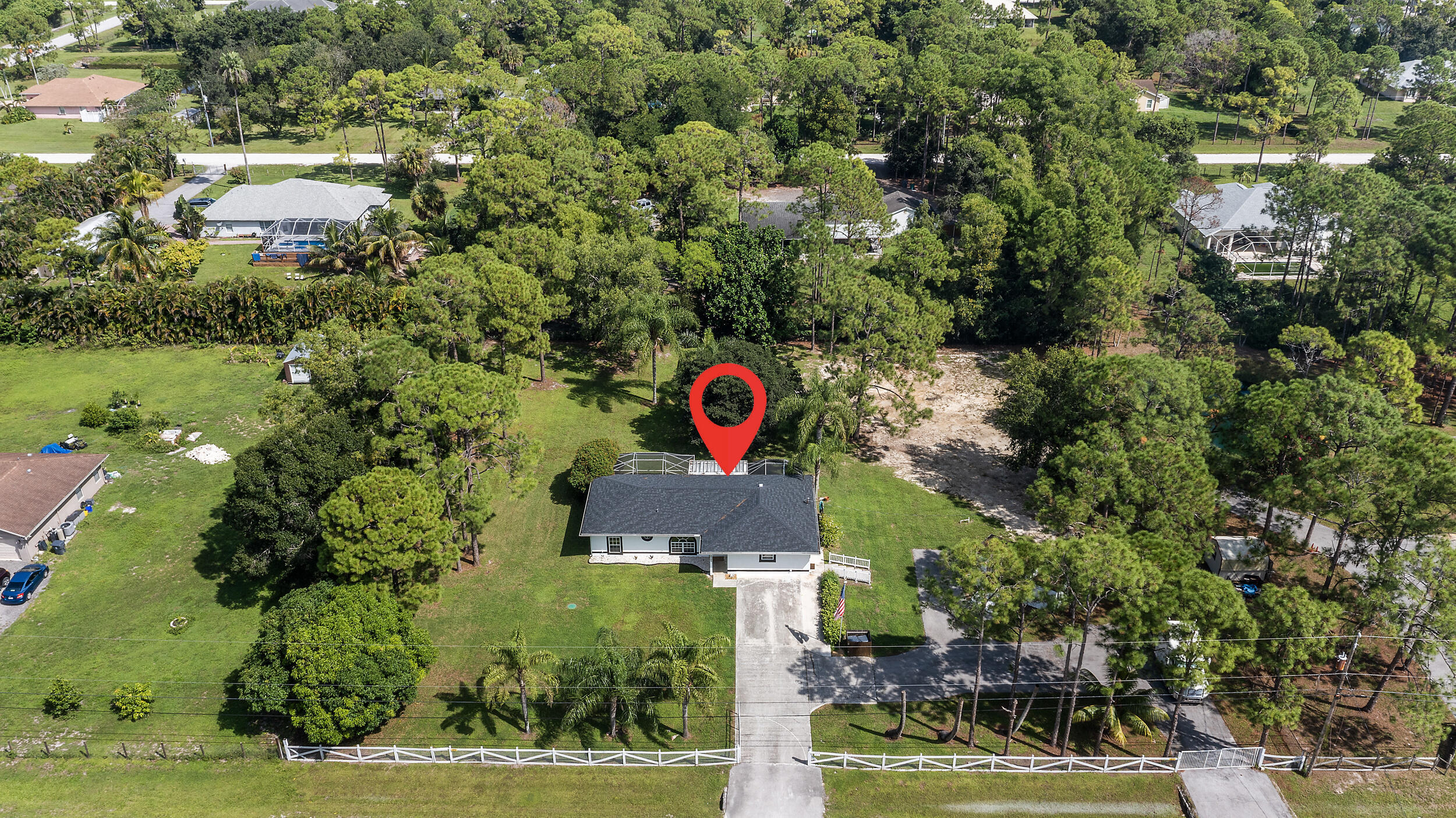 Move in ready 3 bedroom, 2 bathroom home on 1.15 acres in The Acreage! Completely remodeled in the last year with nearly everything brand new. Updates include: roof, gutters, A/C, tankless water heater, whole home water filtration (Dec 2024), fresh exterior and interior paint, new flooring, baseboards, bedroom & closet doors, ceiling fans, blinds, and outlets (2025). Both bathrooms and the kitchen were fully renovated with new finishes and appliances (2025), plus a new washer and dryer (2024). Enjoy a screened in back patio for sunsets, two attics for extra storage, and a detached shed. The property is fully fenced with two gated entrances perfect for RVs, boats, or trailers. Truly one of a kind and ready to move in!