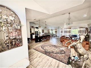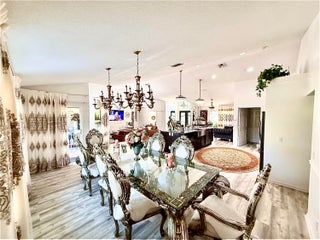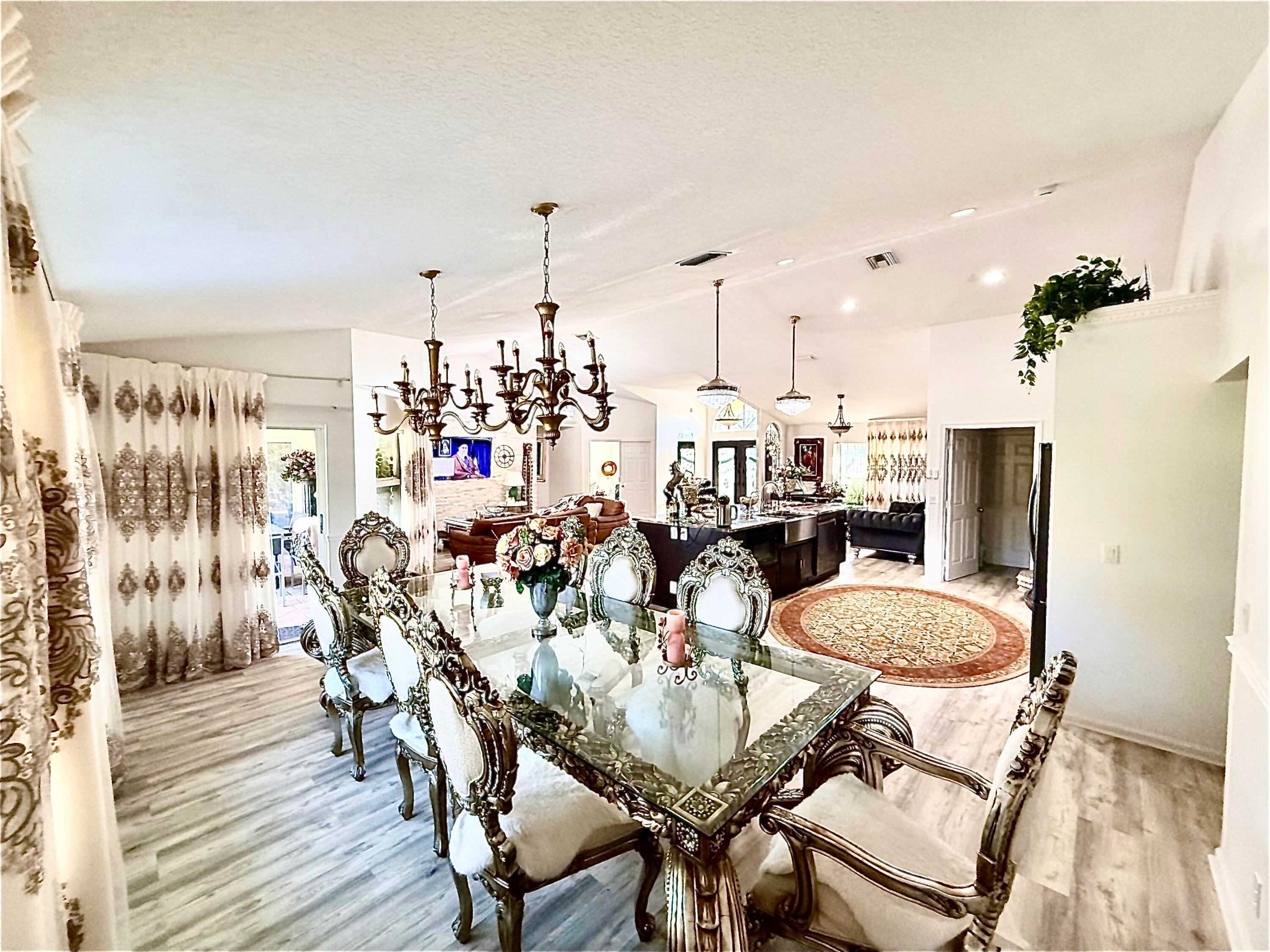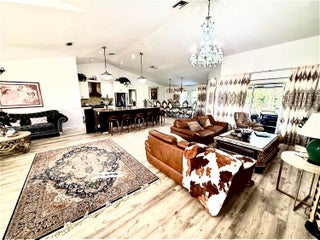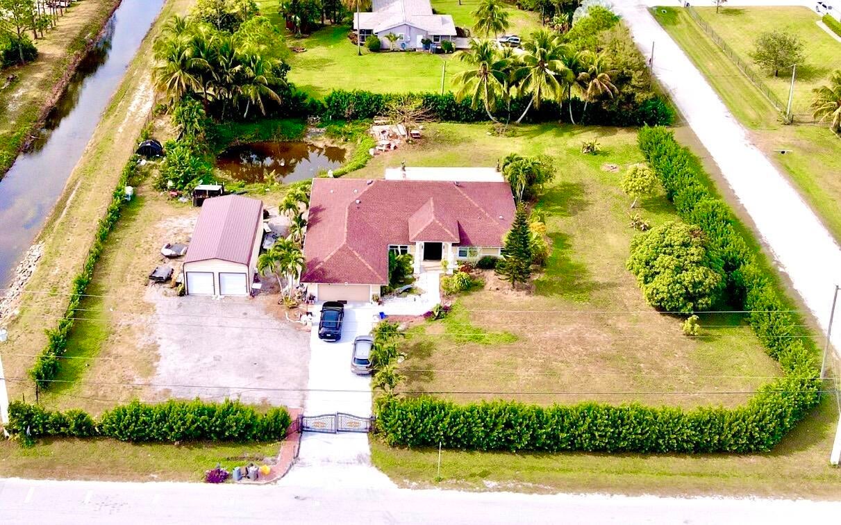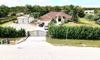 Stunning 5-bedroom, 2-bath CBS home with a 2-car garage, built in 2002 and situated on over 1.54 acres of private, fully fenced land. This well-maintained property features a hurricane-impact front door, impact windows, and four sliding glass doors.ROOF RENEW 1/6/2026 BEAUIFUL 20X40 SHED (800 SF) ON SIDE THE HOUSE.The home offers a new A/C (2021), remodeled bathrooms, and a beautifully updated kitchen with a 10-foot island and natural marble countertops. Luxury vinyl flooring enhances the living room and kitchen AND OTHER BEDROOMS, while the master bedroom features tile flooring Enjoy outdoor entertaining on the impressive 1,500 sq ft paved patio, perfect for gatherings and events. The property is surrounded by lush Clusia landscaping for privacy and includes three gated Entra
