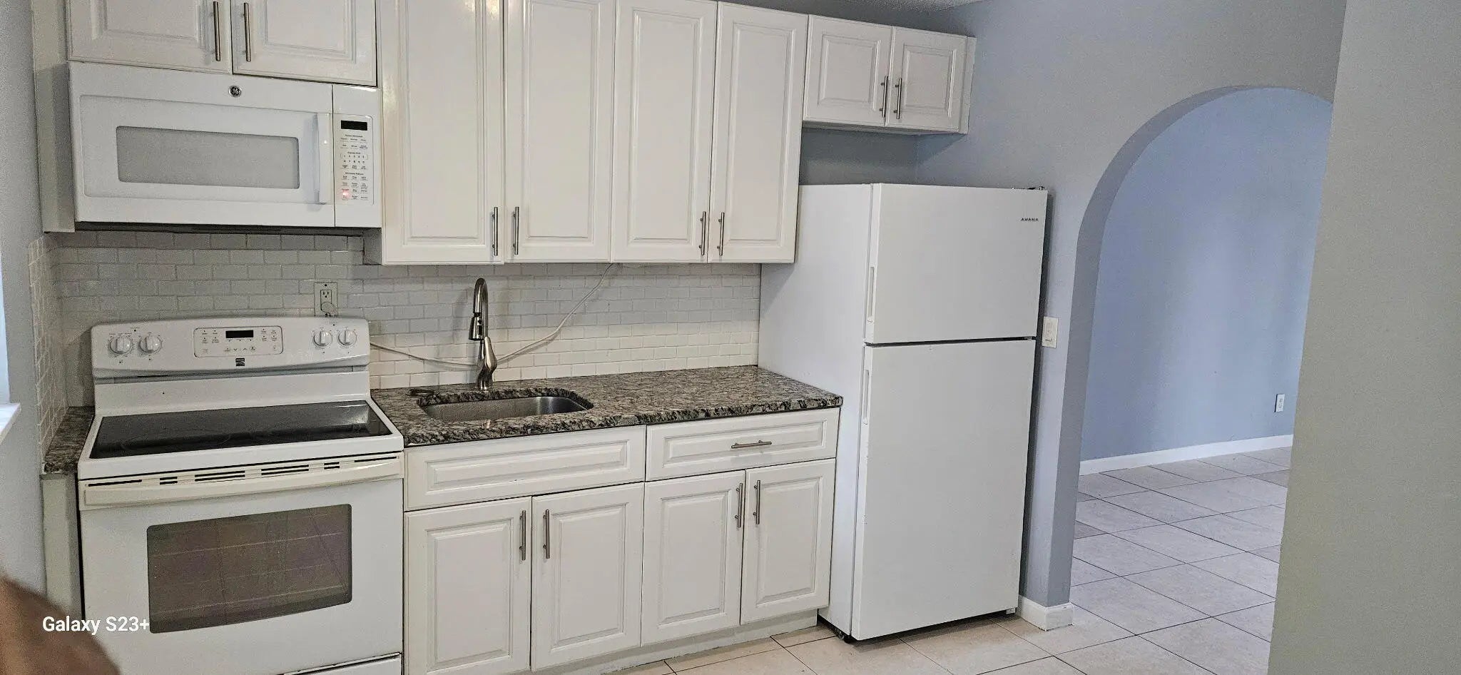 2/1 freshly painted with large bedroom sizes tiled throughout .granite countertops washer and dryer included ..fully fenced property with additional storage .