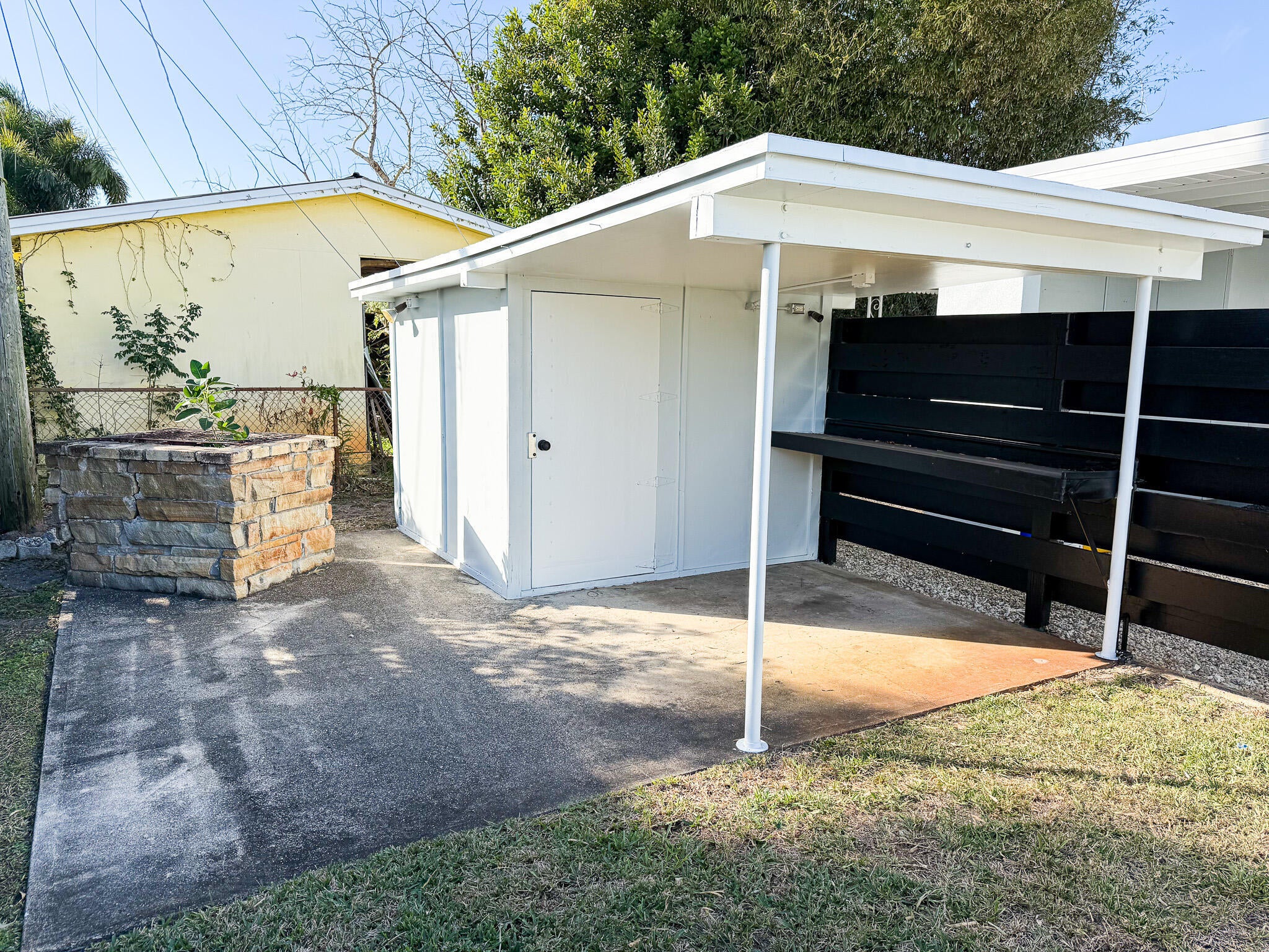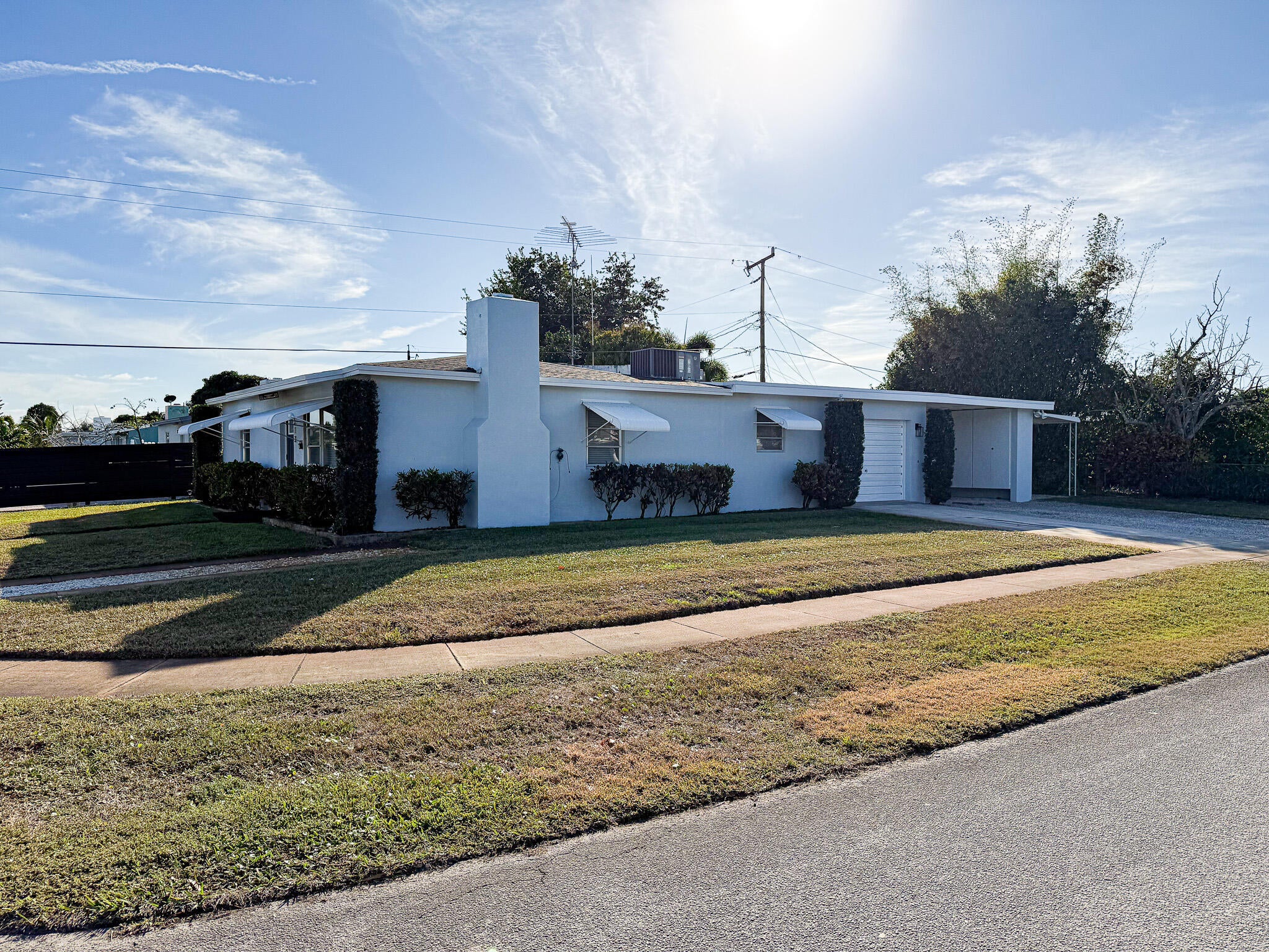 Welcome to this beautifully renovated 3-bedroom, 1-bath home situated on a desirable corner lot in a centrally located neighborhood. This unique property features a large, spacious garage plus an additional covered area for storing a boat, RV, or extra vehicles. The backyard also includes a shed to accommodate all of your storage needs. The new roof was just installed in 2025 for peace of mind for years to come. Inside, the home has been fully updated with porcelain wood-look tile throughout, offering easy maintenance and providing a fresh, clean look. The cozy living room featuring a gas fireplace connects seamlessly to the spacious kitchen, equipped with brand-new GE appliances and quartz countertops. A room right off the kitchen offers a space perfect for a formal dining area or homeoffice. The central location offers easy access to shopping, dining, schools, I-95 and Florida's Turnpike, beaches, and the airport. This property is a rare find that combines functionality, style, and convenience, making it a must-see!