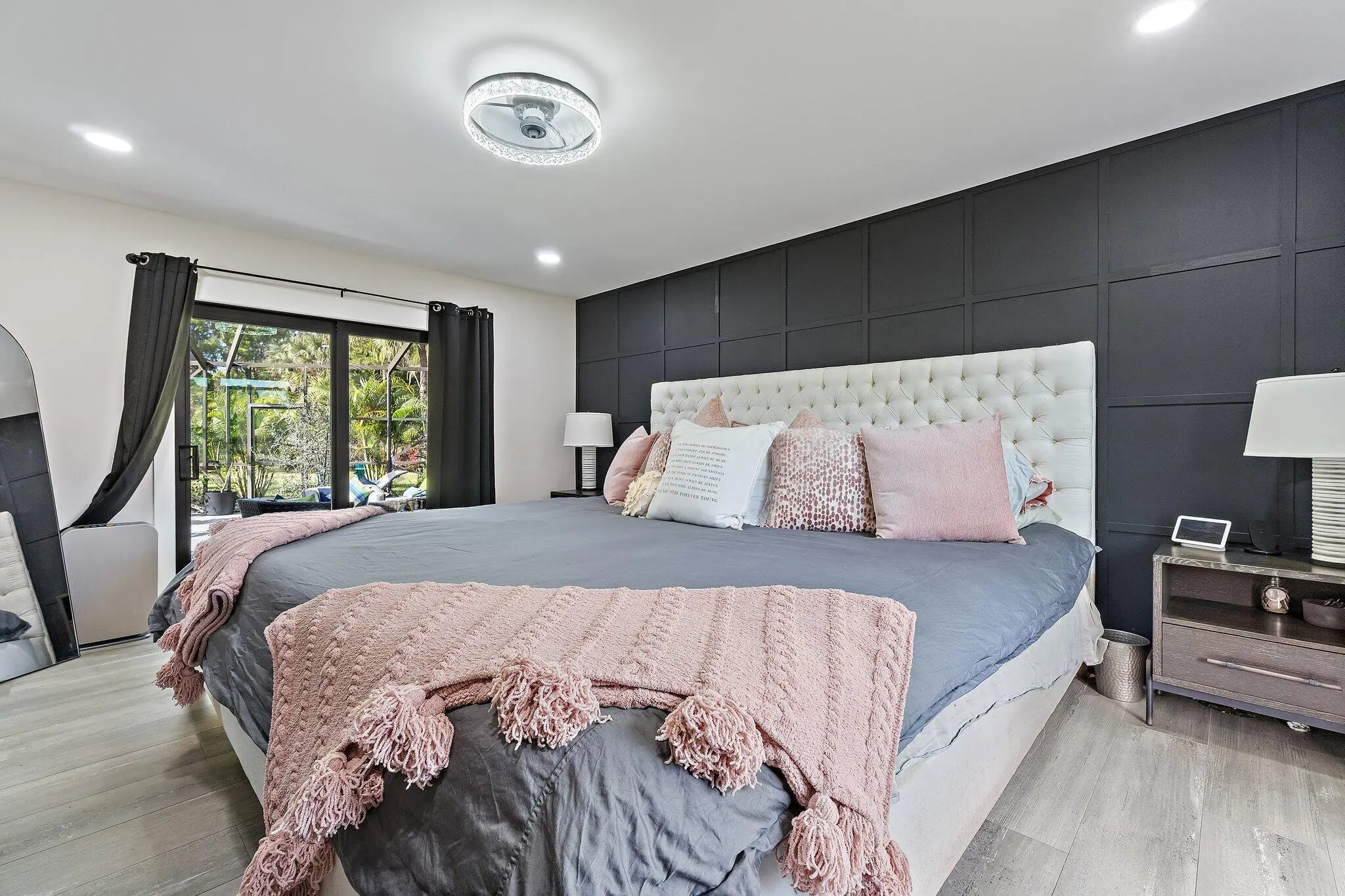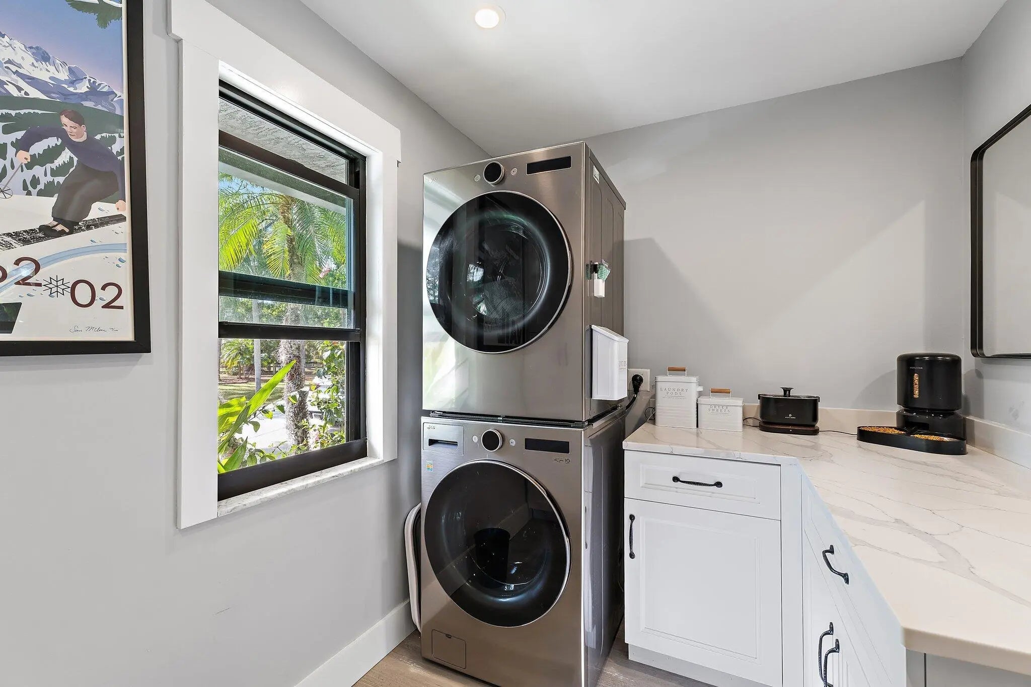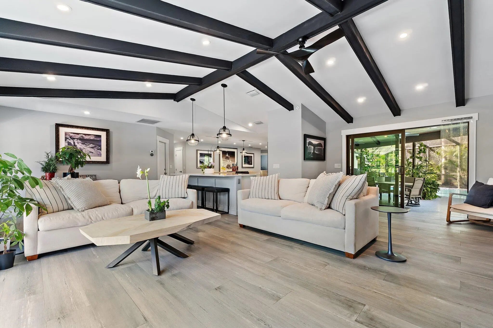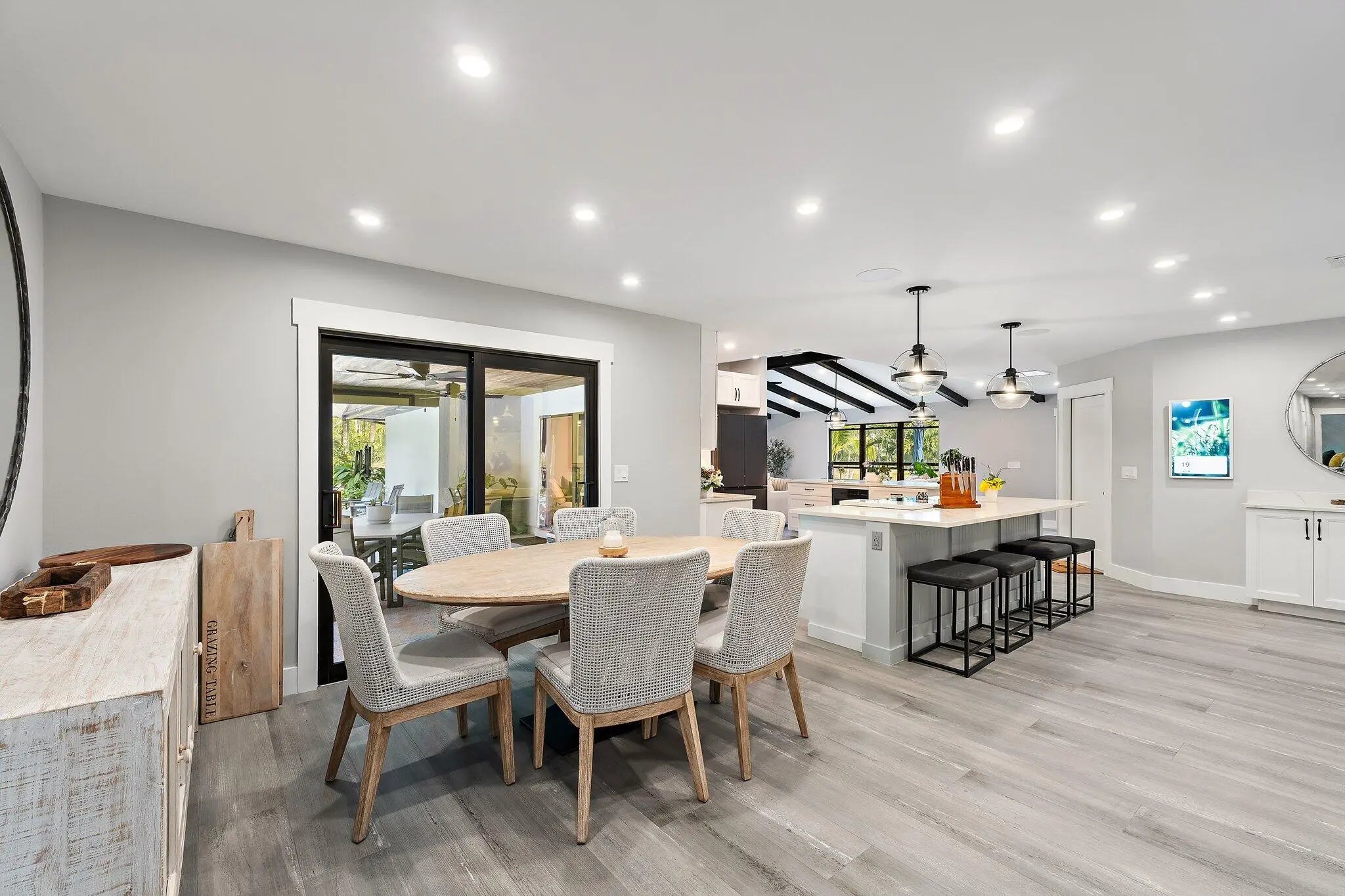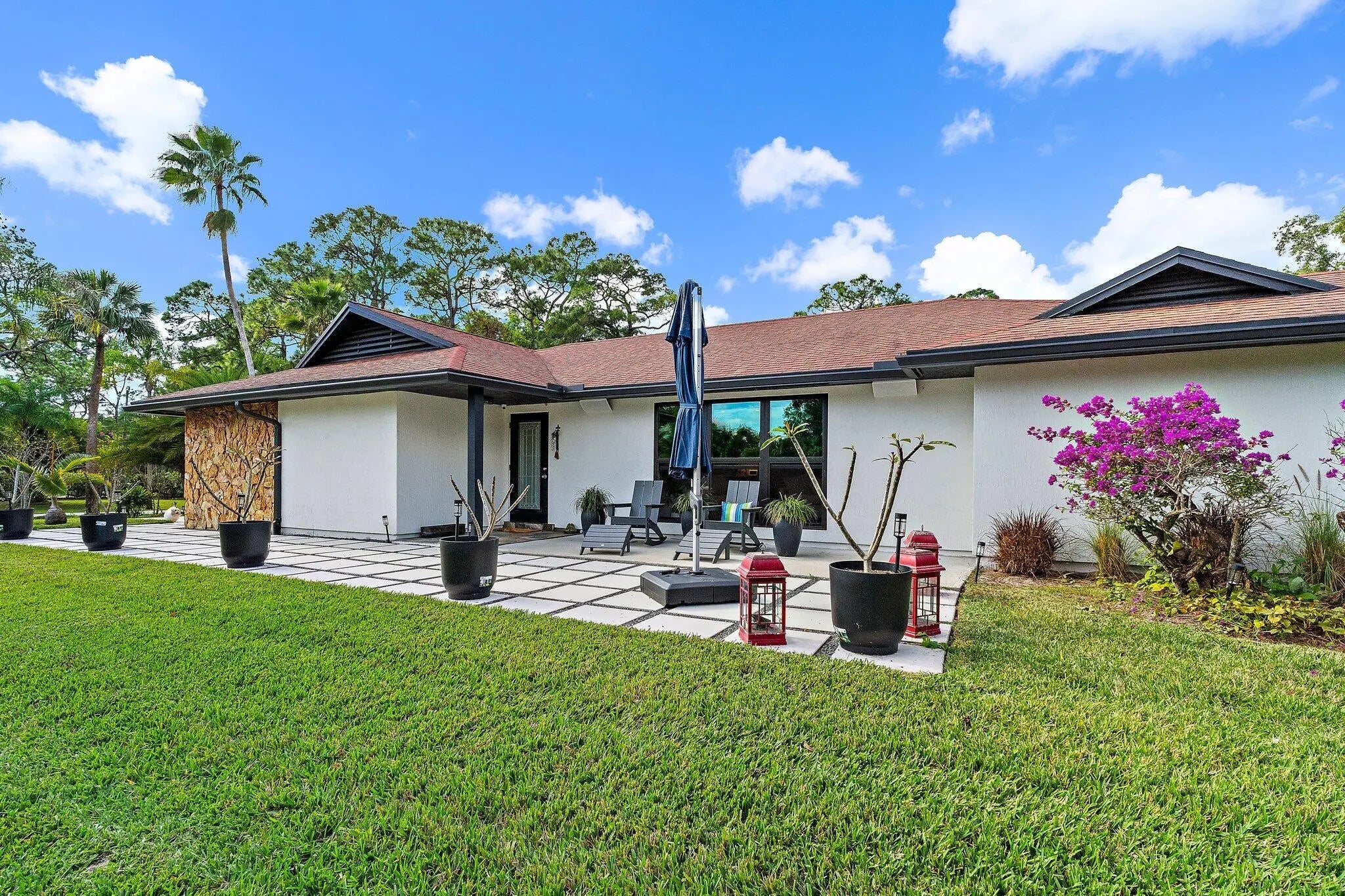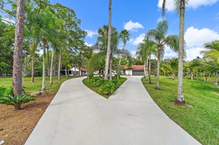 Set on a breathtaking 2.5-acre fully fenced parcel in Jupiter Farms, this completely gutted and exquisitely renovated 5-bedroom, 3-bathroom residence offers rare privacy, serenity, and refined indoor-outdoor living. Adjacent to a tranquil pond filled with fish, the property delivers a true private retreat surrounded by perfectly manicured grounds and lush tropical landscaping.The home has been thoughtfully redesigned from top to bottom using high-end finishes throughout. The dream kitchen features custom cabinetry, premium countertops, and a functional open layout ideal for entertaining and everyday living. The stunning primary bathroom is spa-inspired, offering a luxurious escape with elevated finishes and thoughtful design.