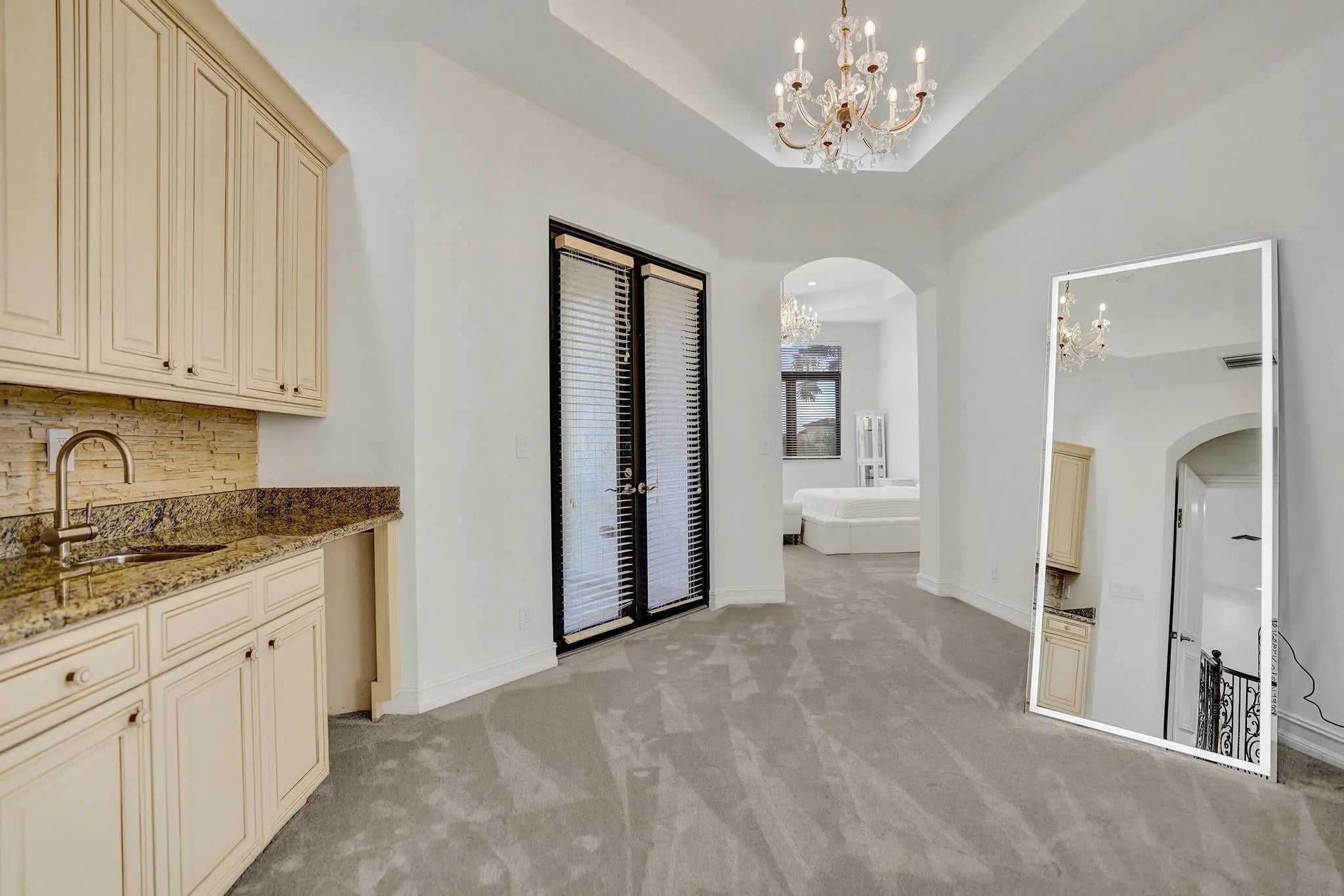 Bar, Built-in Shelves, Closet Cabinets, Custom Mirror, Foyer, French Door, Kitchen Island, Laundry Tub, Pantry, Split Bedroom, Upstairs Living Area, Volume Ceiling, Walk-in Closet, Wet Bar