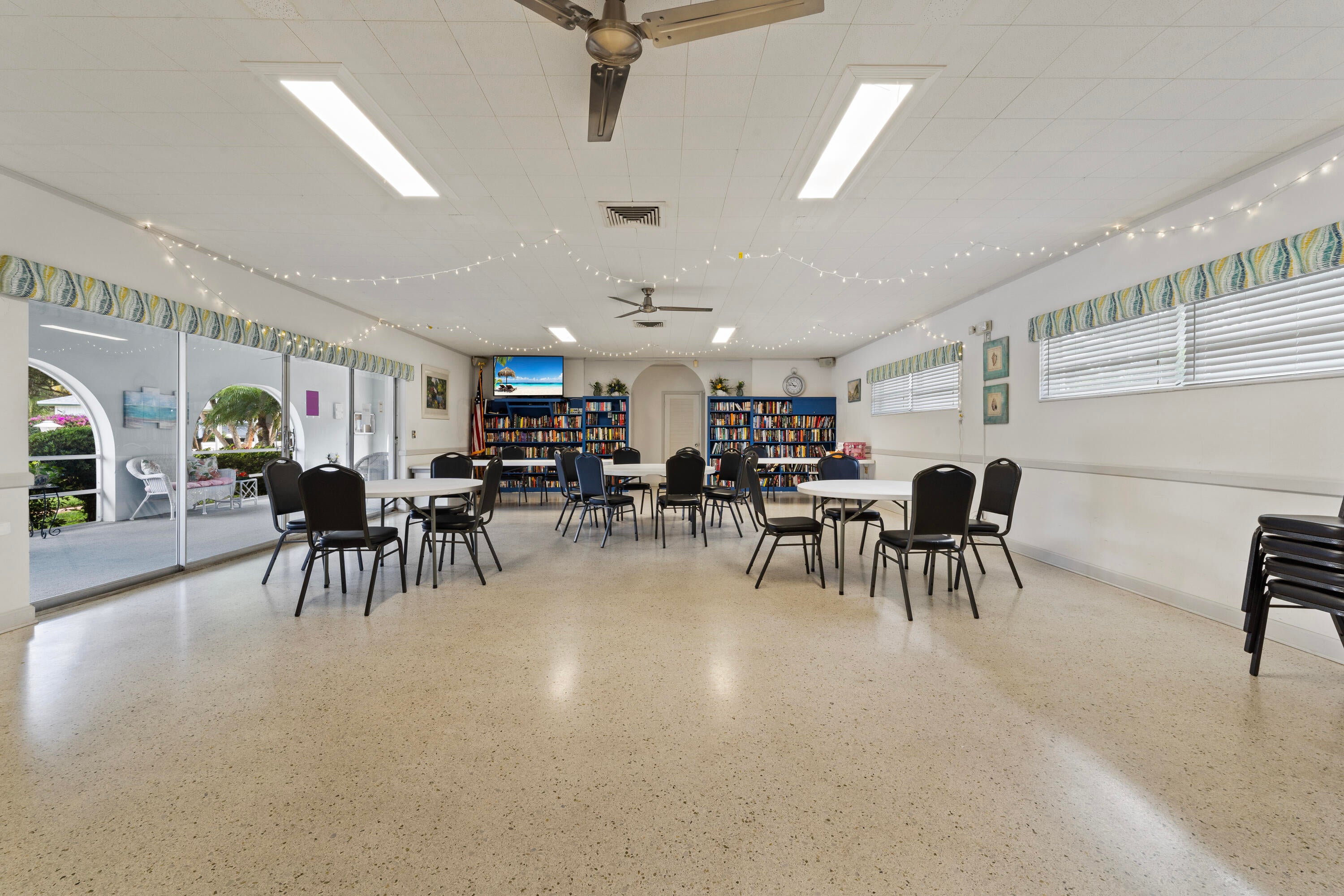 Well-maintained 2-bedroom, 2-bath first-floor condo located in a desirable 55+ community with a peaceful garden view. Features include ceramic tile throughout, four ceiling fans, crown molding in the living and dining areas, and plantation shutters for a classic touch. Enjoy a glass-enclosed patio room or open up for a fully screened room perfect for relaxing year-round. Recent upgrades include a new upgraded electrical panel, newer roof . Impact Windows and Accordion Shutters for added peace of mind .Community amenities offer two pools, shuffleboard, a putting green, clubhouse, library, and grill area. Laundry and storage room next door. Ideally situated within walking distance to excellent restaurants, shopping, and more. A wonderful opportunity for comfortable, low-maintenance living