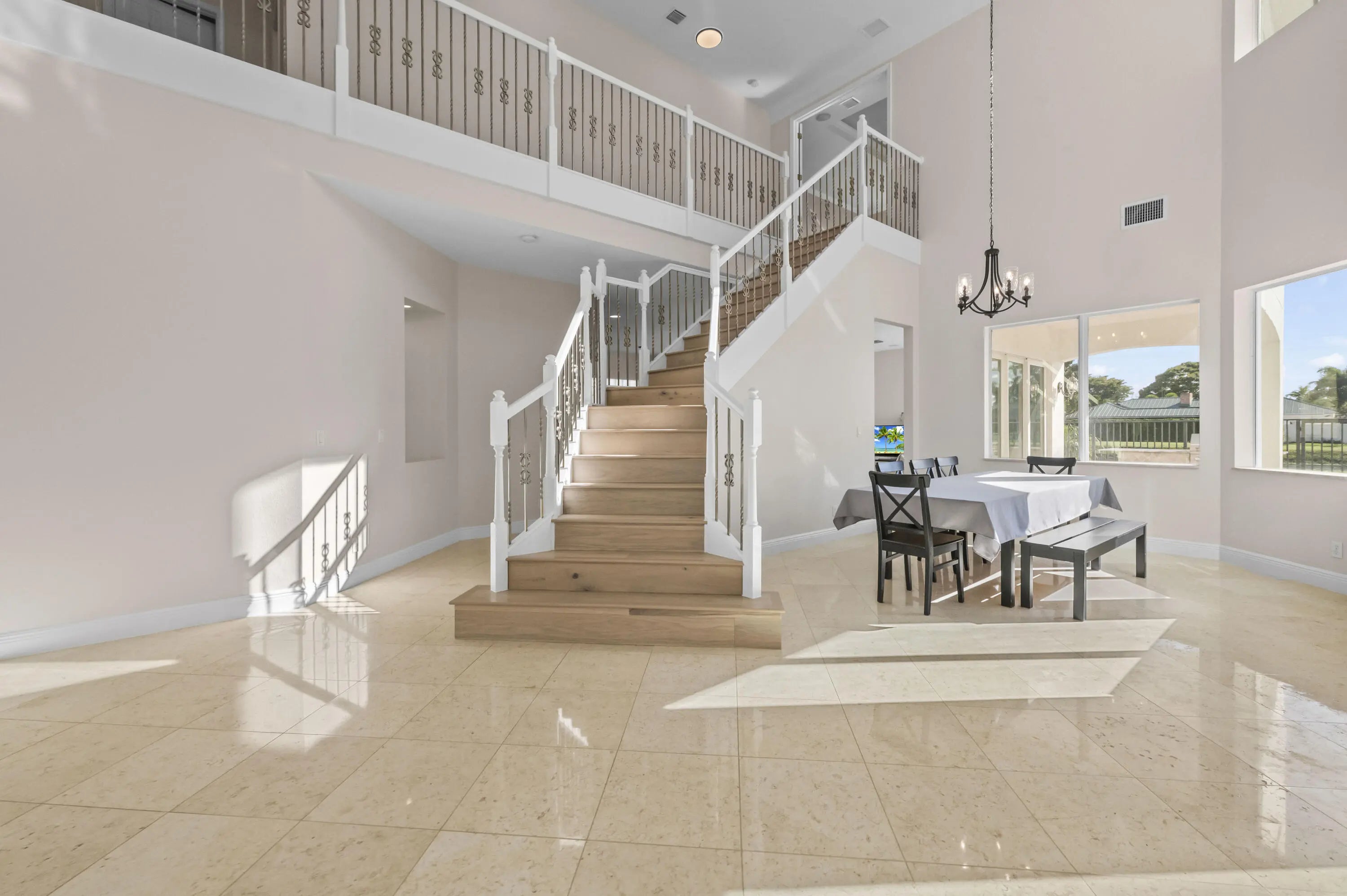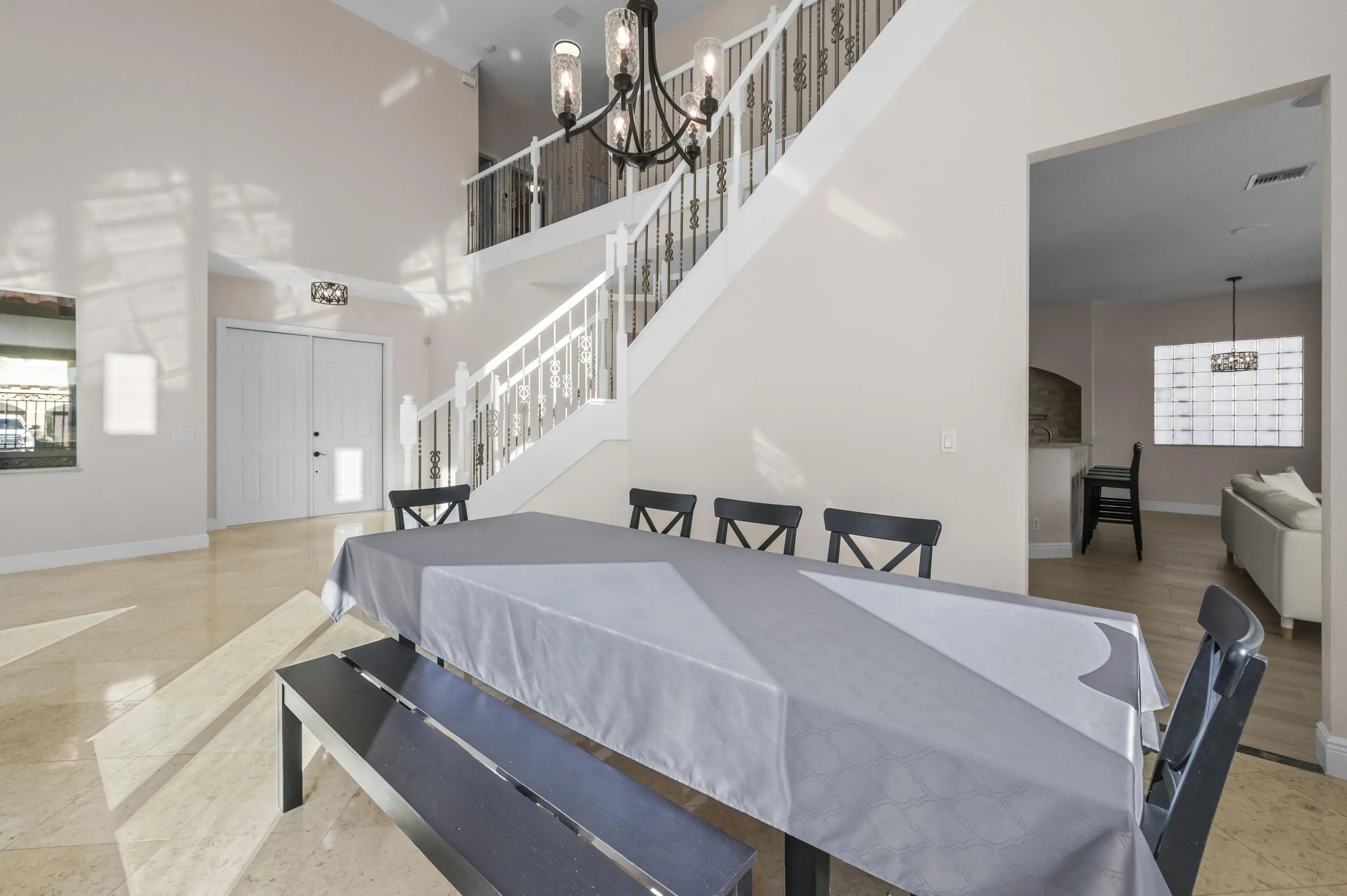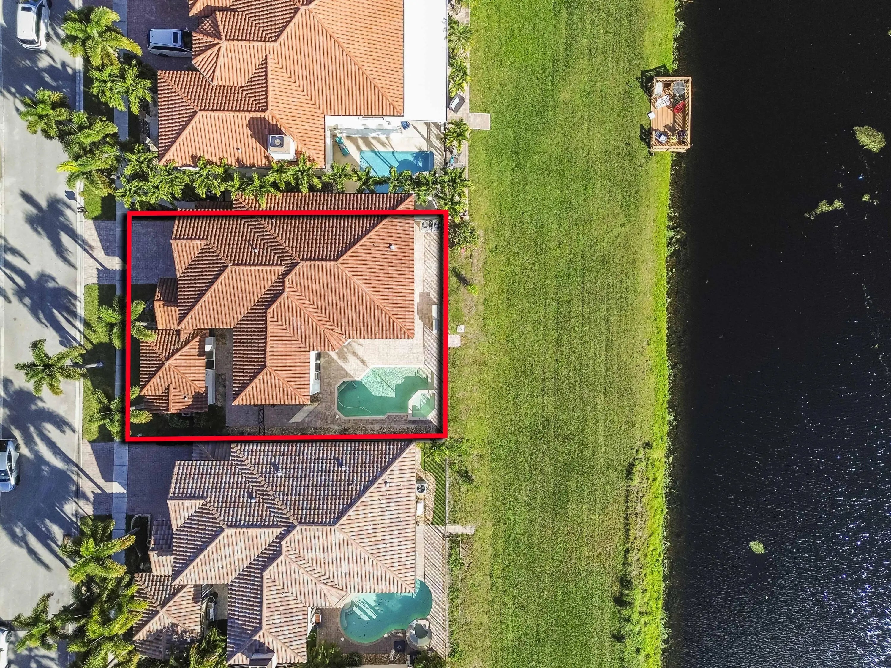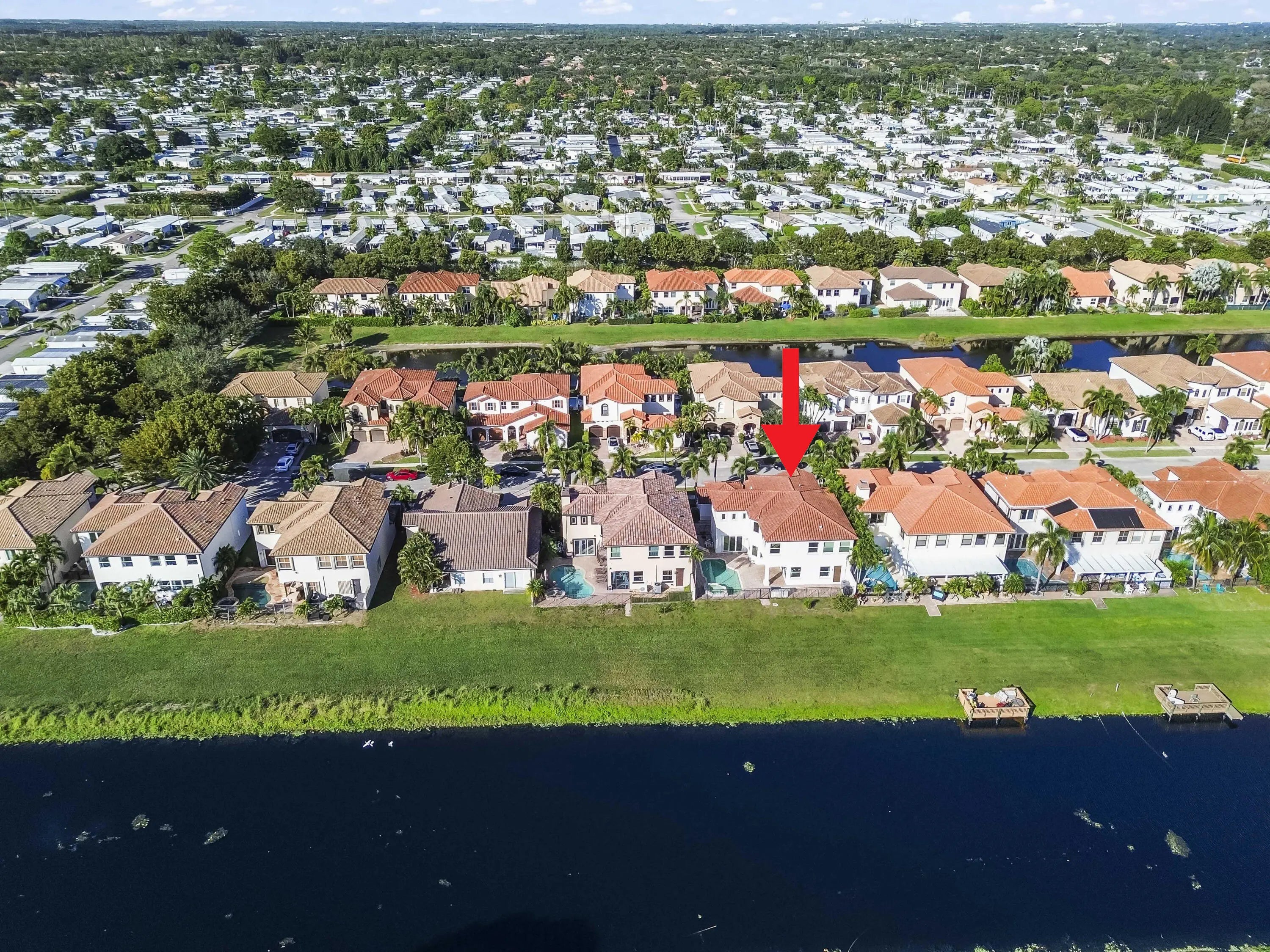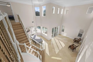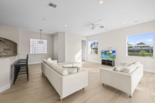 Welcome to your own private Mediterranean-inspired paradise, where grand architecture meets modern luxury on a serene waterfront lot. Separate 1-bedroom, 1-bathroom guest house. A paved courtyard entrance sets the stage for this magnificent residence, which welcomes you with a dramatic two-story foyer, a sweeping staircase, and soaring ceilings that bathe the open-concept living spaces in natural light. The heart of the home is the gourmet kitchen, boasting rich dark wood cabinetry, a massive granite center island, double wall ovens, a electric cooktop, and a new refrigerator. Whether hosting in the formal dining room or relaxing in the great room, the home is designed for both elegant entertaining and everyday comfort.