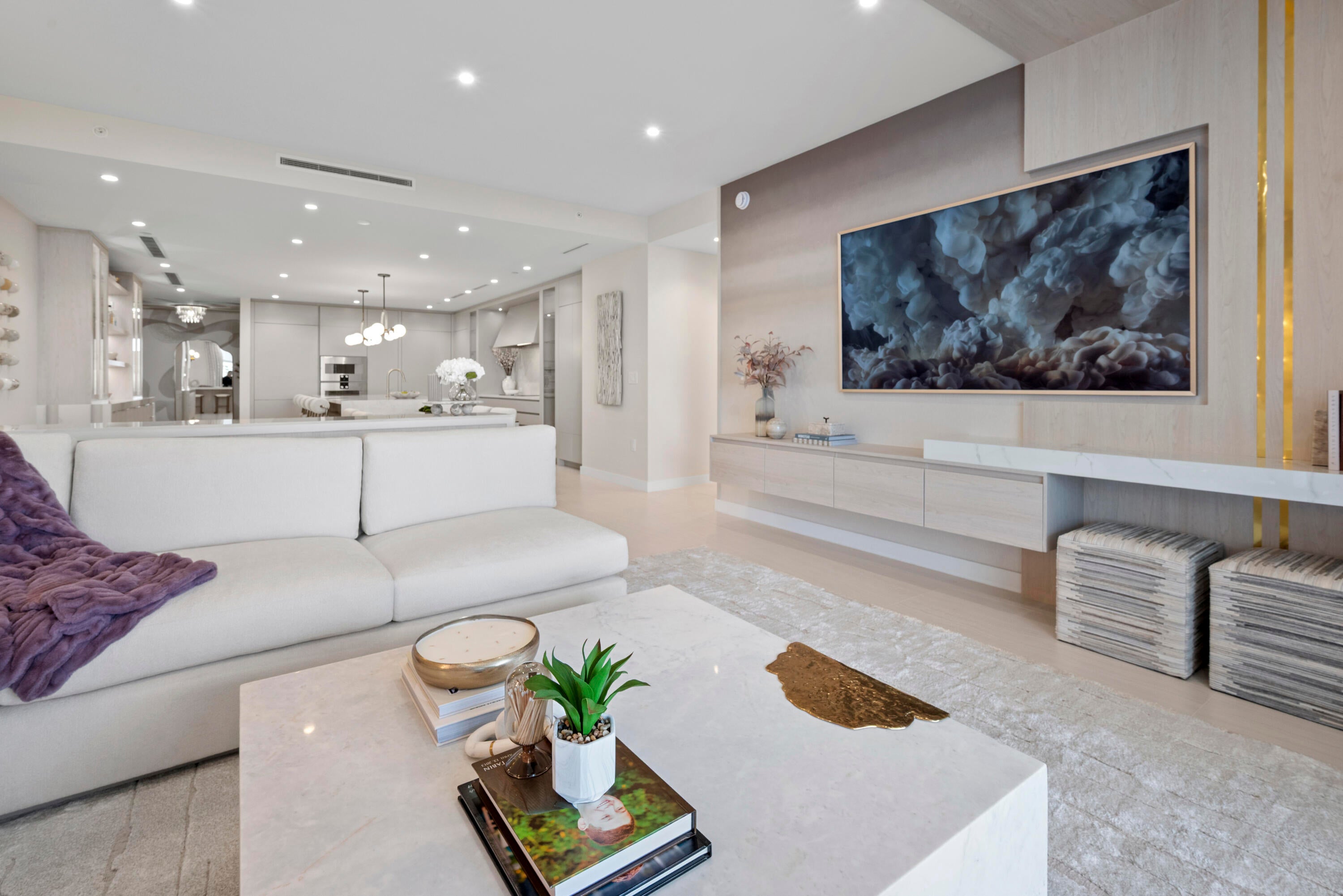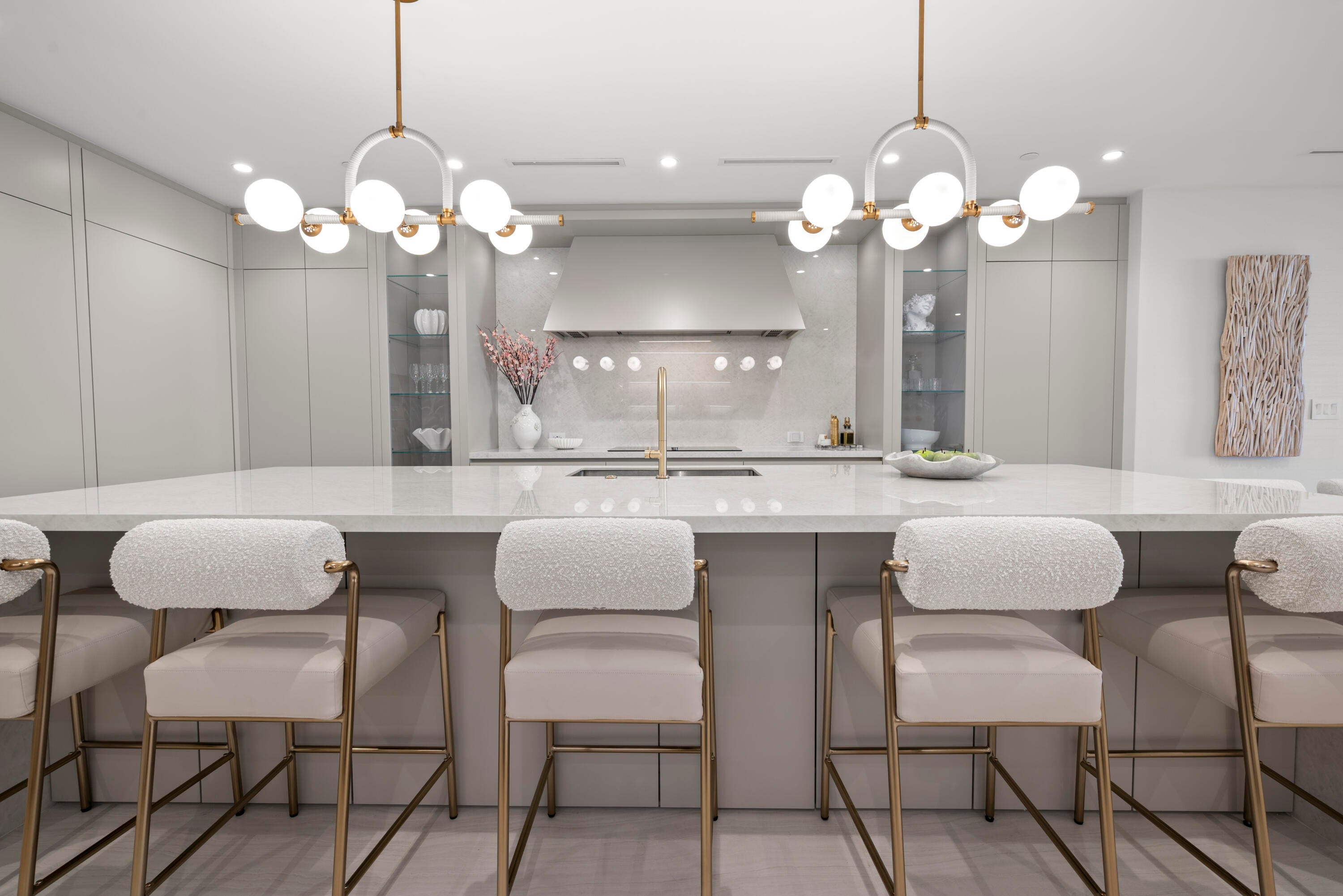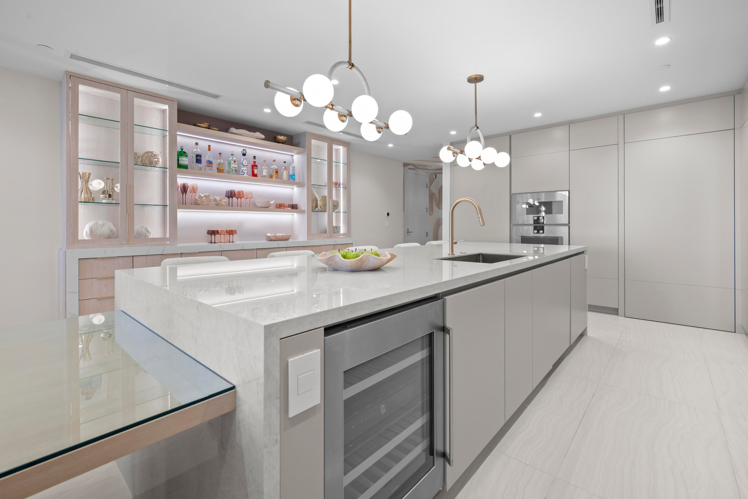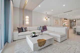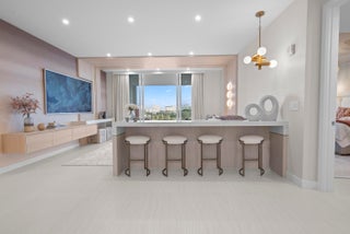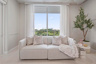 Introducing Residence 603 at Alina's premier new 220 Tower where the standard for sophistication is unmistakable. From the moment the elevator opens directly into your own private vestibule, the residence immediately sets itself apart. Exquisite, elegant and impeccable design is evident throughout, from the curated wallpaper and statement lighting to the bespoke built-ins, furnishings, window treatments and custom designed closets. This thoughtfully designed home in the sky offers two bedrooms, plus a den and three full bathrooms. The Scavolini chef's kitchen features a suite of Gaggenau appliances, quartz countertops and backsplash, an oversized waterfall edge island with an integrated custom dining table and a wine refrigerator seamlessly built into the island. A hidden pantry andlaundry room further enhance both form and function. Adjacent to the kitchen is a custom built bar with quartzite countertops, recessed lighting, and oak shelving perfect for display, entertaining, and additional storage. The chic and inviting living room is defined by a custom counter accommodating seating for four, complemented by a custom floating console with tailored millwork beneath the television and statement millwork detailing on the ceiling. Floor to ceiling sliding glass doors flood the space with natural light and open to the balcony which offers gorgeous views of the Alina grounds and the Boca Raton Golf Course. The primary suite is a spacious, calming oasis featuring a comfortable seating area and custom designed dressing area with boutique like shelving and displays. A spa like bathroom with dual vanities, a soaking tub and glass enclosed shower making this the perfect private retreat. A gracious guest suite with a private ensuite bath ensures comfort and privacy for visitors, while the versatile den/media room and an additional fully custom bathroom create an ideal setting for hosting, entertaining, or extended stays. Rounding out this residence is a spacious covered balcony, ideal for relaxing while overlooking the beautifully designed Alina grouds and The Boca Raton Golf Course. This unit comes with an assigned parking spot and one storage unit.