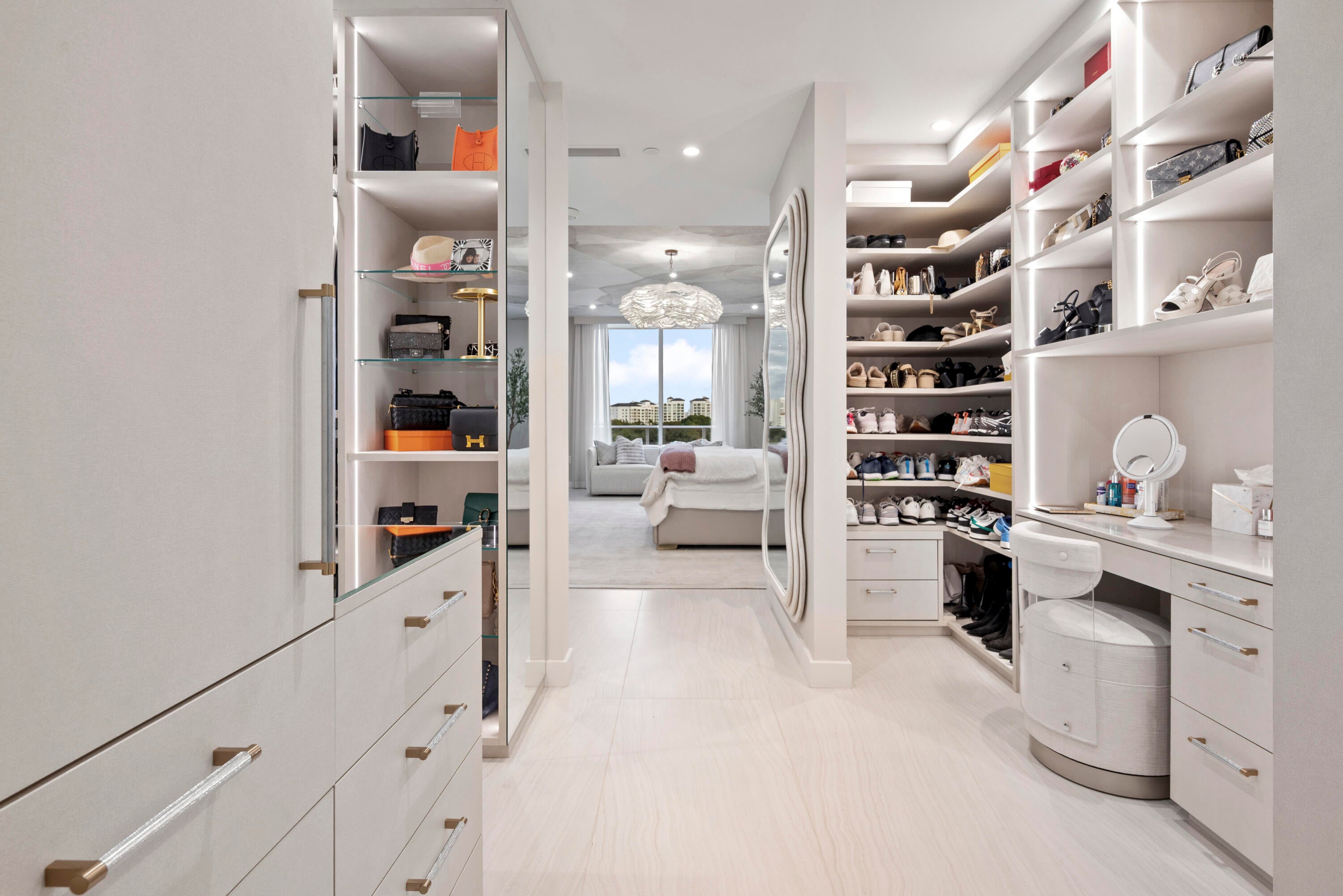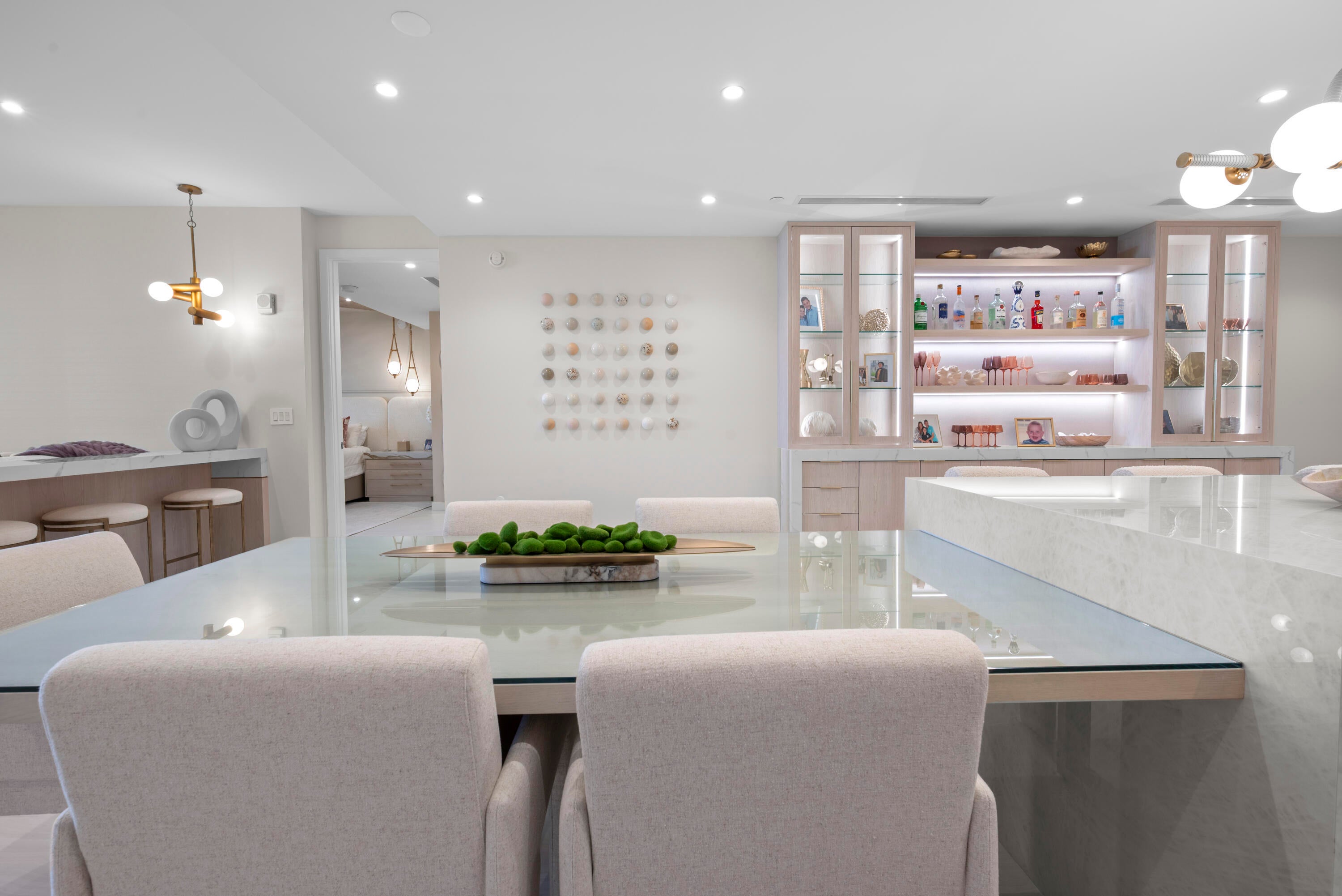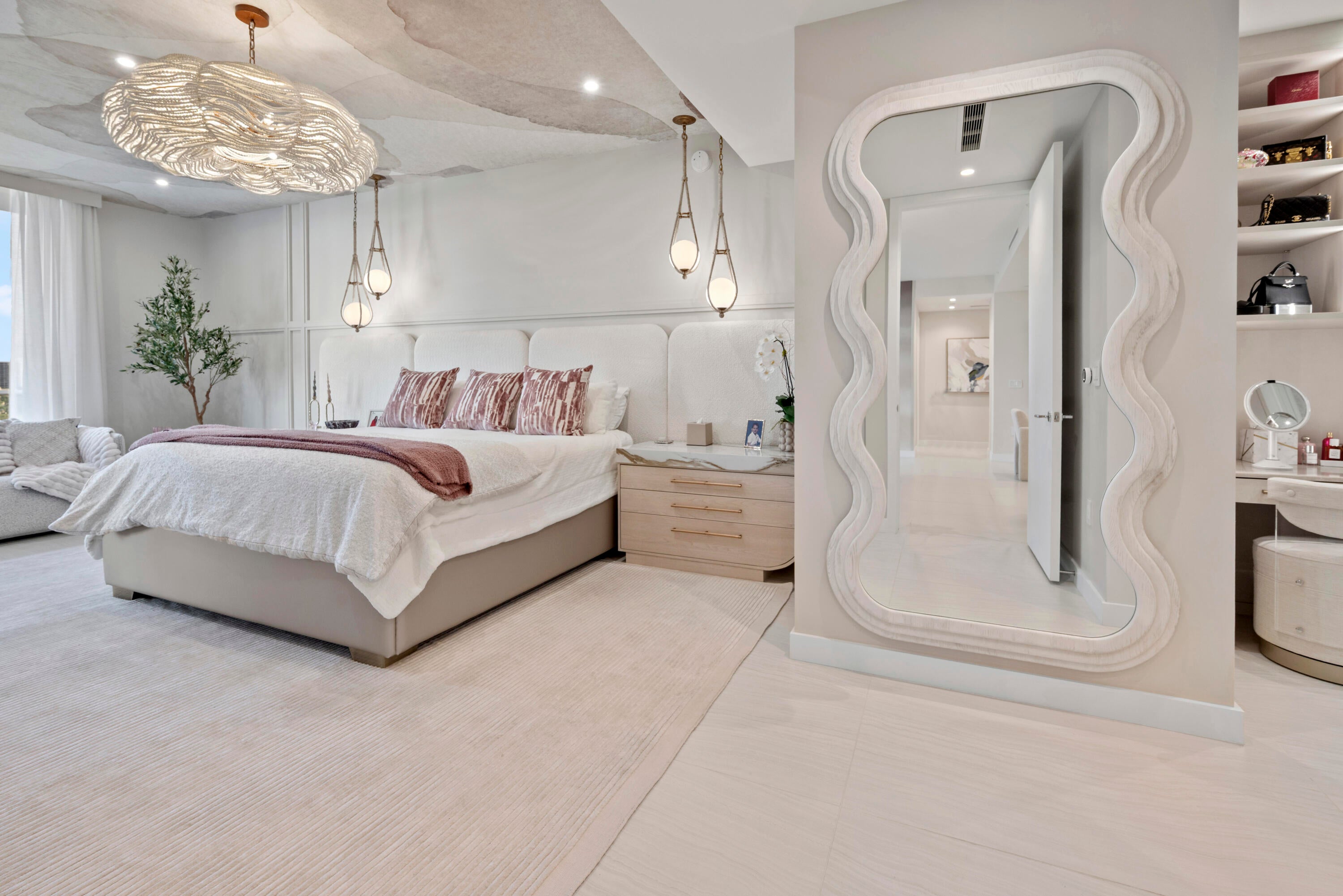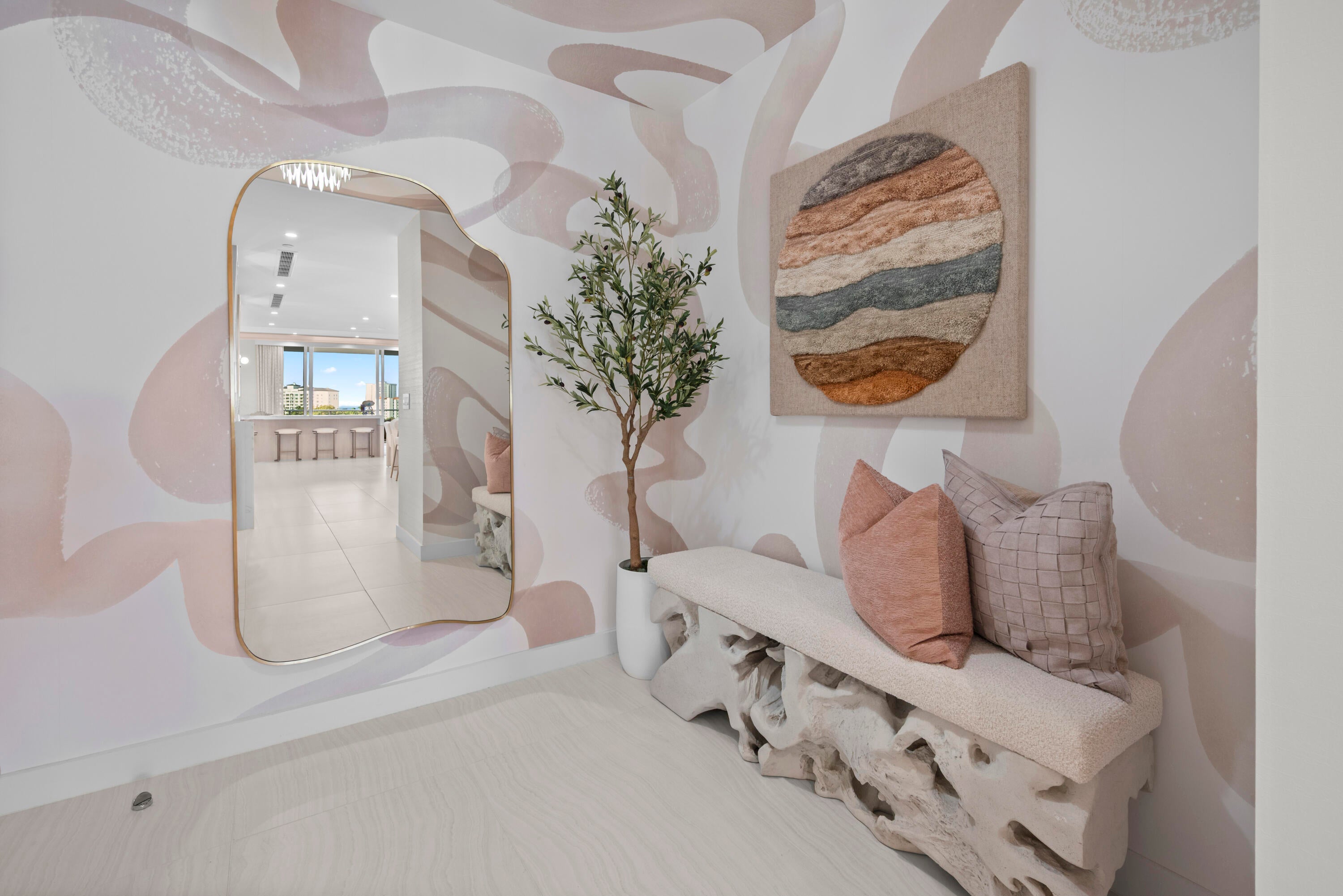 Introducing Residence 603 at Alina's premier new 220 Tower where the standard for sophistication is unmistakable. From the moment the elevator opens directly into your own private vestibule, the residence immediately sets itself apart. Exquisite, elegant and impeccable design is evident throughout, from the curated wallpaper and statement lighting to the bespoke built-ins, furnishings, window treatments and custom designed closets. This thoughtfully designed home in the sky offers two bedrooms, plus a den and three full bathrooms. The Scavolini chef's kitchen features a suite of Gaggenau appliances, quartz countertops and backsplash, an oversized waterfall edge island with an integrated custom dining table and a wine refrigerator seamlessly built into the island. A hidden pantry andlaundry room further enhance both form and function. Adjacent to the kitchen is a custom built bar with quartzite countertops, recessed lighting, and oak shelving perfect for display, entertaining, and additional storage. The chic and inviting living room is defined by a custom counter accommodating seating for four, complemented by a custom floating console with tailored millwork beneath the television and statement millwork detailing on the ceiling. Floor to ceiling sliding glass doors flood the space with natural light and open to the balcony which offers gorgeous views of the Alina grounds and the Boca Raton Golf Course. The primary suite is a spacious, calming oasis featuring a comfortable seating area and custom designed dressing area with boutique like shelving and displays. A spa like bathroom with dual vanities, a soaking tub and glass enclosed shower making this the perfect private retreat. A gracious guest suite with a private ensuite bath ensures comfort and privacy for visitors, while the versatile den/media room and an additional fully custom bathroom create an ideal setting for hosting, entertaining, or extended stays. Rounding out this residence is a spacious covered balcony, ideal for relaxing while overlooking the beautifully designed Alina grouds and The Boca Raton Golf Course. This unit comes with an assigned parking spot and one storage unit.