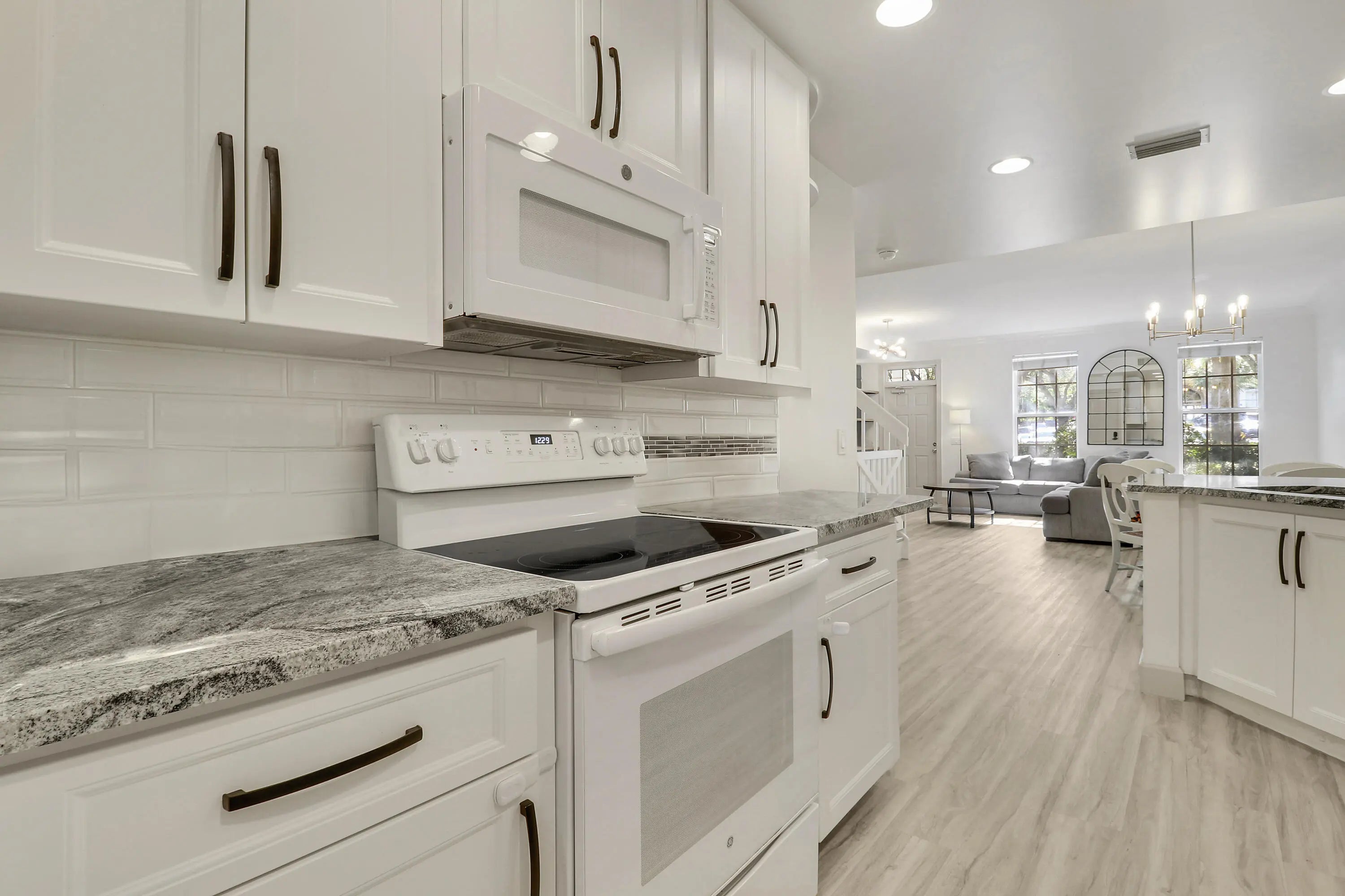 Welcome home to this beautifully updated townhouse where warmth, comfort, and walkable living come together in the heart of Abacoa Town Center. This inviting 3-bedroom, 2.5-bath residence feels instantly welcoming, blending thoughtful upgrades with a location that truly shines.Step inside to discover stylish vinyl wood-look flooring (2025) & impact windows (2021), creating a light-filled space that's as durable as it is charming. The kitchen has been tastefully renovated with granite countertops and a GE appliance package, perfect for everyday living and casual entertaining. Crown molding flows throughout the home, adding a timeless, finished touch.The living room is a cozy retreat, anchored by a custom wall unit with a fireplace and live-edge mantle, added in 2025.