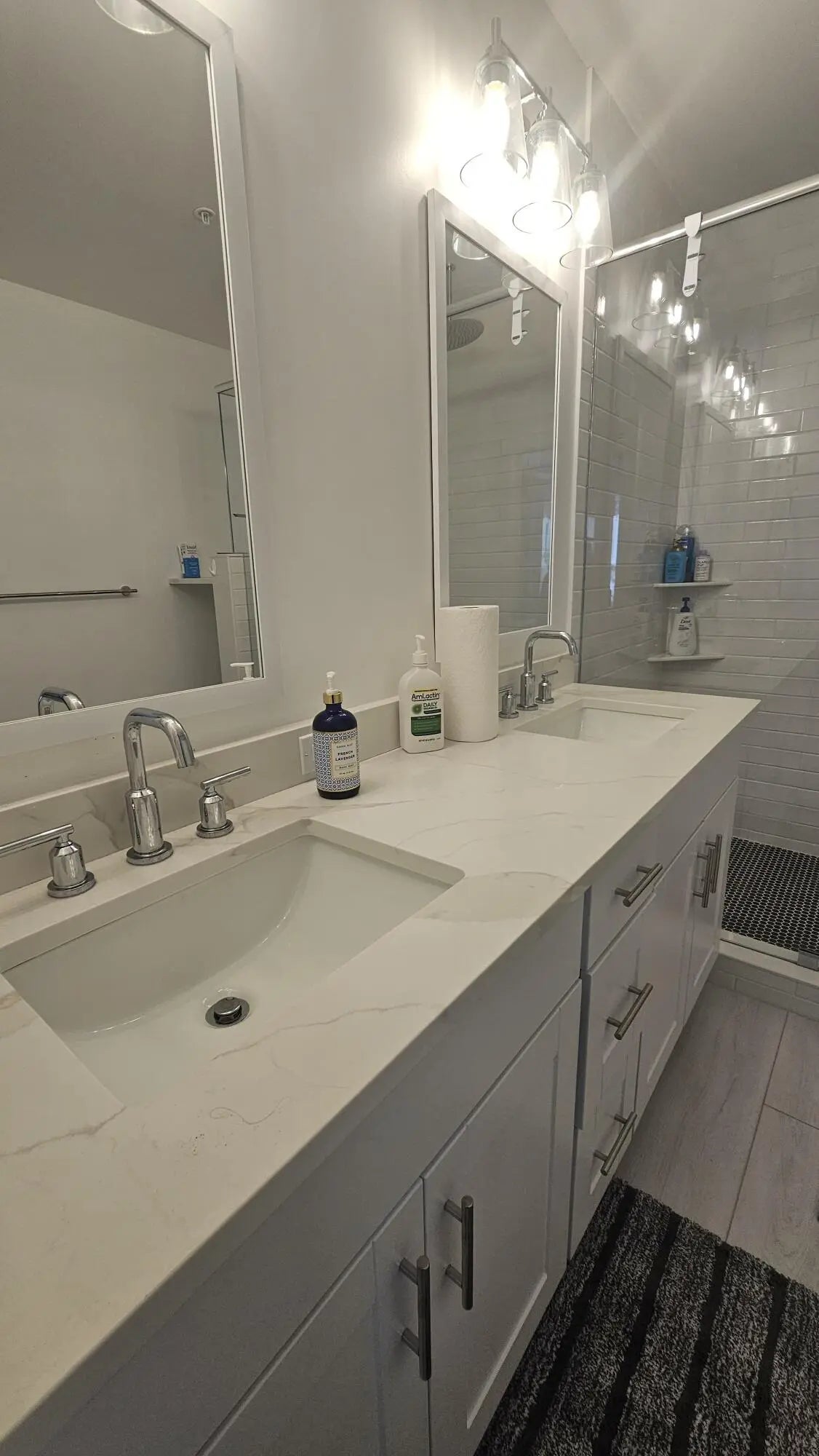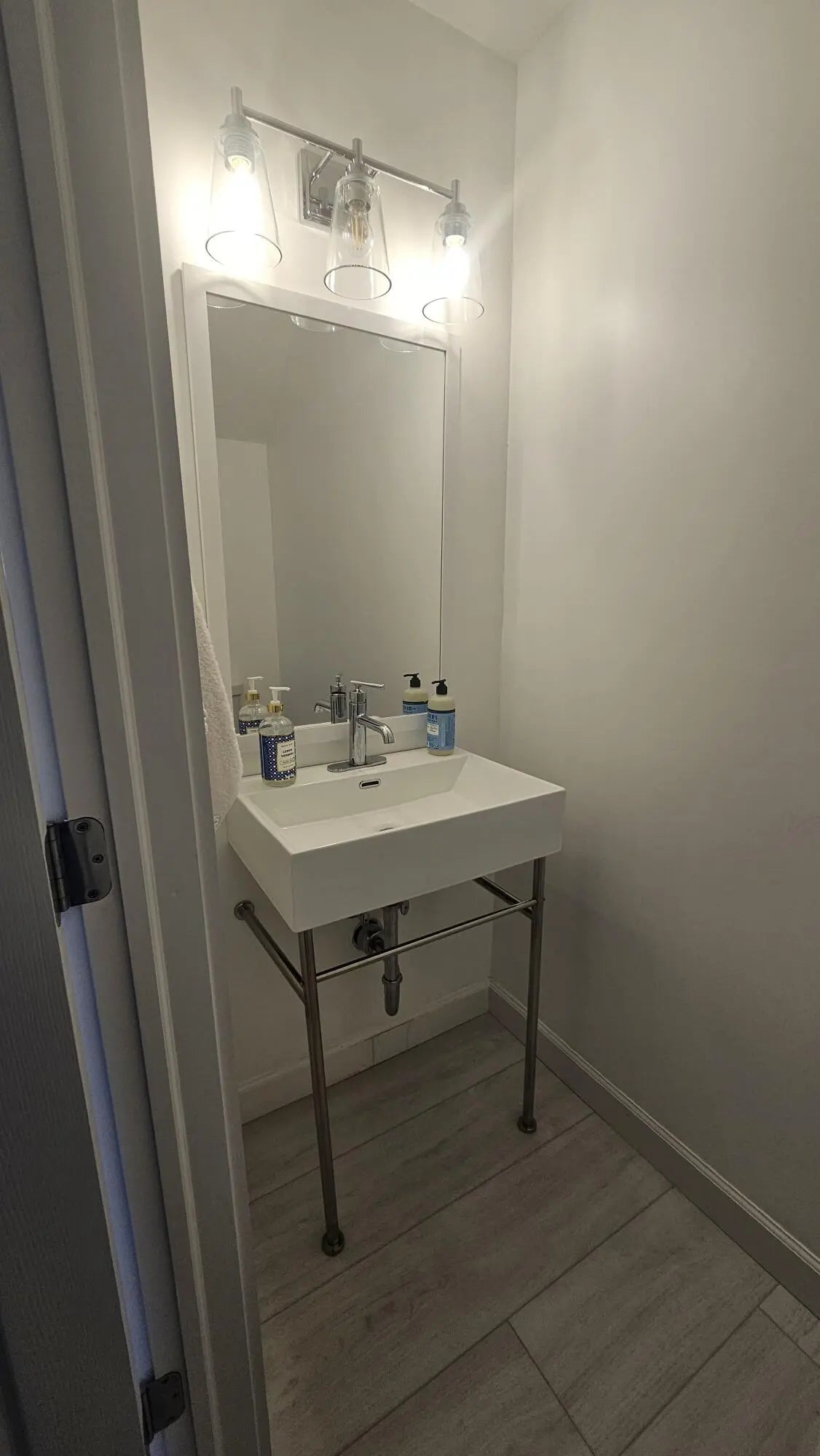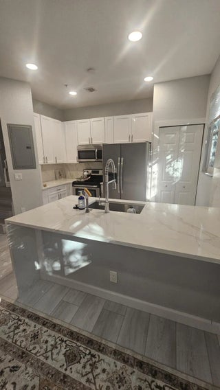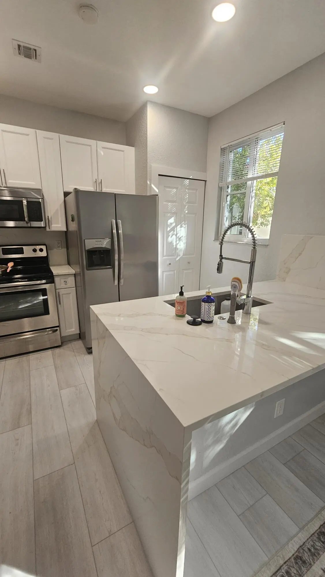 FURNISHED, Fully renovated from top to bottom! Spacious 3 bedroom and 2.5 bath.Kitchen with marbled countertops -impact windows, all new bathrooms, flooring & lighting. The bathrooms have all been tastefully updated, with the master bathroom standing out as a true retreat, white quartz finishes and stunning glass tile details that add a touch of sophistication. Brand new Washer & Dryer and A/C