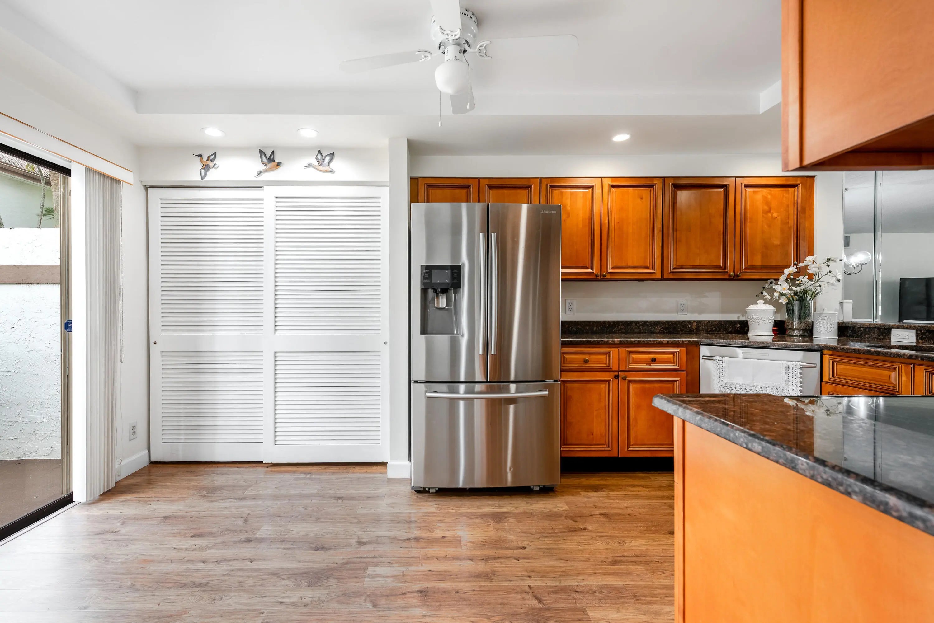 Exceptional opportunity in Gleneagles! This beautifully maintained FIRST-floor 2-bedroom, 2-bath residence offers tranquil golf course views from a screened patio, perfect for enjoying fresh air, morning coffee, and peaceful sunsets. The kitchen features wood cabinetry, stainless appliances, and laminate flooring updated in 2018, combining comfort and functionality. Major improvements include a newer A/C (2018), water heater (2025), and hurricane shutters in all windows for added peace of mind. The bathrooms are original and in good condition, and the home is thoughtfully priced to give buyers the opportunity to update and customize to their own taste. Bright, spacious, and full of potential--this is Florida country club living at its best. MANDATORY MEMBERSHIP COMMUNITY