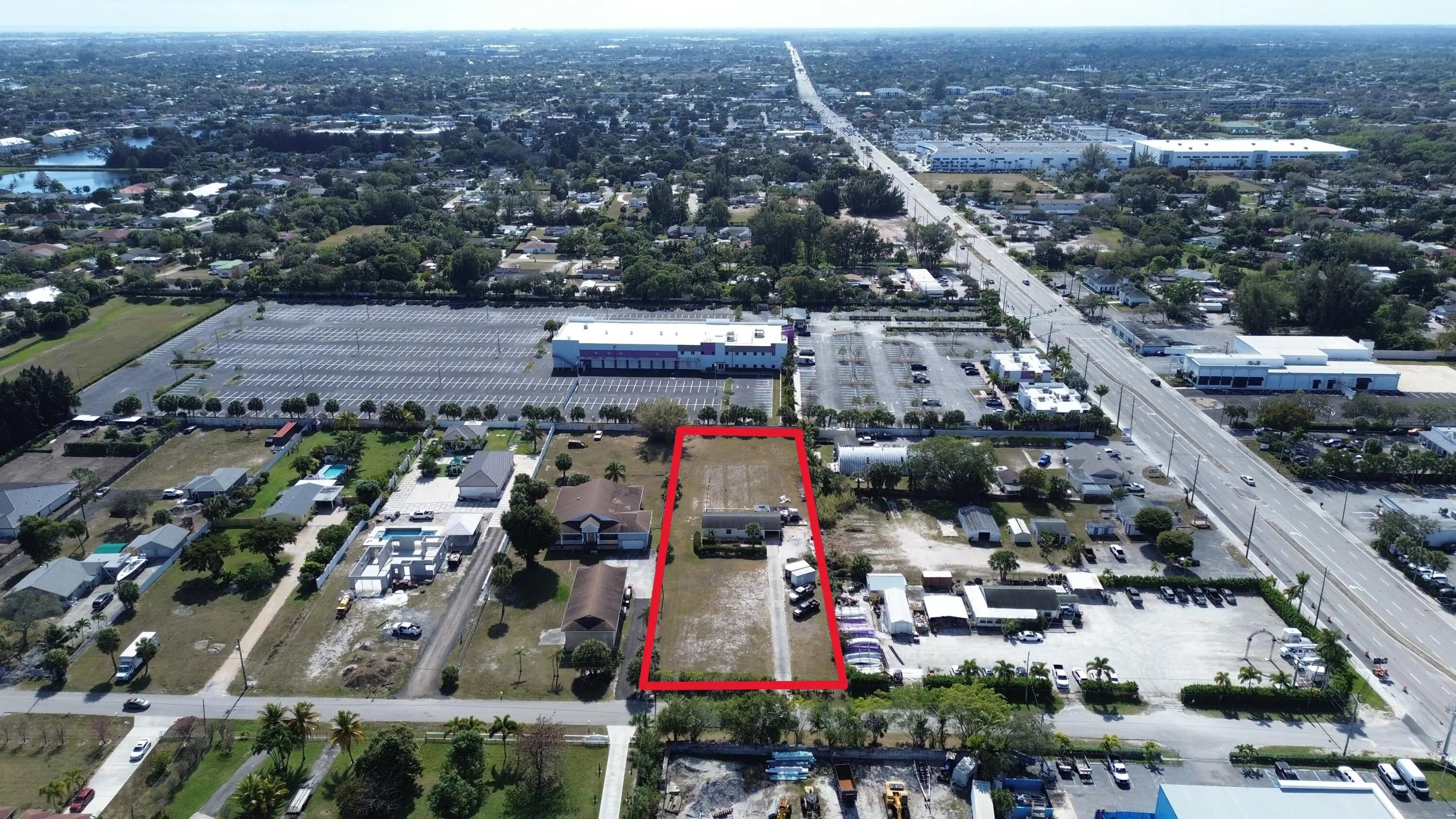 Over one acre of land in the center of West Palm Beach in Unincorporated Palm Beach County. The Urban Infill (UI) zoning allows flexibility for mixed use projects. Multifamily and Commercial projects are allowed. Rented 3 bedroom 2 baths single family home on site. Enjoy rental income while getting entitlements and approvals. Buyer to do own due diligence.