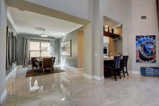 Don't miss the opportunity to rent in a resort-style, gated community of Seven Bridges! This home features waterfront views with 5 bedrooms, 5 bathrooms, with an oversized primary suite and custom closets. The fully equipped chef's kitchen is complete with double ovens, a gas range, and ample seating around the island. With hurricane impact windows and a whole house generator, as well as smart locks, smart thermostats, alarm system, and security cameras for your safety. The heated saltwater pool, outdoor seating, and outdoor kitchen area which overlooks the lake is perfect for entertaining. 7 Bridges offers full-service restaurant and pool bar, state-of-the-art clubhouse, tennis, fitness center and more! Home is unfurnished and available for an annual term.