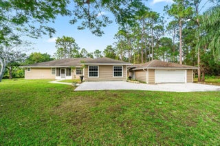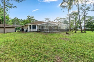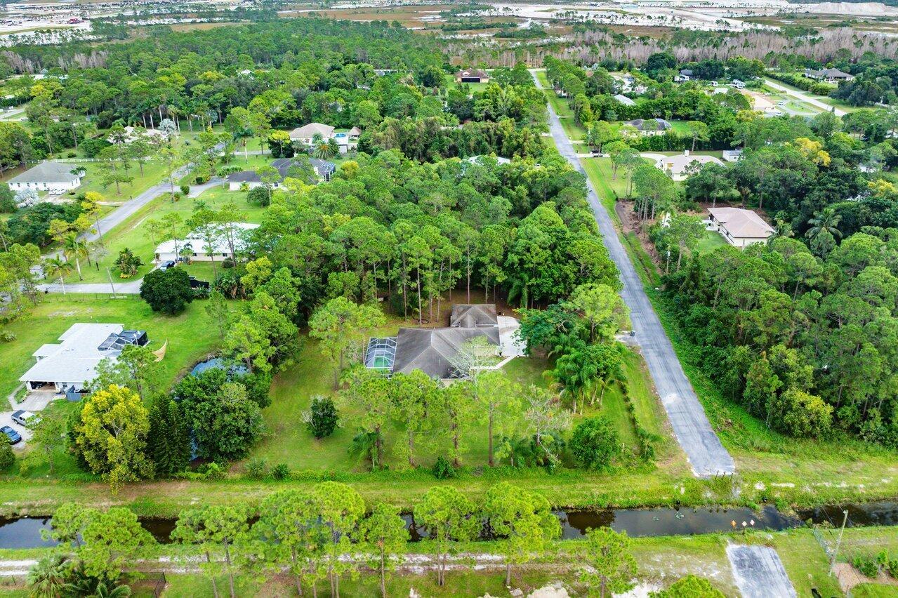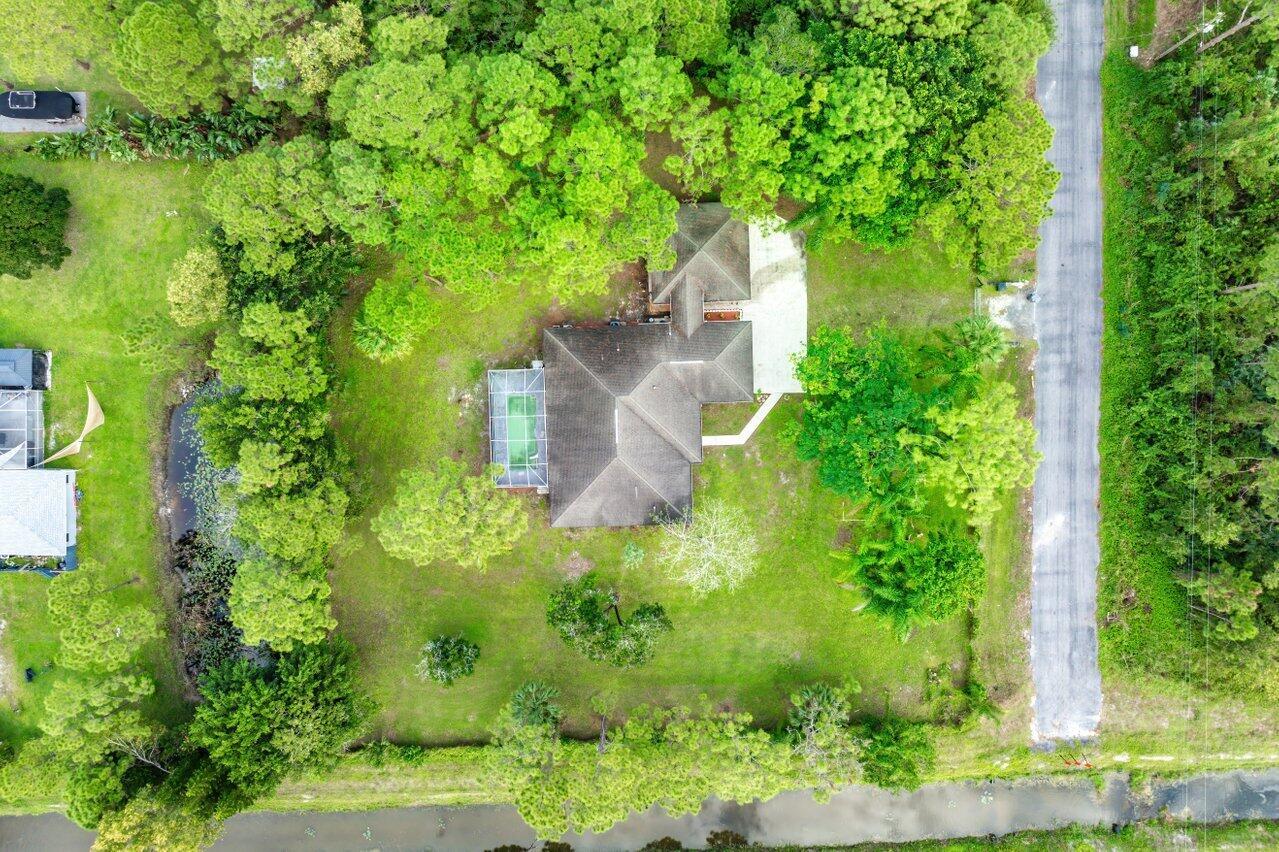 Beautiful single story home in The Acreage. This spacious 3 bedroom/2 bath home can easily be 4 bedrooms. Serene yard with screened in pool. Many recent updates throughout. Set on a fenced 1.51-acre lot at the end of a private paved road and a canal for added privacy and minimum road traffic.Detached garage with covered walkway. Room for an RV or boat, NO HOA! Great location!!