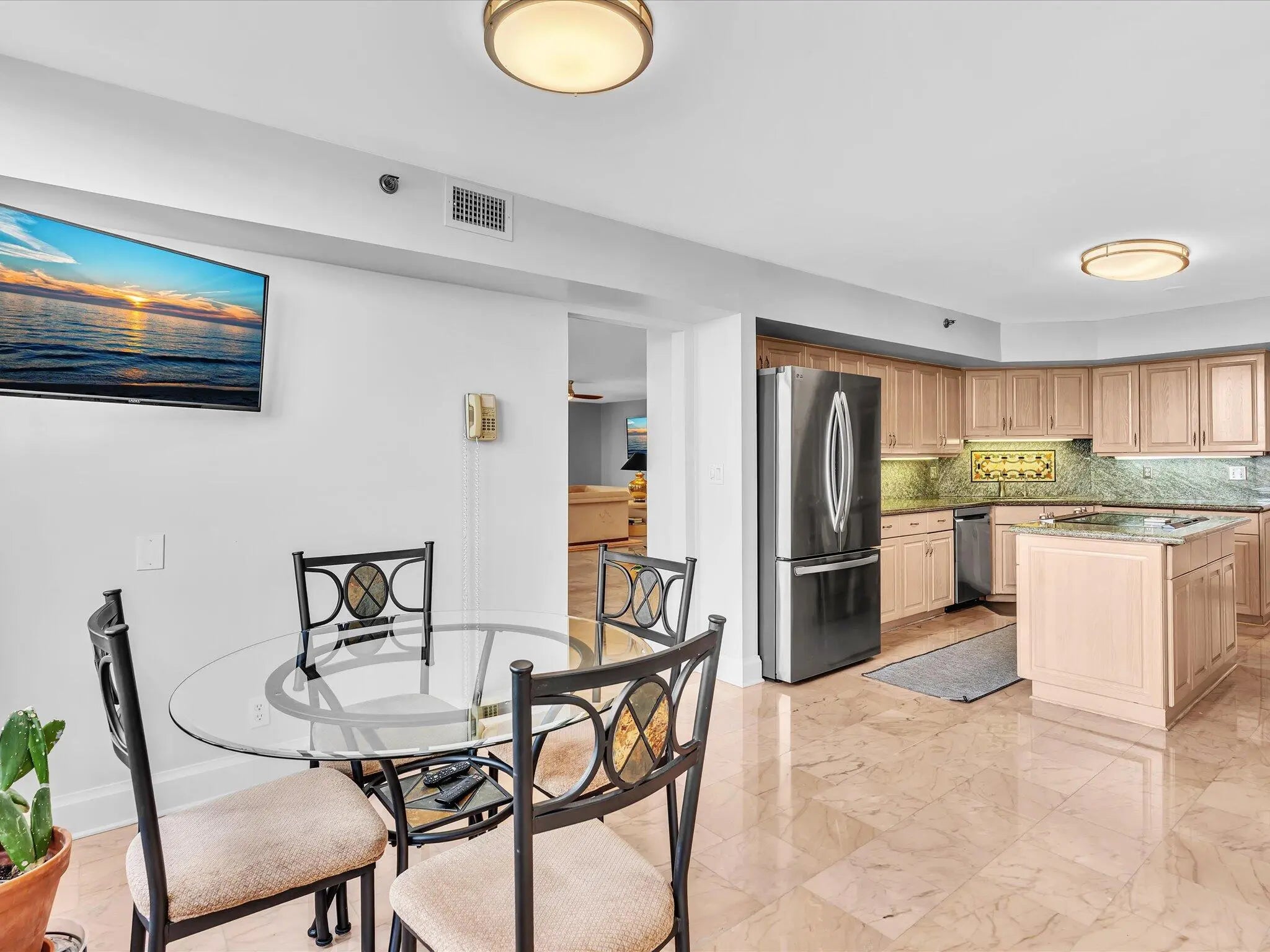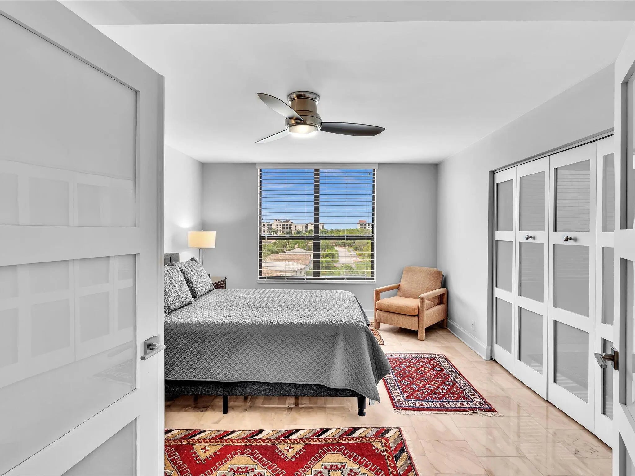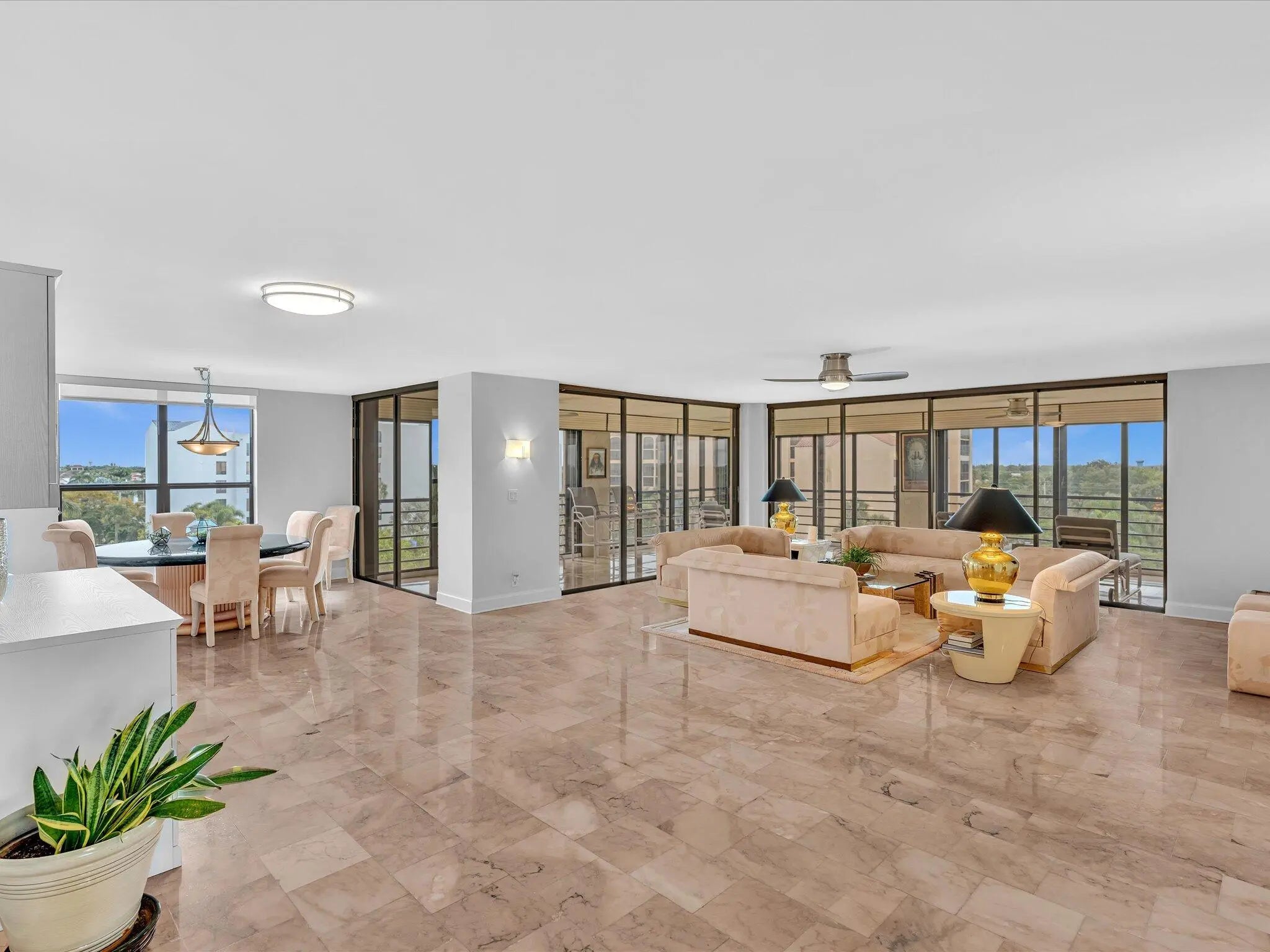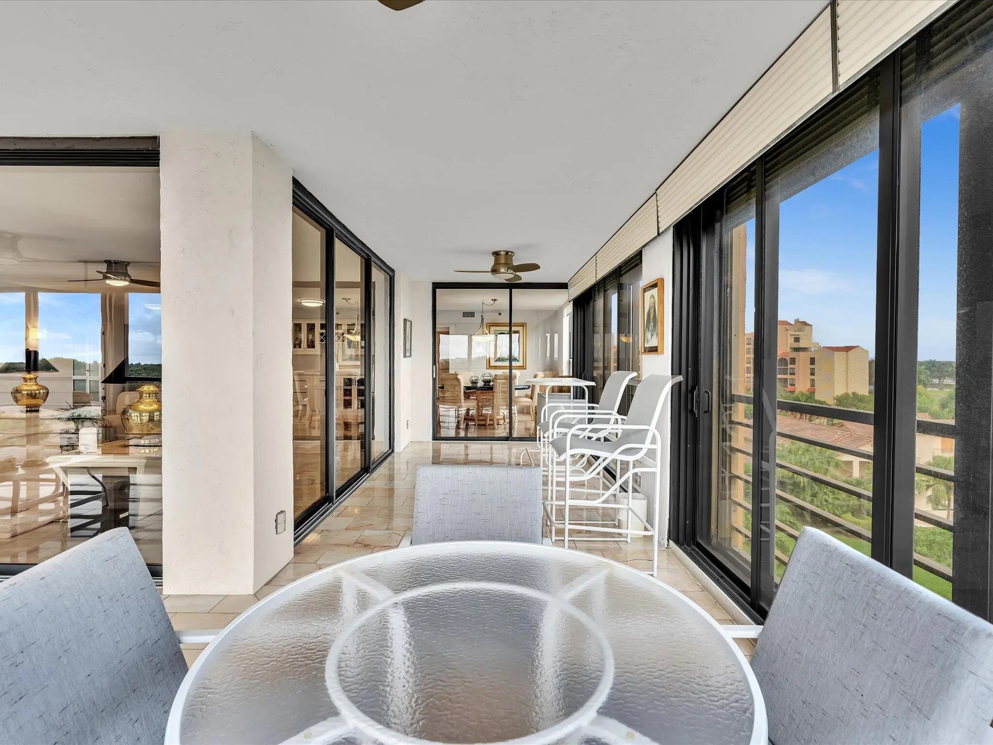 Panoramic views of Boca Raton and the sunsets from your bright 6th floor 3 BR/2.5 condo at Promenade Boca Pointe! Impact glass all around including sliders on huge wrap around enclosed terrace, great for entertaining! Gated community, secure lobby entrance, private elevator to two unis on each floor. Foyer entry, large granite kitchen, newer appliances, water heater. Breakfast room and additional office area off kitchen. Updated modern interior doors, ceiling fans, lighting, window treatments, built ins, vanities. Smooth ceilings inside. Sold turnkey furnished (artwork excluded), move right in to enjoy all Boca Pointe has to offer. Optional memberships available. Adjacent to Promenade pool, close to main club.Covered first parking spot next to entrance. Great Central Boca location!