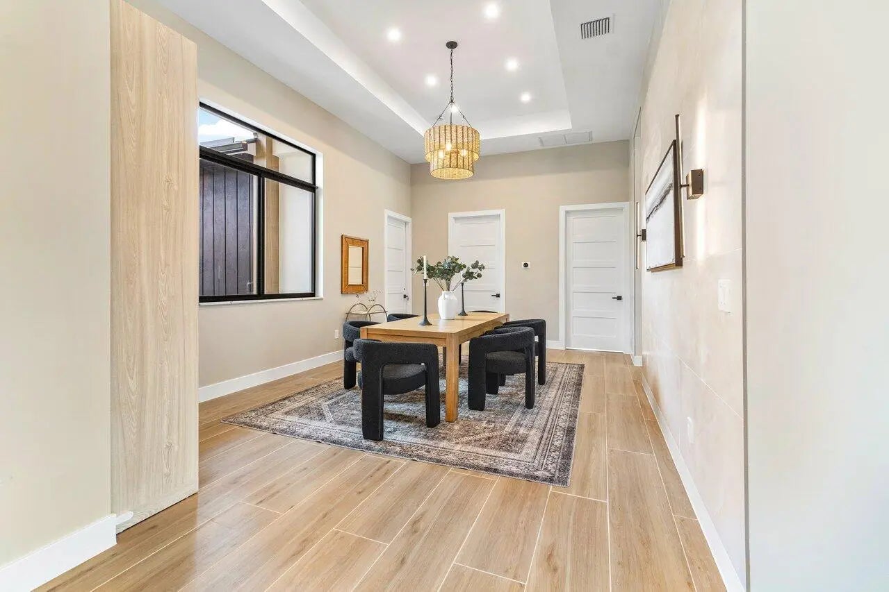 Exclusive custom estate set on nearly 1 acre (.99 acres), offering an exceptional blend of luxury, space, and privacy. This expansive residence features 4,200 sq. ft. under roof with 12-foot ceilings throughout, creating a grand and open living experience.The thoughtfully designed open-concept kitchen showcases custom cabinetry and flows seamlessly into the main living areas, all finished with Italian porcelain tile. The home offers 4 spacious bedrooms and 3 beautifully appointed bathrooms, along with custom closets designed for optimal organization and functionality. Additional highlights include a private 2-car garage and a seamless metal roof with a 50-year warranty, providing long-term durability and peace of mind.